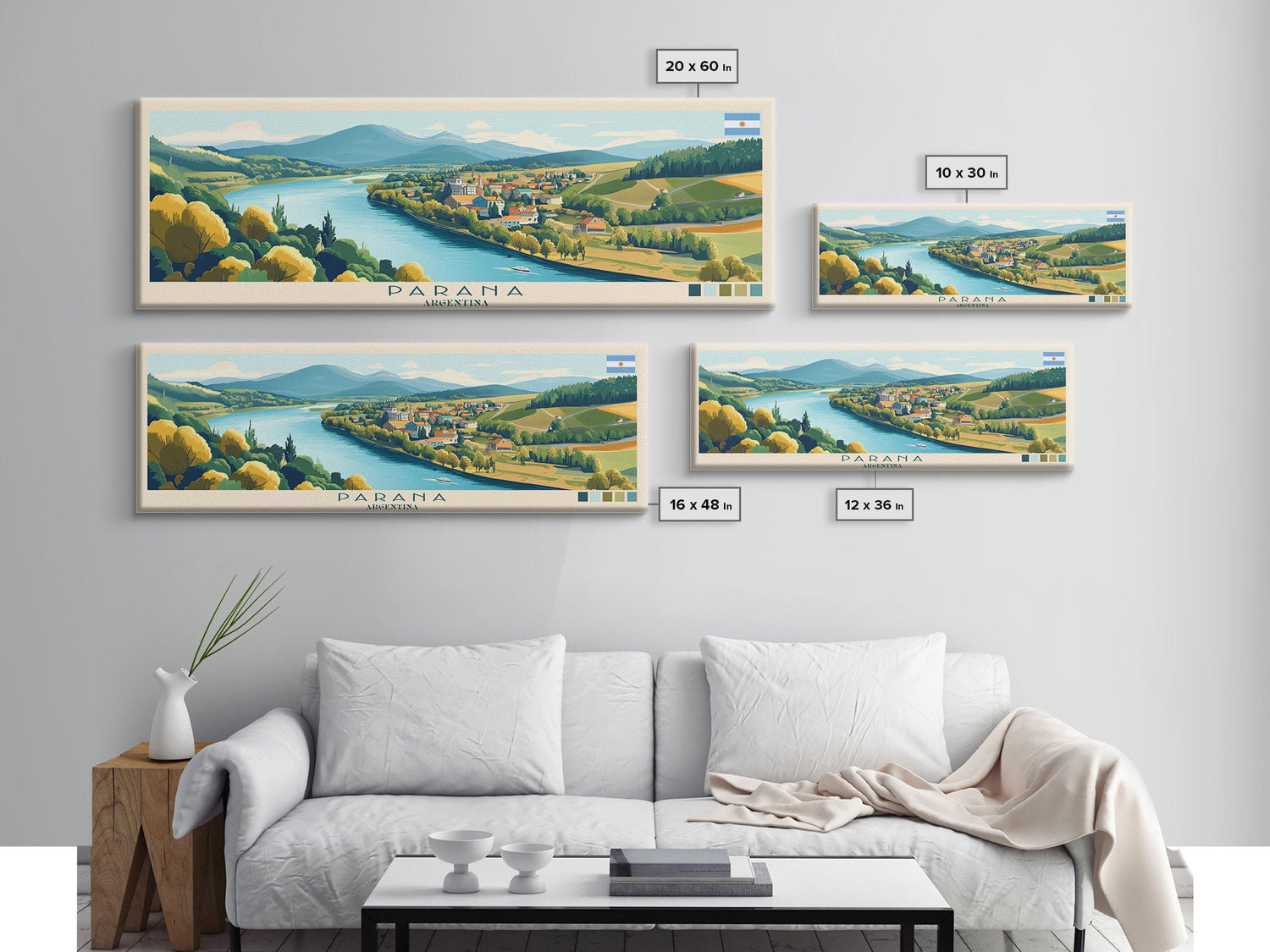 Parana, Argentina Travel Poster Panoramic Canvas Print, Parana, Argentina Painting, Argentina Art, Parana Travel Art, Guest Room Painting