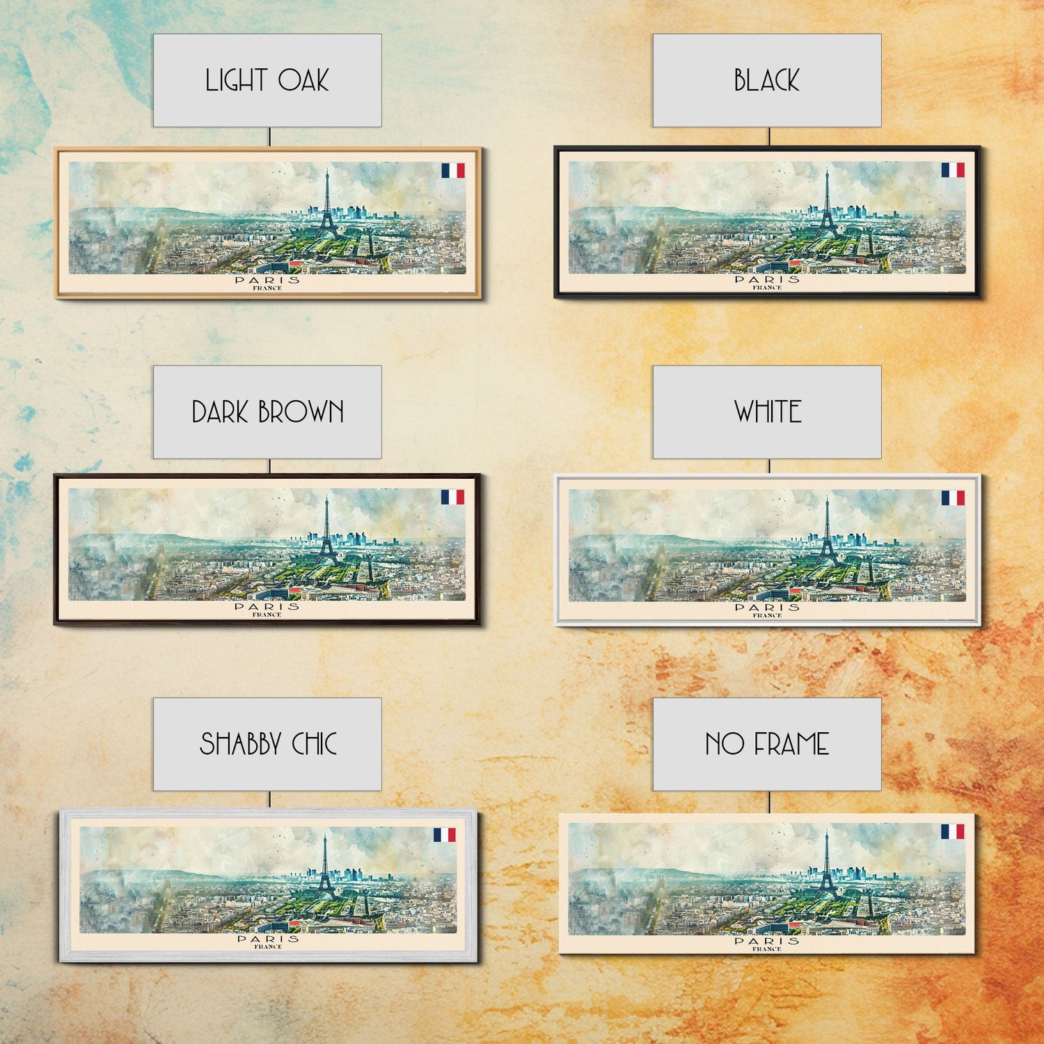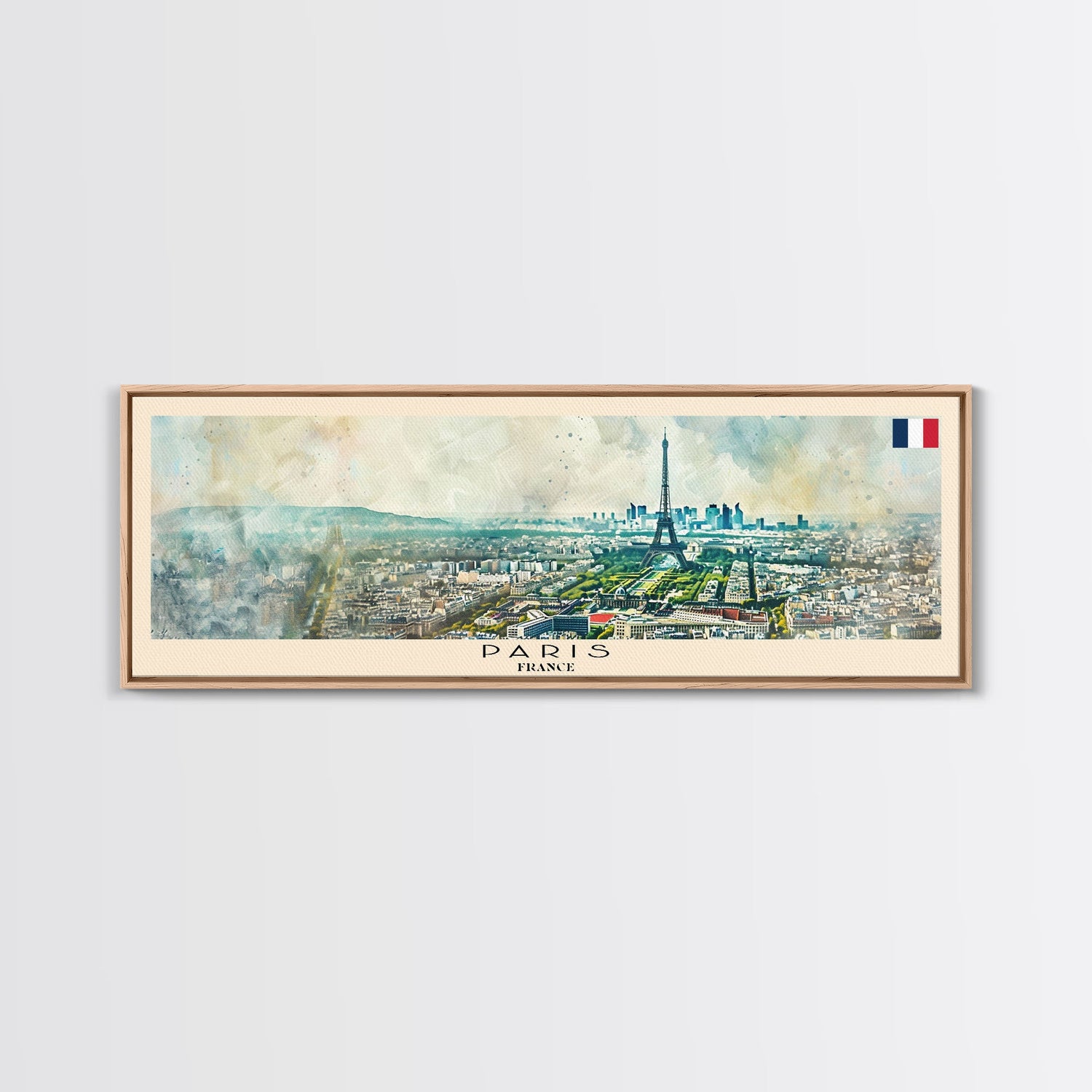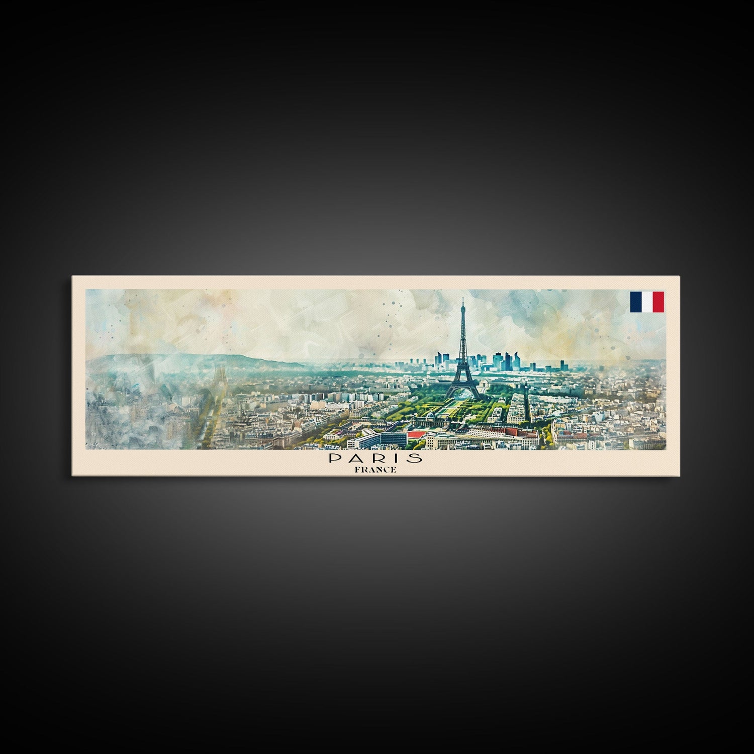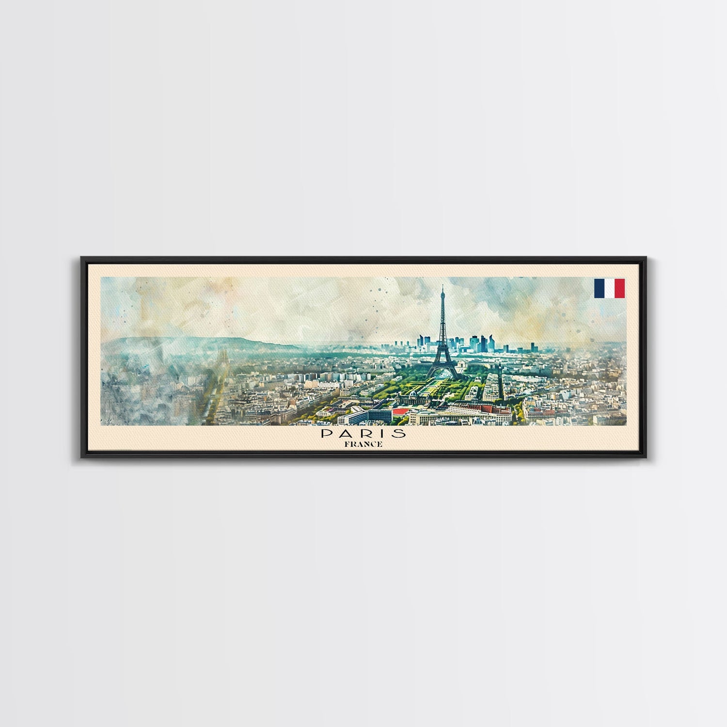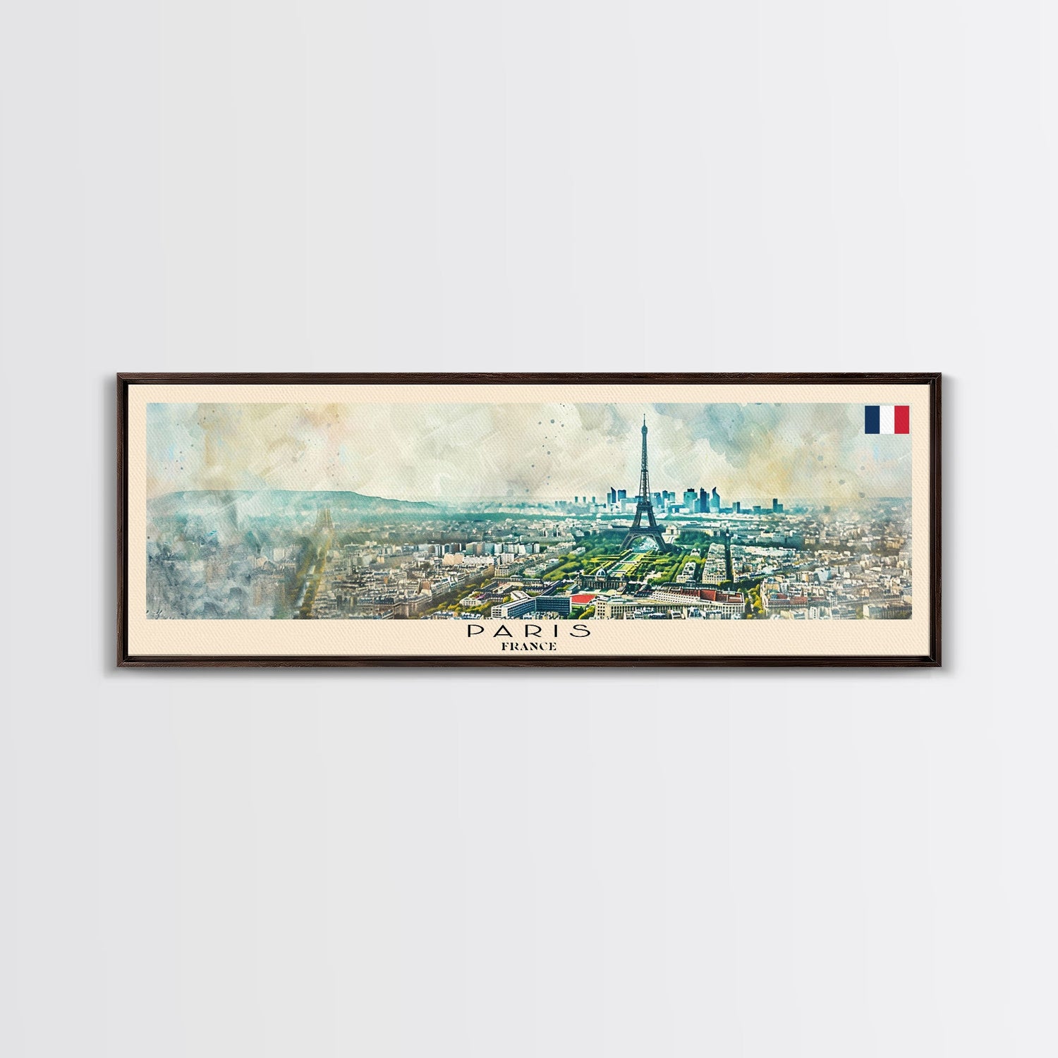 Paris France Panoramic Travel Poster, Framed Canvas Print or Metal Wall Art, Travel Art, Home Decor, Panoramic Painting, Midcentury Art