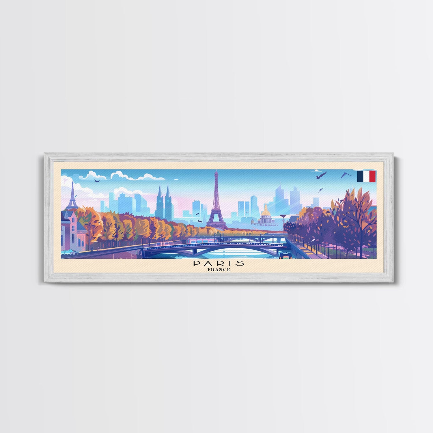 Paris France Panoramic Travel Poster, Framed Canvas Print or Metal Wall Art, Travel Art, Home Decor, Panoramic Painting, Midcentury Art