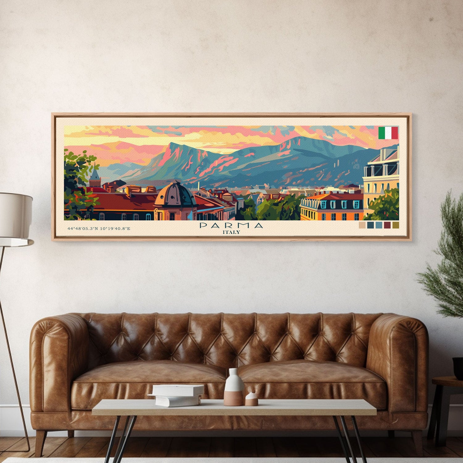 Parma Italy Wall Art, Panoramic Travel Poster, Panoramic Framed Canvas Print, City Wall Art, Wall Hanging Home Decor, Travel Art