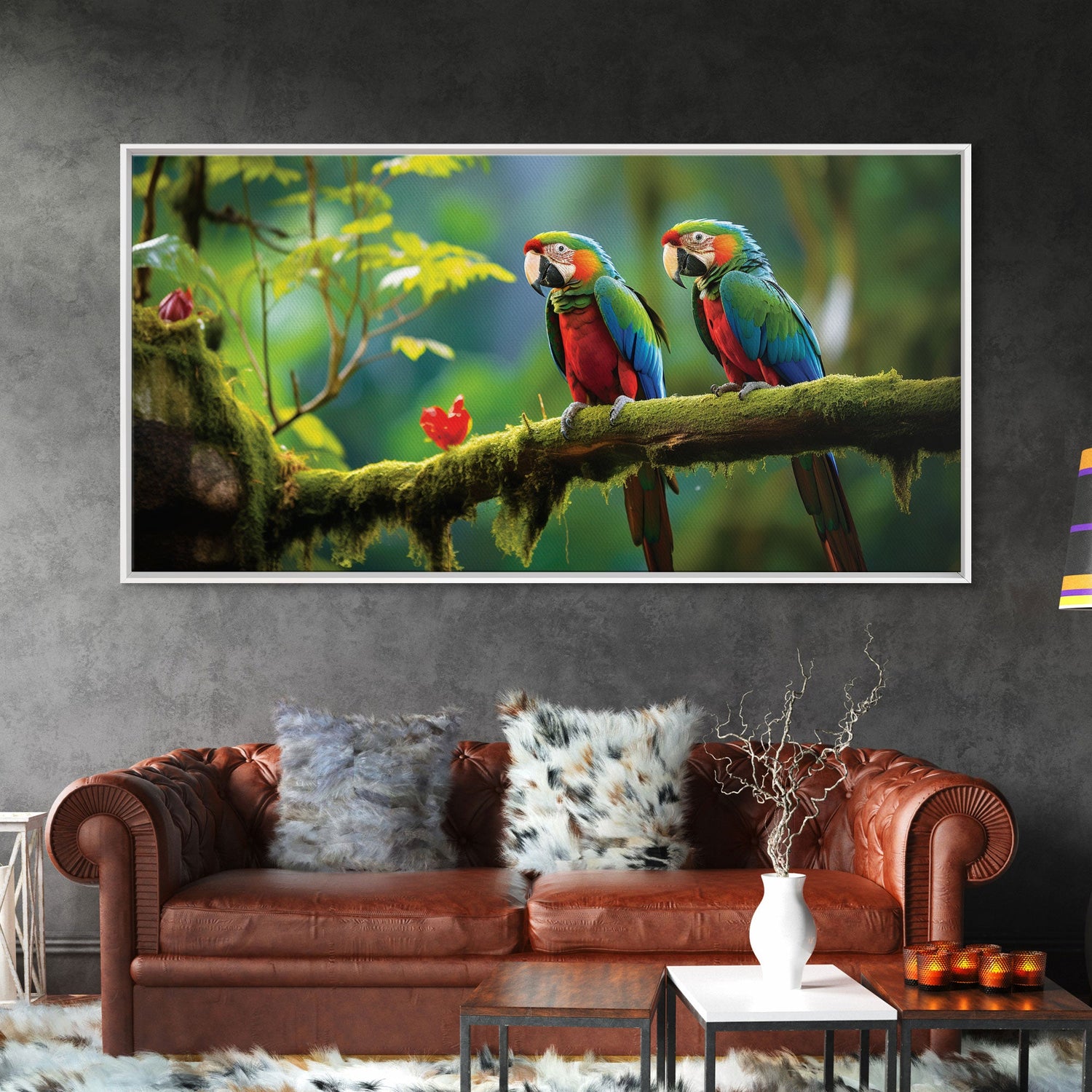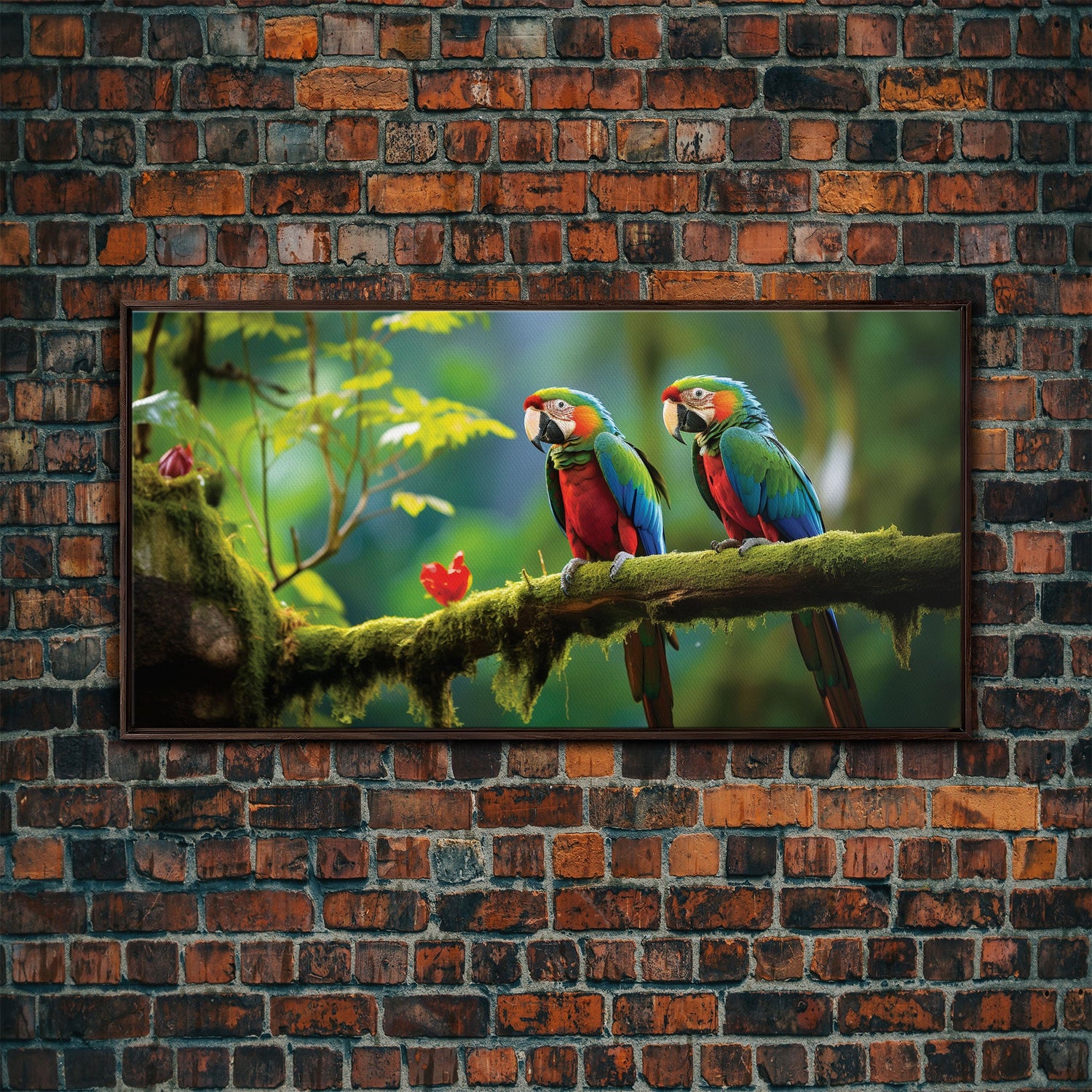 Parrot Painting, Tropical Wall Art, Animal Wall Art, Bird Art Print, Panoramic Art, Wall Art, Canvas Art, Landscape Art, Apartment Wall Art