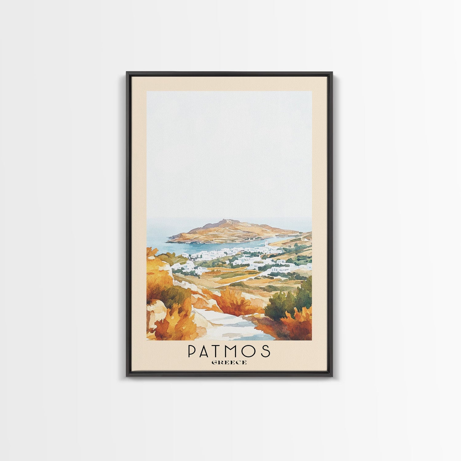 Patmos, Greece Watercolor Beach Print, Vacation Gift, Greece Wall Art, Framed Canvas Print, Framed Beach Painting
