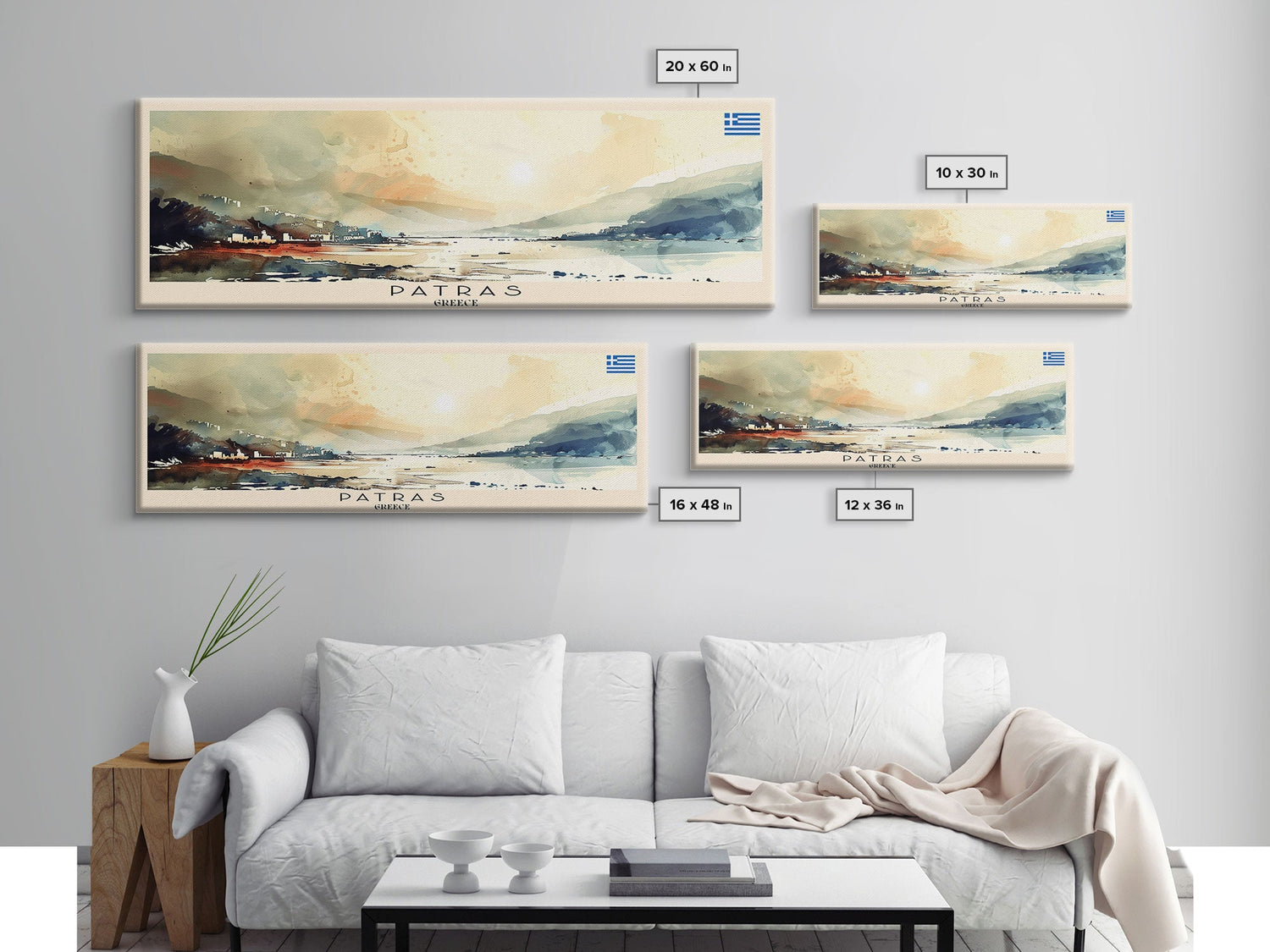 Patras Greece Travel Art, City Art, Framed Canvas Print or Metal Wall Art, Europe Travel Poster, Panoramic Wall Art, Extra Wide Wall Art - 10x30 Inches / No Frame - Stretched Canvas Only is backordered and will ship as soon as it is back in stock.