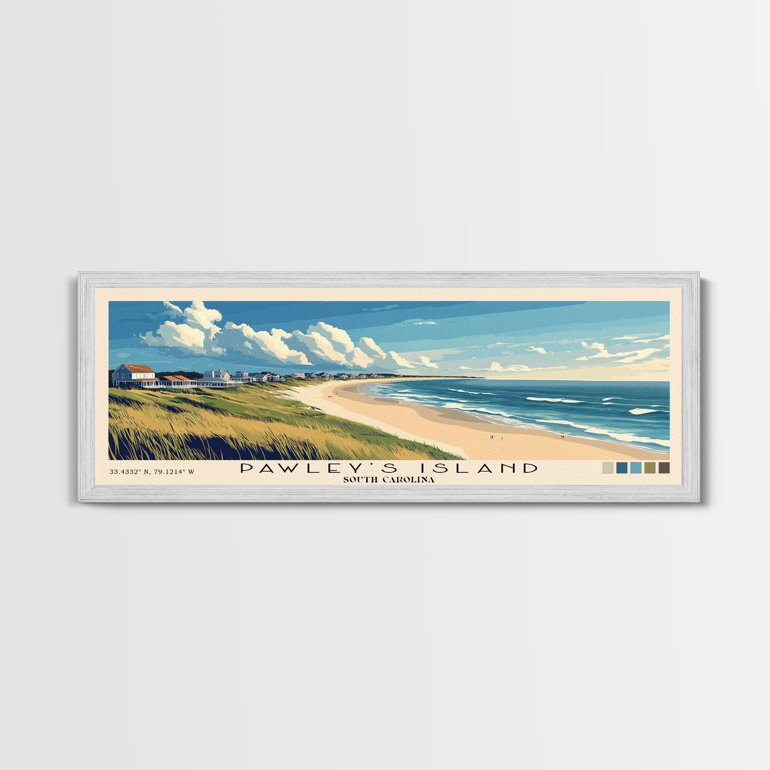 Pawley's Island, South Carolina Panoramic Beach Print, Vacation Gift, South Carolina Wall Art, Framed Canvas Print, Framed Beach Painting