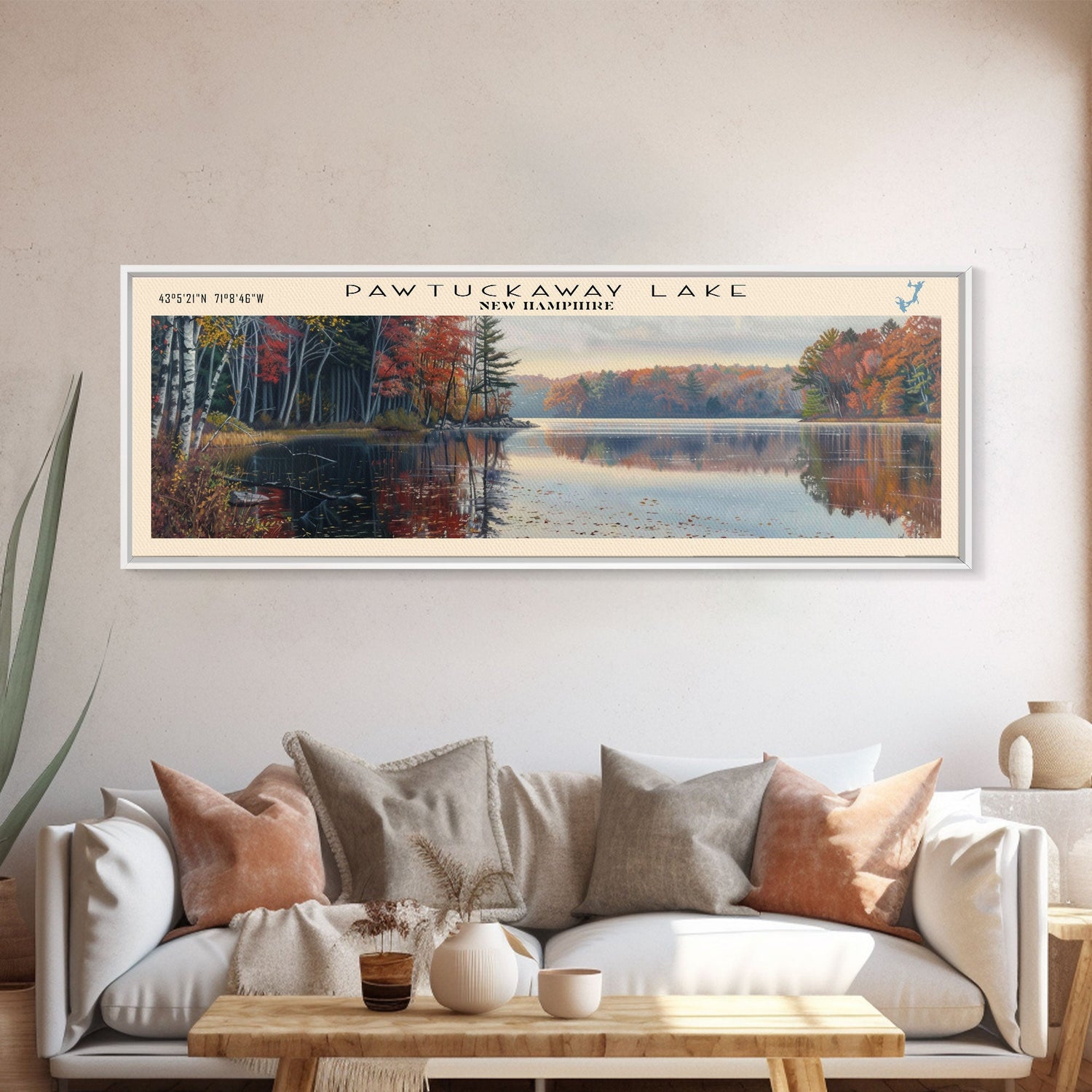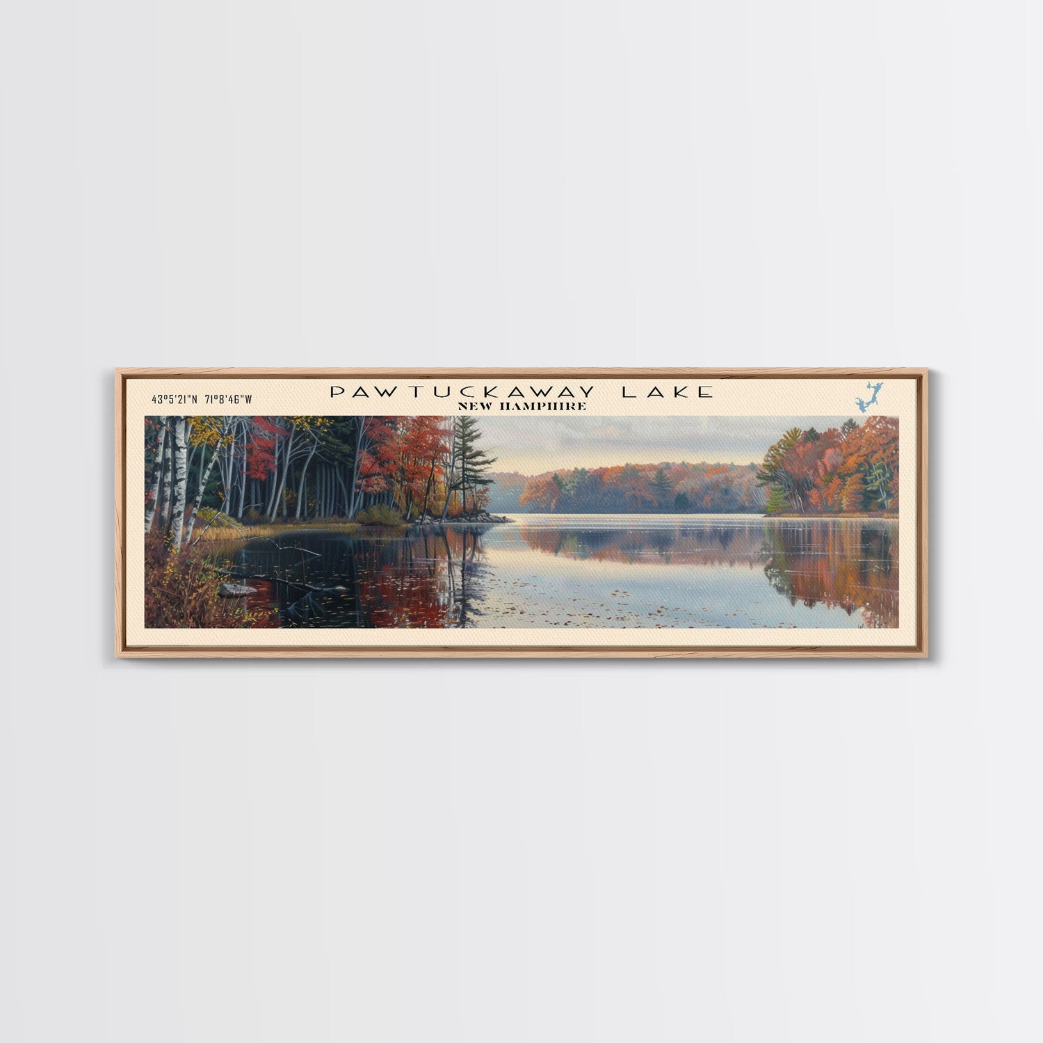 Pawtuckaway Lake New Hampshire Framed Canvas Print, Lake House Decor, Panoramic Wall Art, Travel Poster, Beautiful Landscape Painting, Living Room Decor