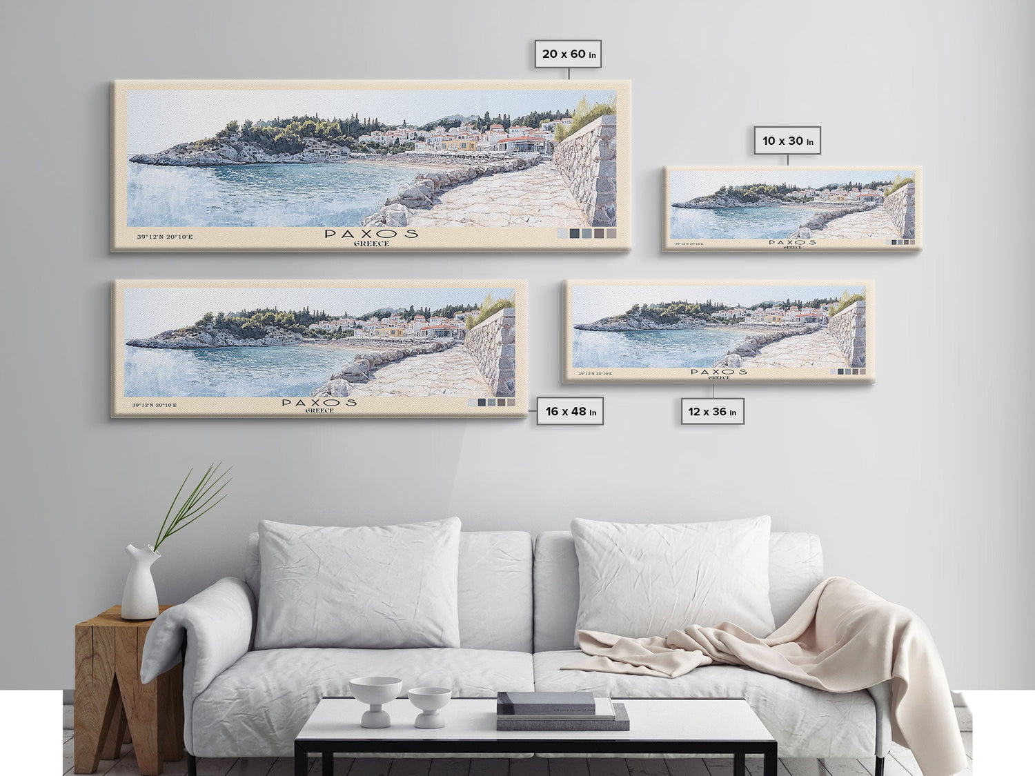 Paxos, Greece Watercolor Beach Print, Vacation Gift, Greece Wall Art, Beach Painting, Beach Decor, Beach Painting - 10x30 Inches / No Frame - Stretched Canvas Only is backordered and will ship as soon as it is back in stock.