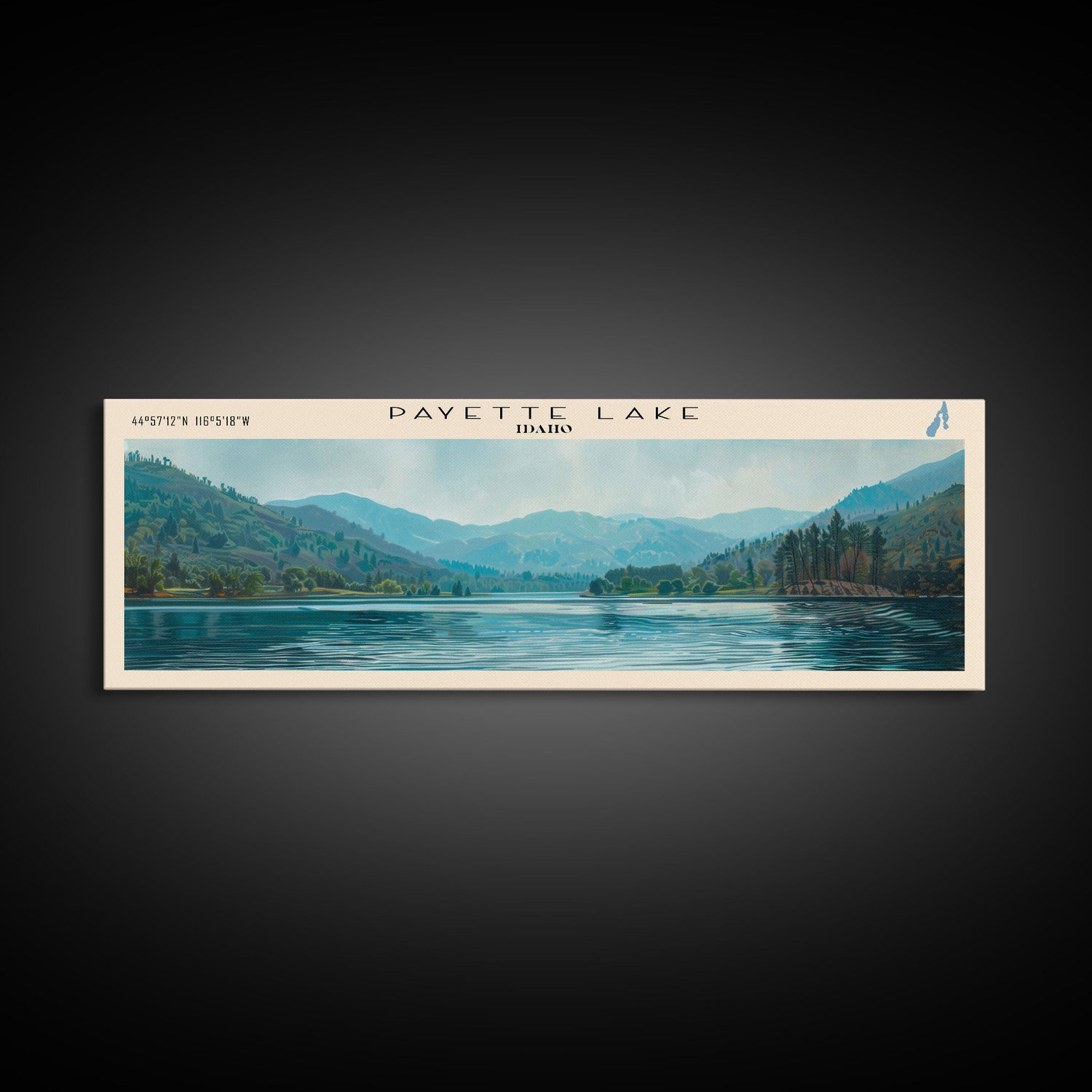 Payette Lake Idaho Framed Canvas Print, Lake House Decor, Panoramic Travel Poster, Landscape Painting, Modern Art - 10x30 Inches / No Frame - Stretched Canvas Only is backordered and will ship as soon as it is back in stock.