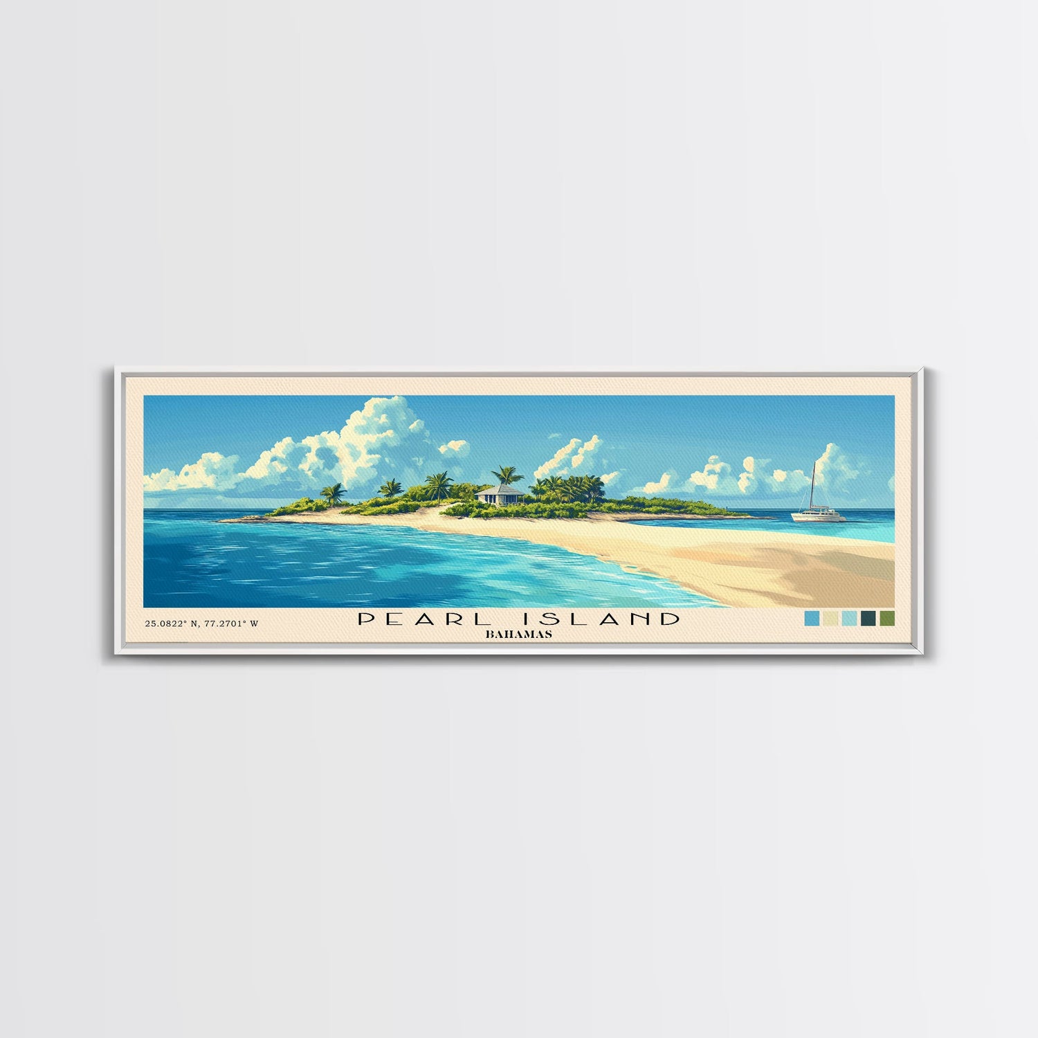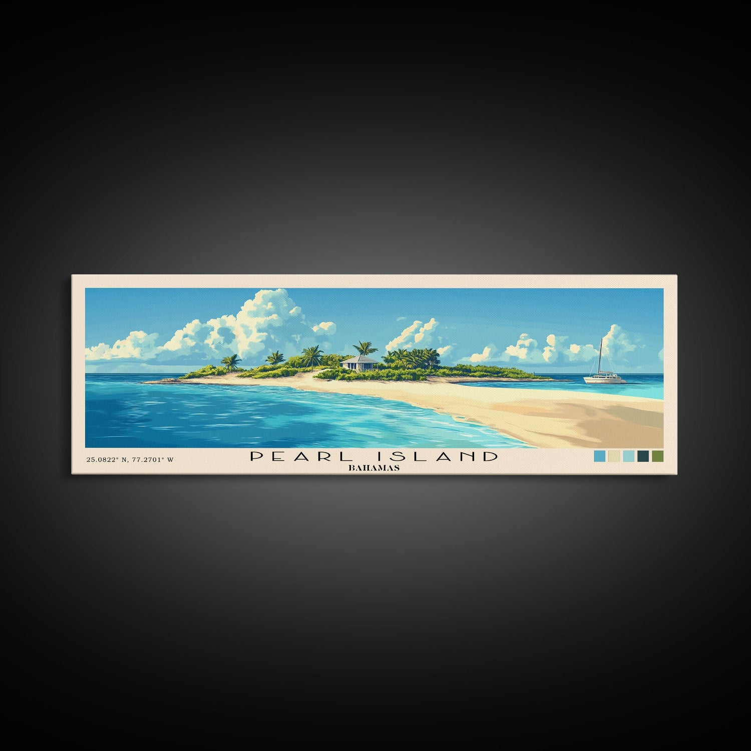 Pearl Island, Bahamas Panoramic Print, Vacation Gift, Bahamas Wall Art, Beach Painting, Beach Decor, Large Wall Art, Wood Frame Art