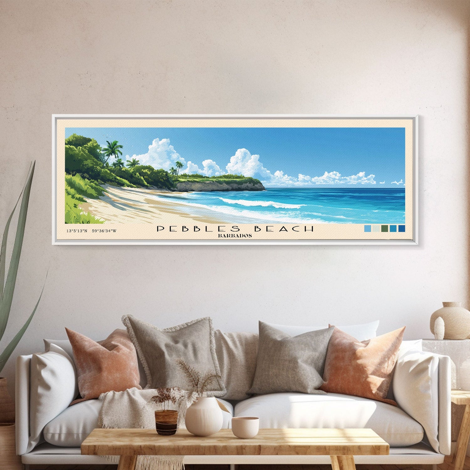Pebbles Beach, Barbados Panoramic Print, Vacation Gift, Barbados Wall Art, Vacation Wall Art, Vacatation Memories, Beach Decor, Beach Or Lakehouse Art - 10x30 Inches / No Frame - Stretched Canvas Only is backordered and will ship as soon as it is back in stock.