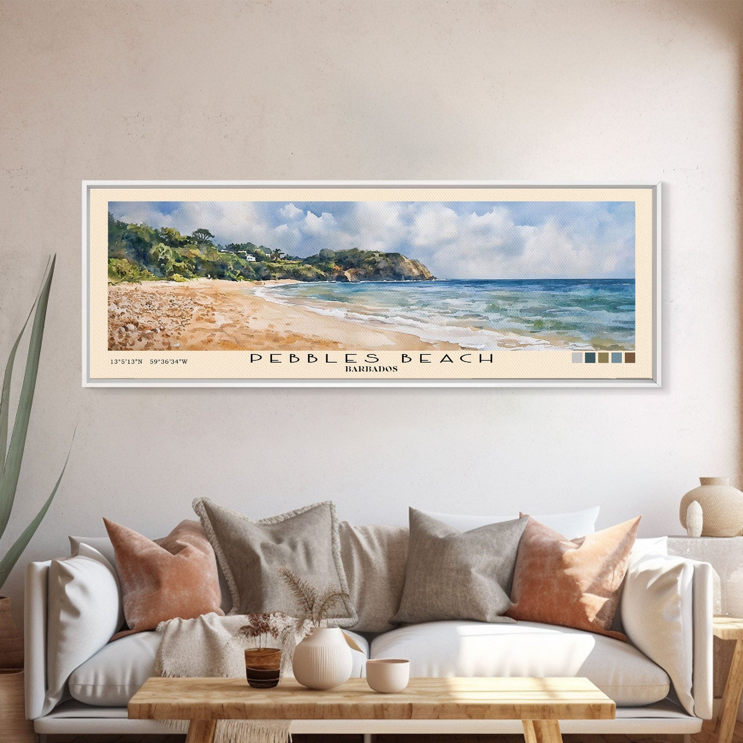 Pebbles Beach, Barbados Watercolor Beach Print, Vacation Gift, Barbados Wall Art, Beach Painting, Beach Decor, Beach Painting - 10x30 Inches / No Frame - Stretched Canvas Only is backordered and will ship as soon as it is back in stock.