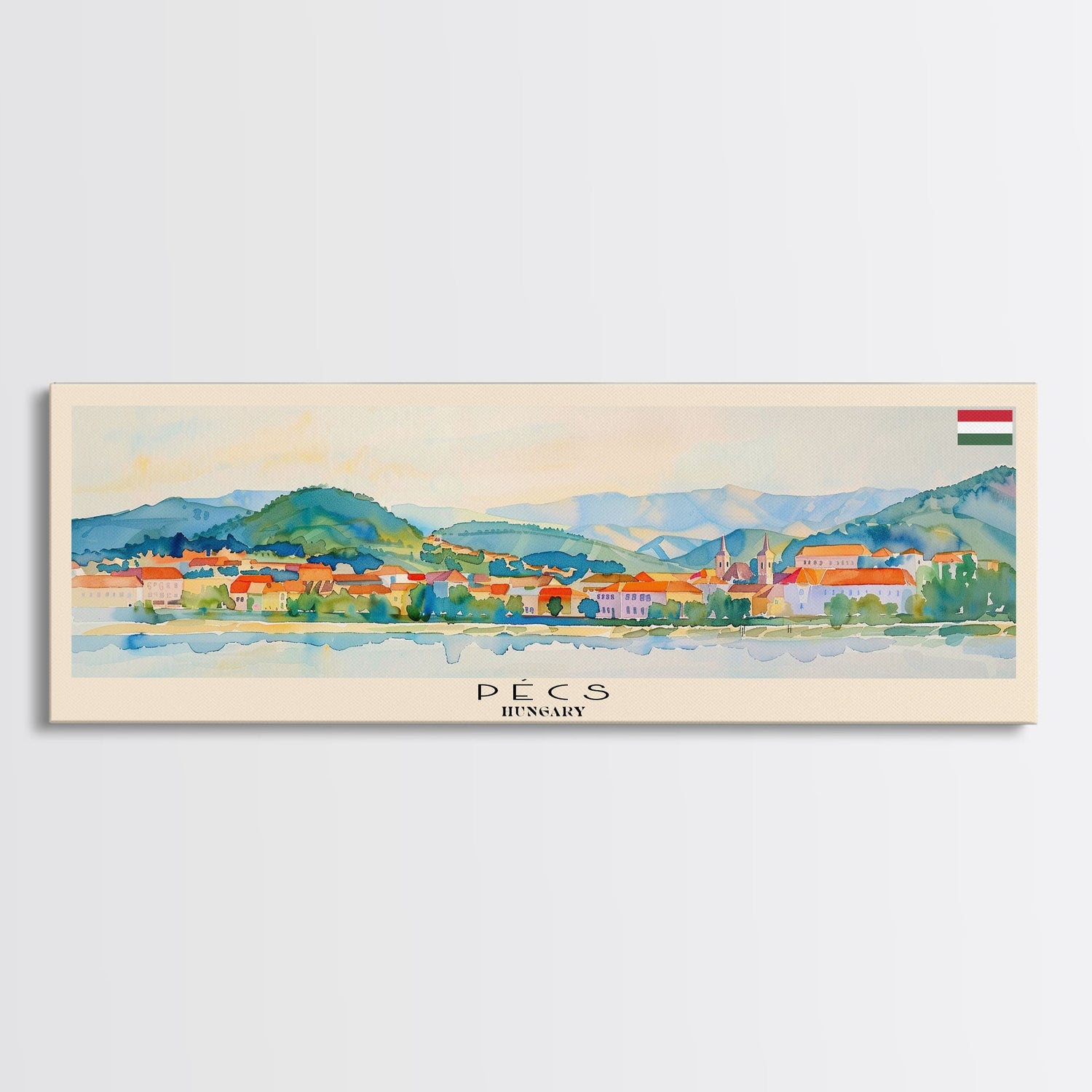 Pécs Hungary Panoramic Travel Poster, Framed Canvas Print or Metal Wall Art, Travel Art, Home Decor, Panoramic Painting, Midcentury Art - 10x30 Inches / No Frame - Stretched Canvas Only is backordered and will ship as soon as it is back in stock.