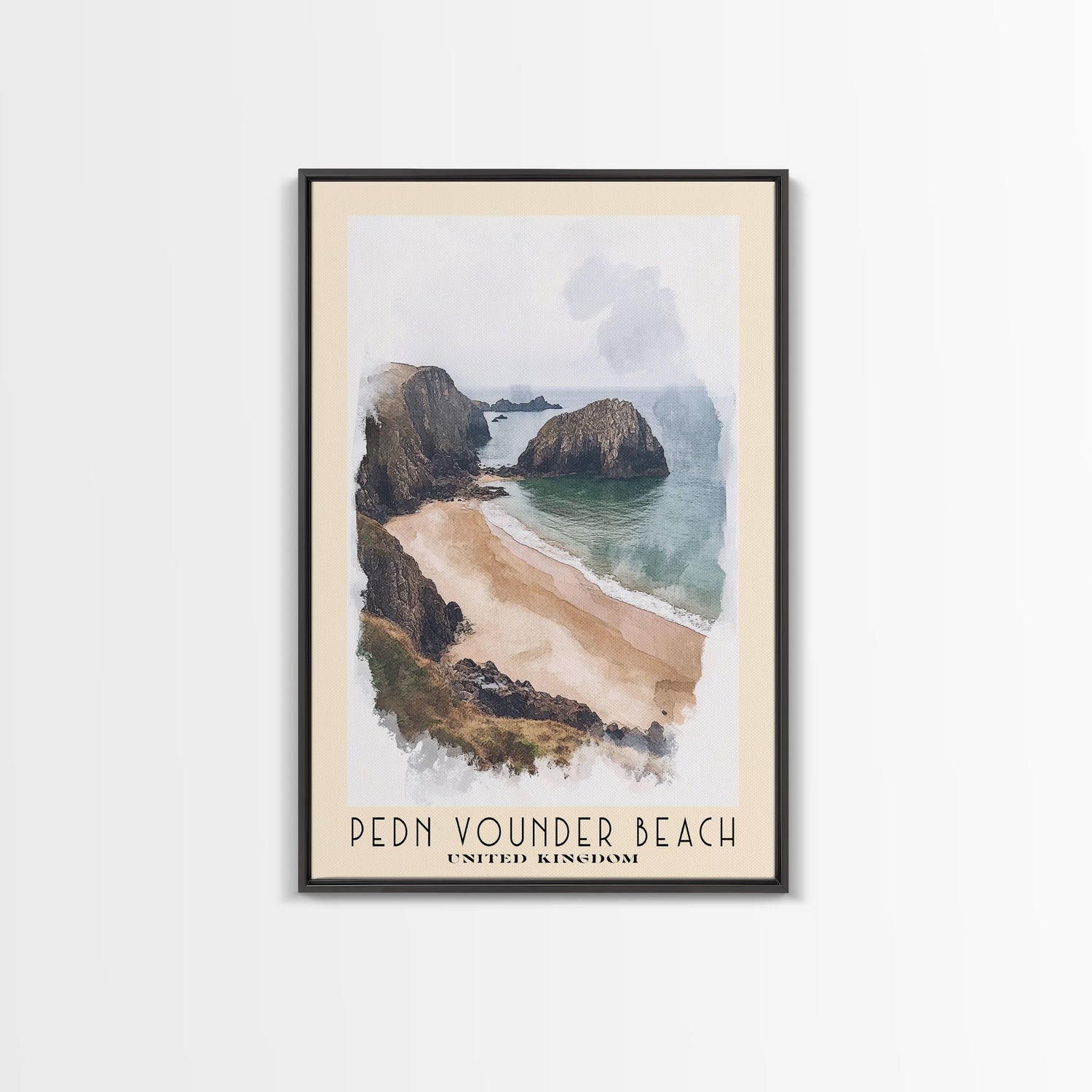 Pedn Vounder Beach, United Kingdom Watercolor Beach Print, Vacation Gift, United Kingdom Wall Art, Framed Canvas Print, Framed Beach Painting