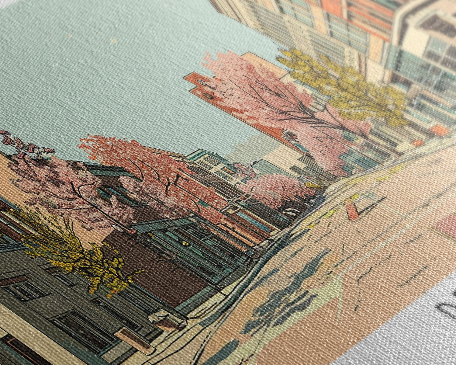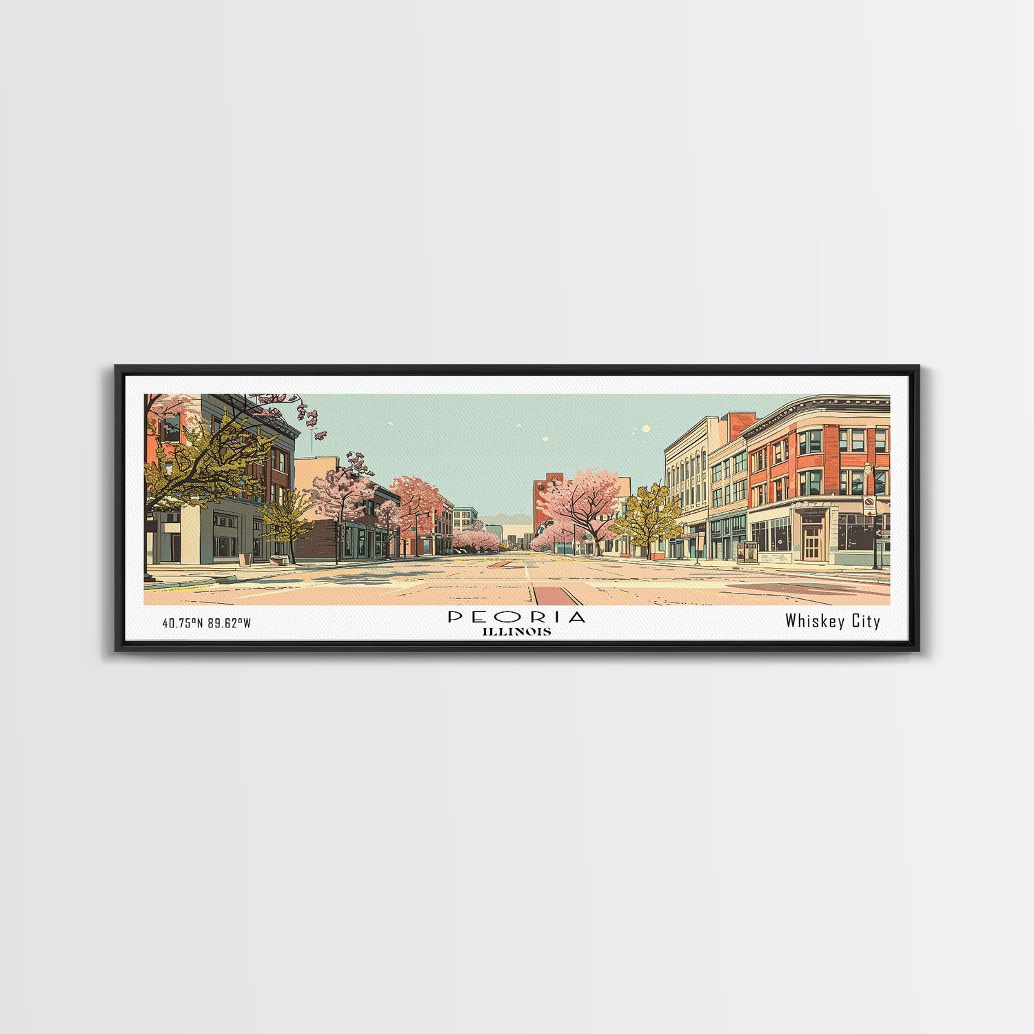 Peoria Illinois Panoramic Painting, Mid Century Modern Framed Canvas Print, Retro Pop Art Travel Poster, City Art, Office Wall Decor, Living Room Art