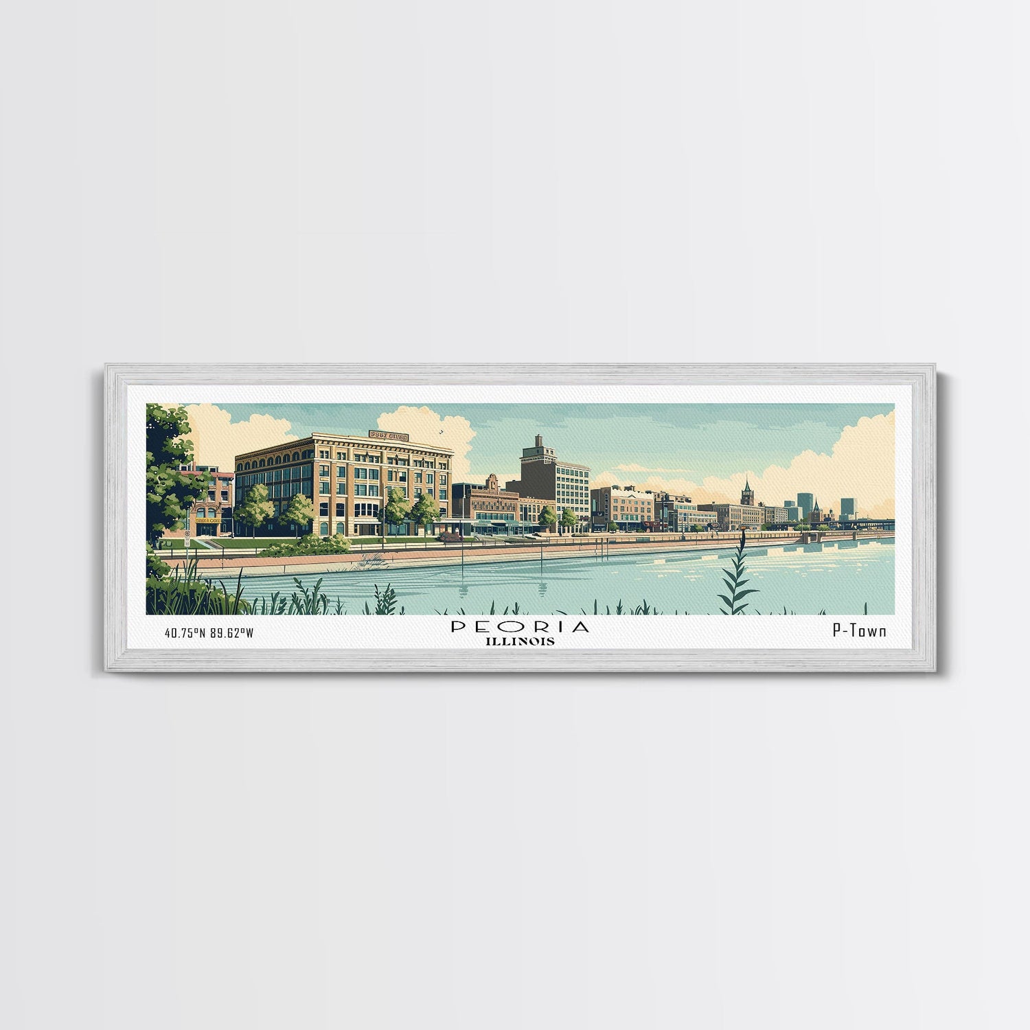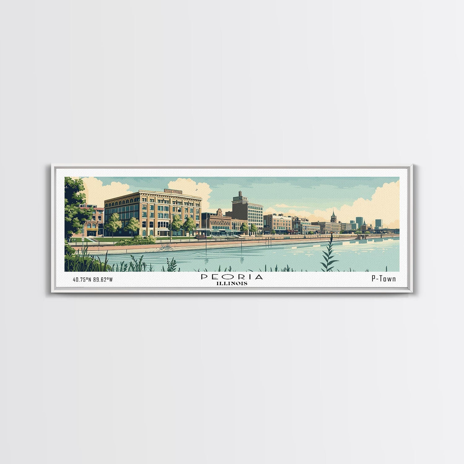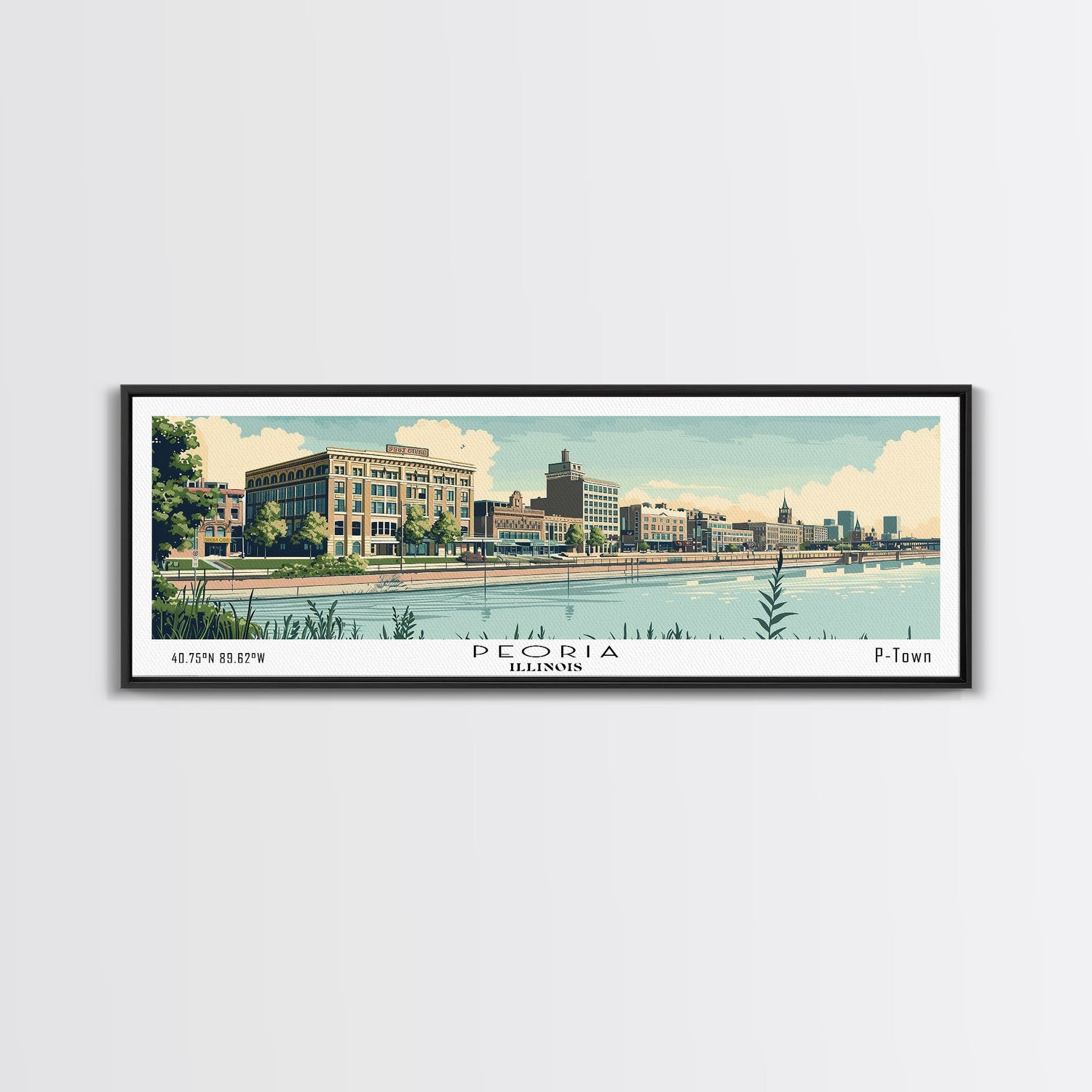 Peoria Illinois Panoramic Painting, Mid Century Modern Framed Canvas Print, Retro Pop Art Travel Poster, City Art, Office Wall Decor, Living Room Art