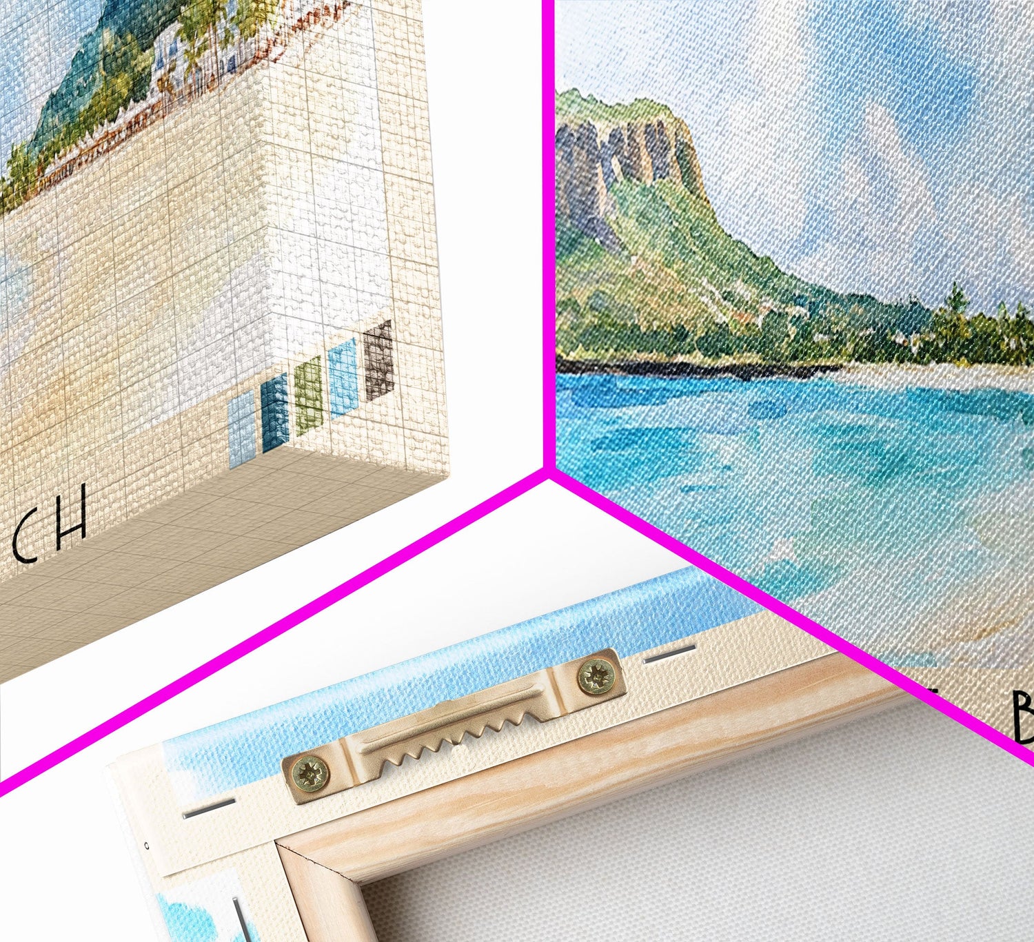 Pereybere Beach, Mauritius Watercolor Beach Print, Vacation Gift, Mauritius Wall Art, Framed Canvas Print, Framed Beach Painting