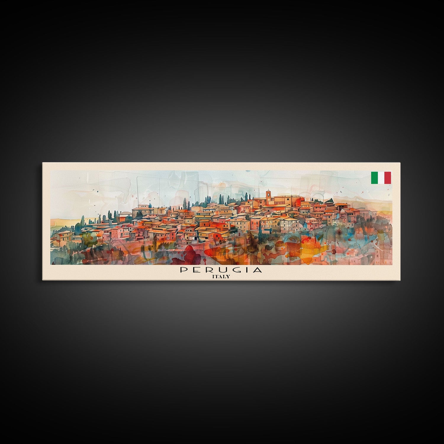 Perugia Italy Panoramic Travel Poster, Framed Canvas Print or Metal Wall Art, Travel Art, Home Decor, Panoramic Painting, Midcentury Art
