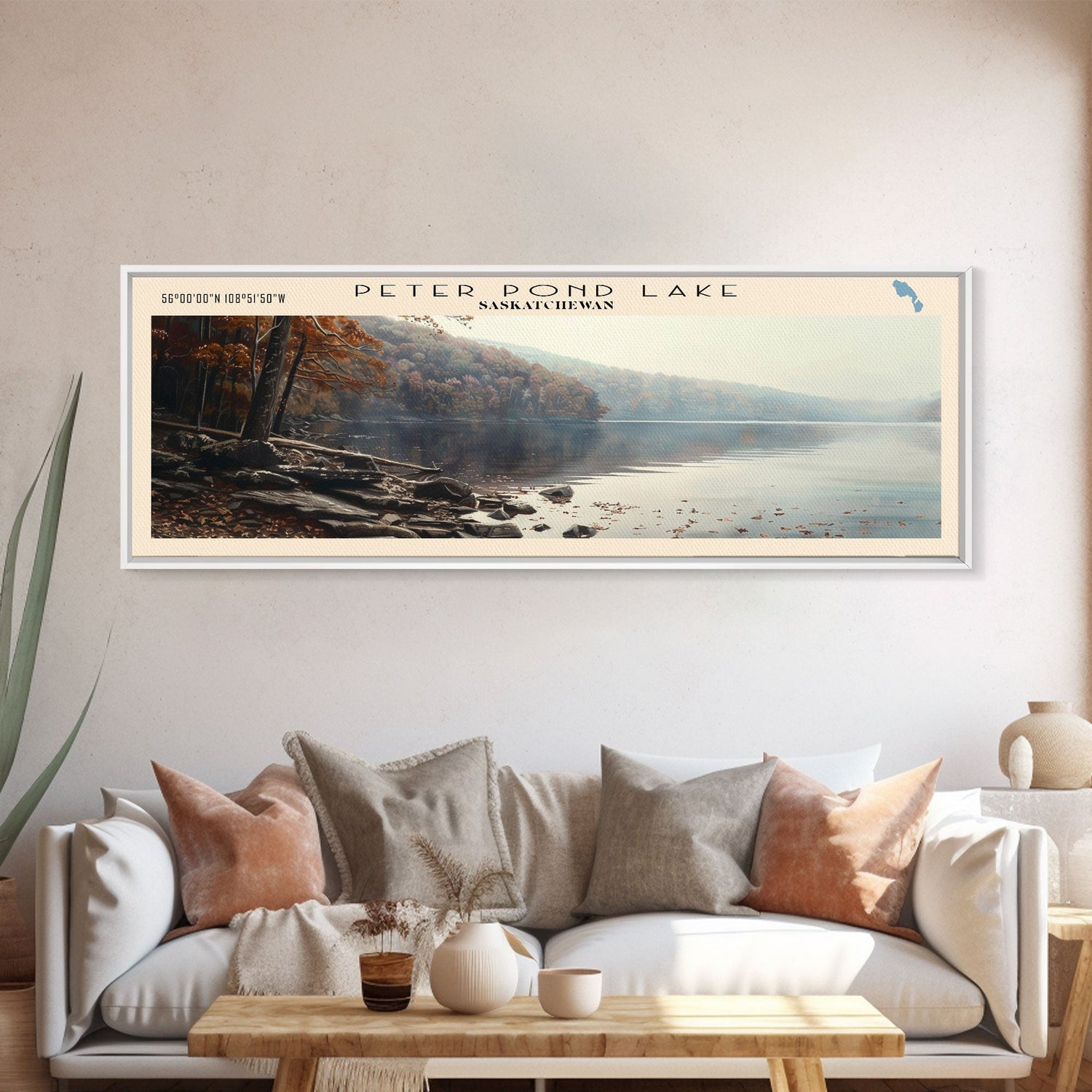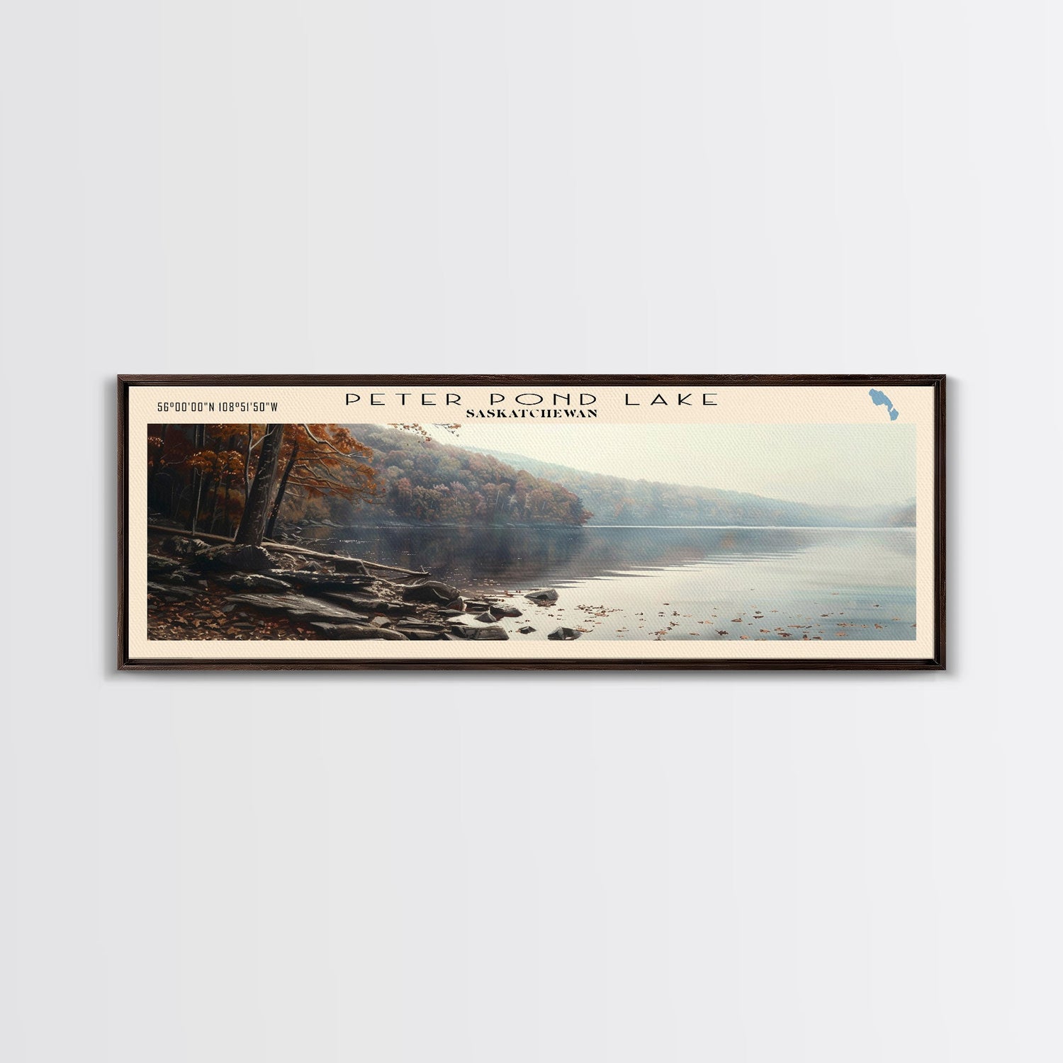 Peter Pond Lake Framed Canvas Print, Lake House Decor, Panoramic Wall Art, Travel Poster, Scenic Landscape Painting, Contemporary Art