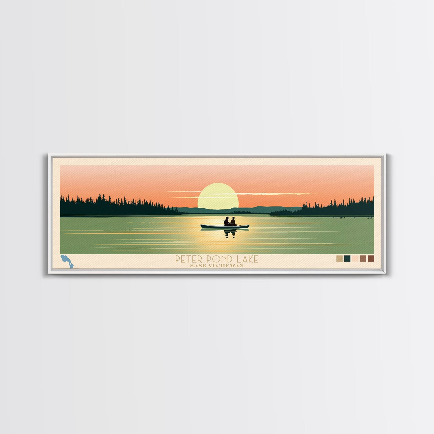 Peter Pond Lake, Saskatchewan Framed Canvas Print, Panoramic Wall Art, Midcentury Modern, Pop Art, Home Decor, Travel Poster, Living Room Art