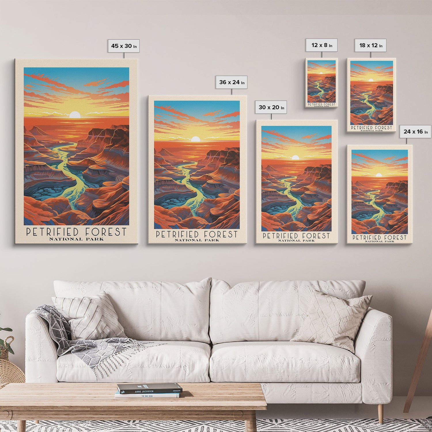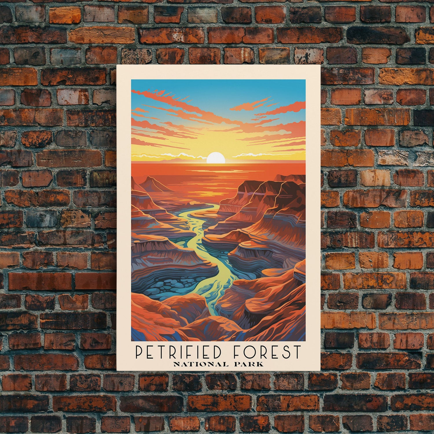 Petrified Forest National Park, Arizona Travel Art, National Park Print, Minimalist Travel Art, Midcentury Modern Retro Style Landscape - 8x12 Inches / No Frame - Stretched Canvas Only is backordered and will ship as soon as it is back in stock.