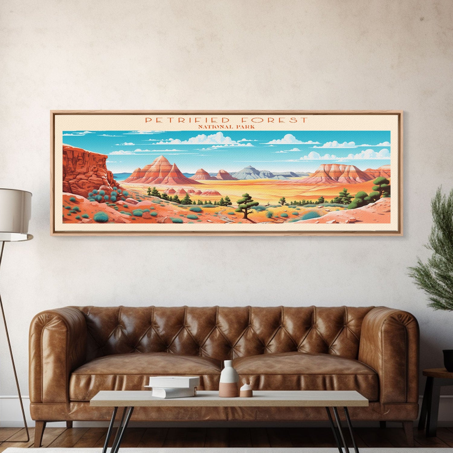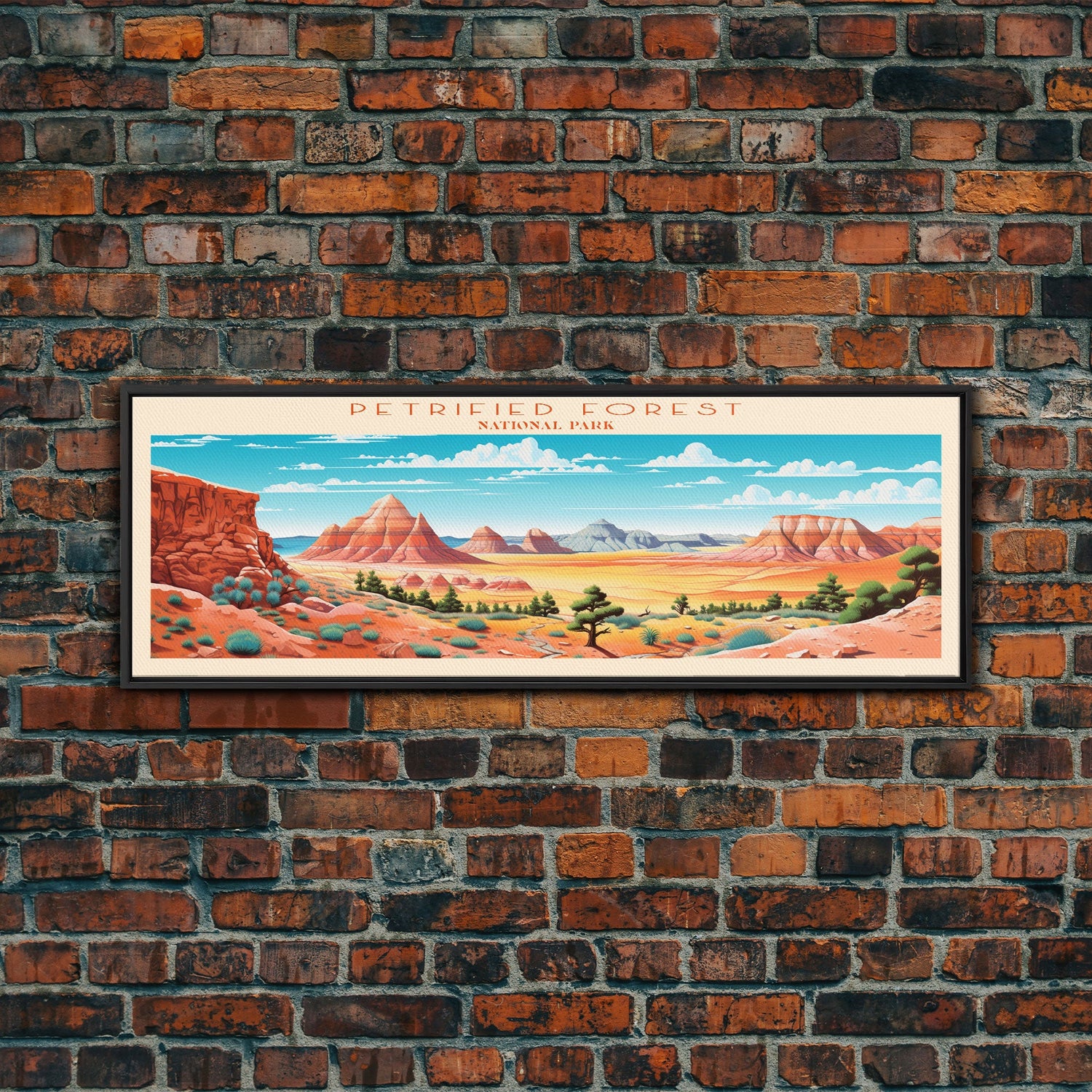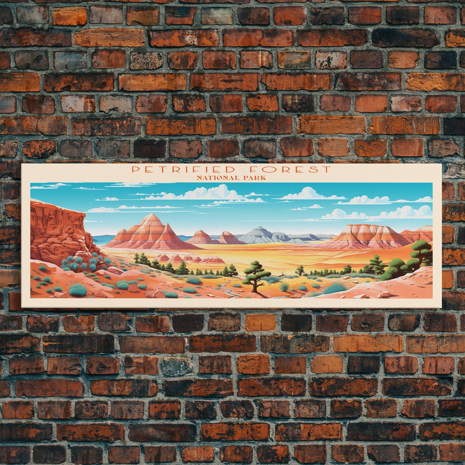 Petrified Forest National Park Panoramic Arizona Travel Art, National Park Print, Minimalist Travel Art, Midcentury Modern Style Landscape - 10x30 Inches / No Frame - Stretched Canvas Only is backordered and will ship as soon as it is back in stock.