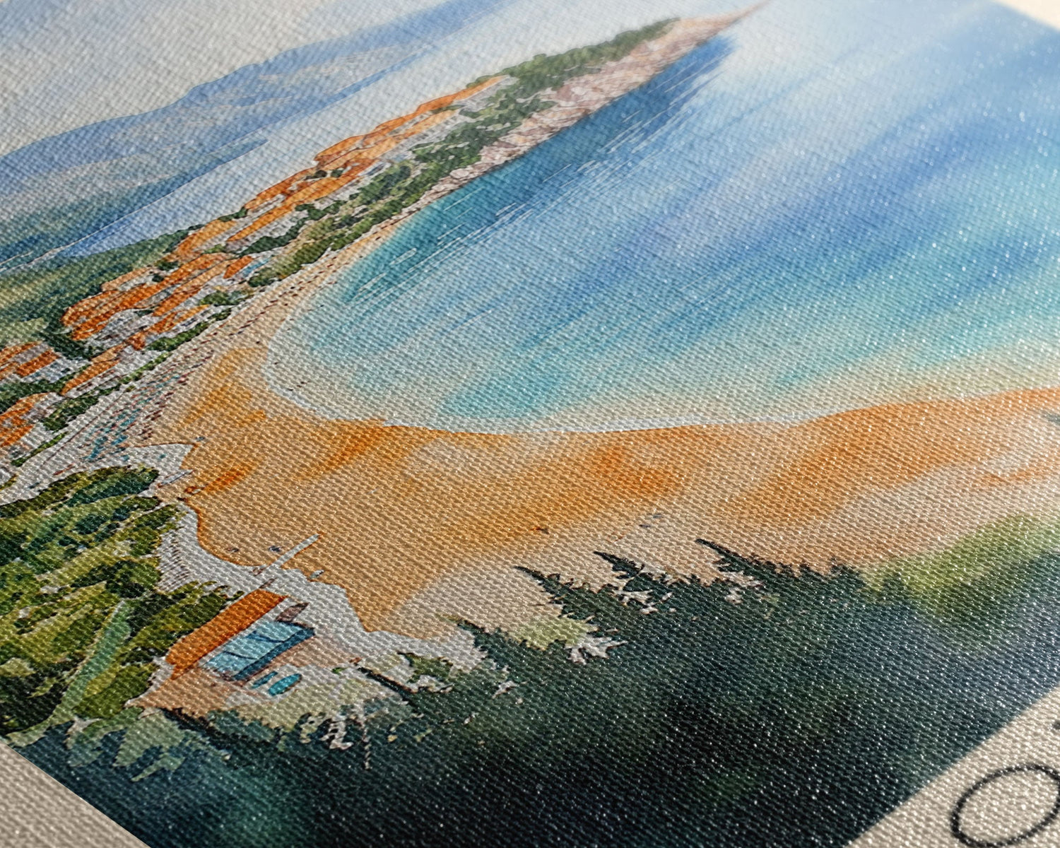 Petrovac Beach, Montenegro Watercolor Beach Print, Vacation Gift, Montenegro Wall Art, Beach Painting, Beach Decor, Beach Painting - 8x12 Inches / No Frame - Stretched Canvas Only is backordered and will ship as soon as it is back in stock.