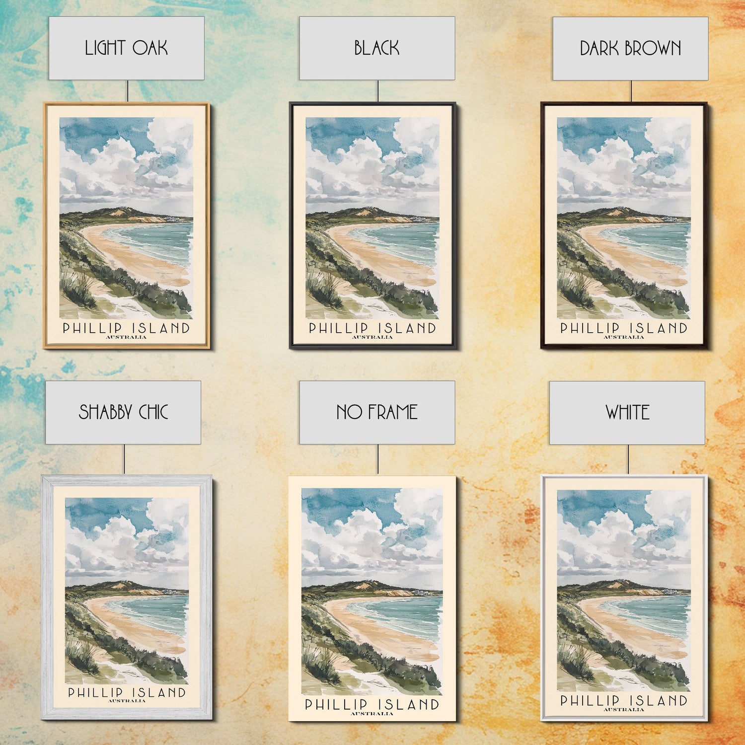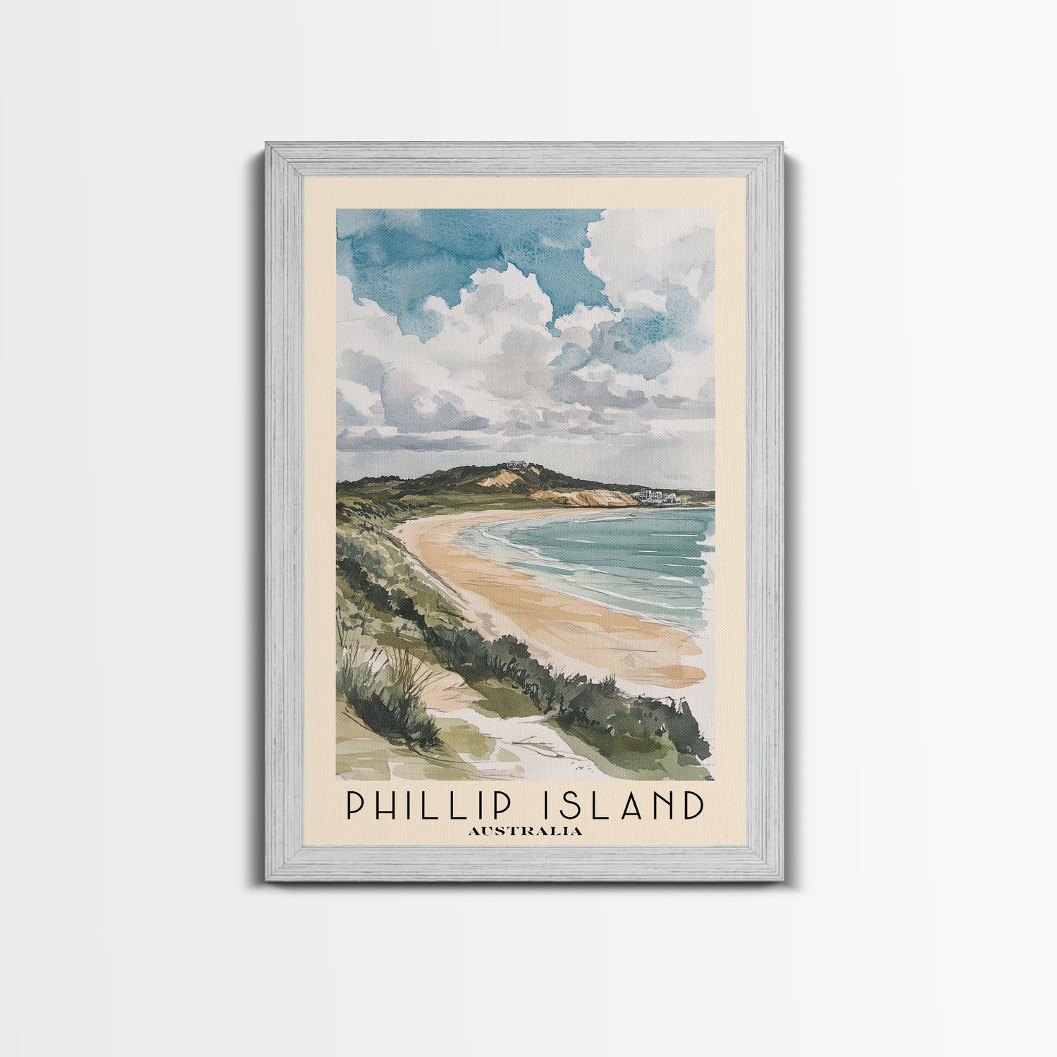 Phillip Island, Australia Watercolor Print, Vacation Gift, Australia Wall Art, Beach Painting, Beach Decor, Large Wall Art, Wood Frame Art