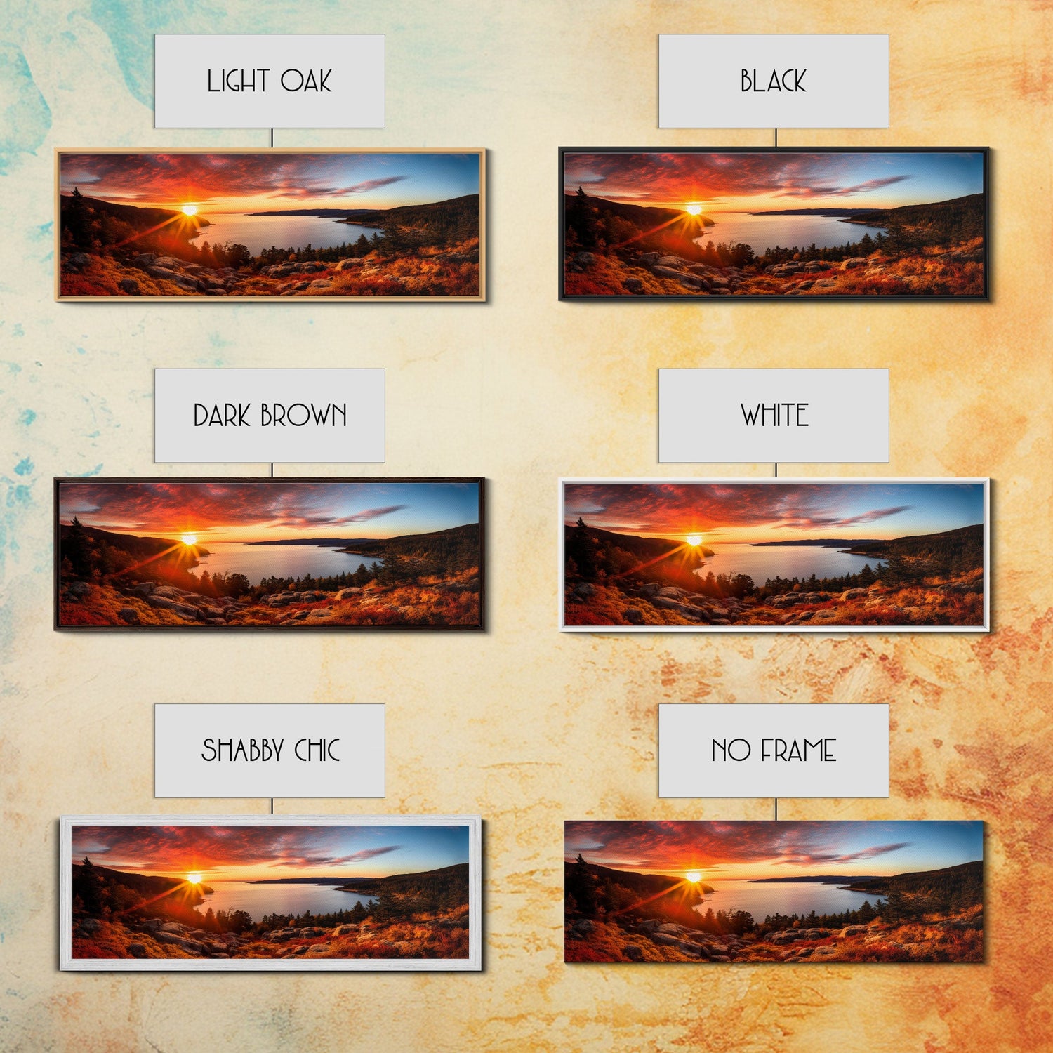 Photographic Panoramic of Acadia National Park, Sunset Photography, National Park Art, Framed Canvas Print, Landscape Photography