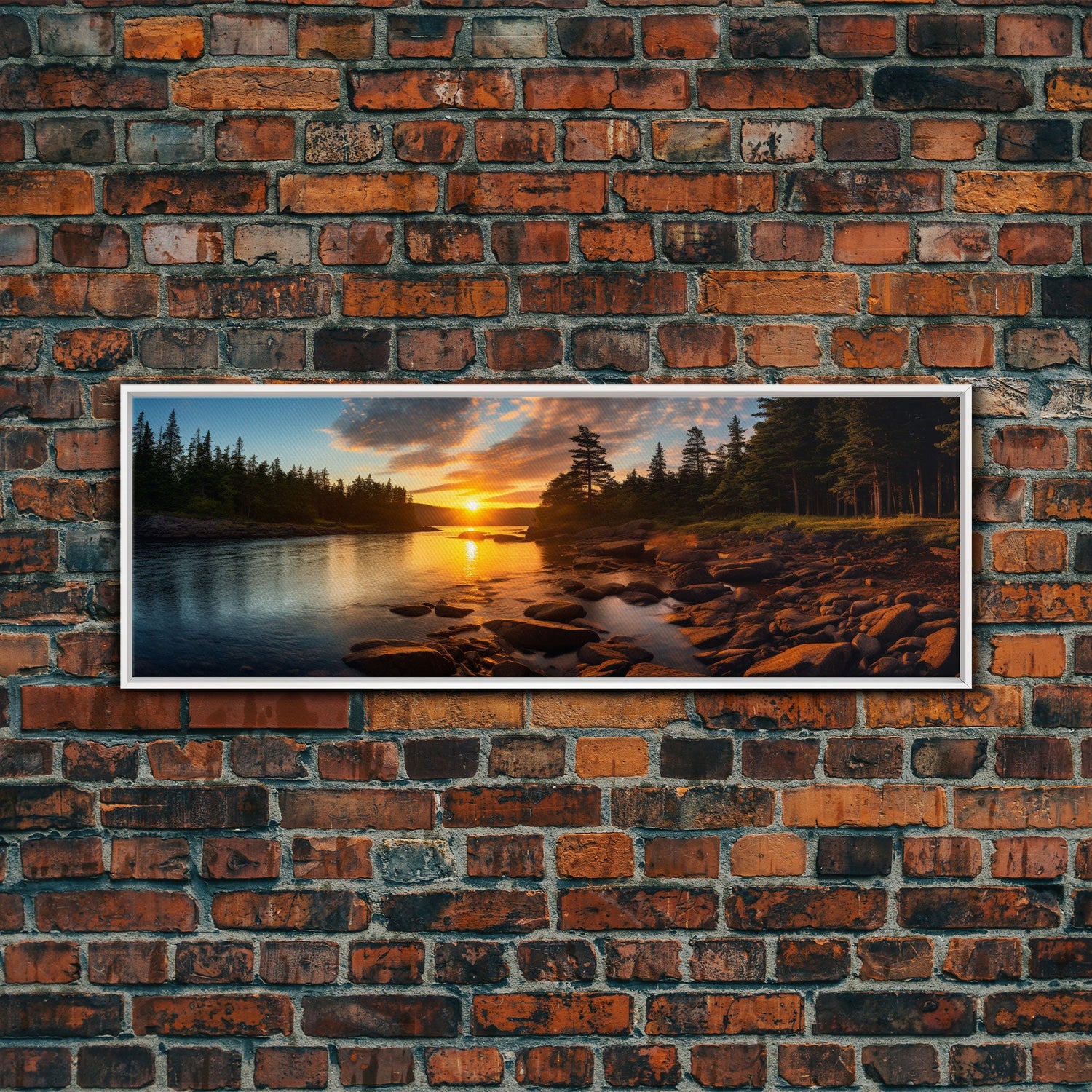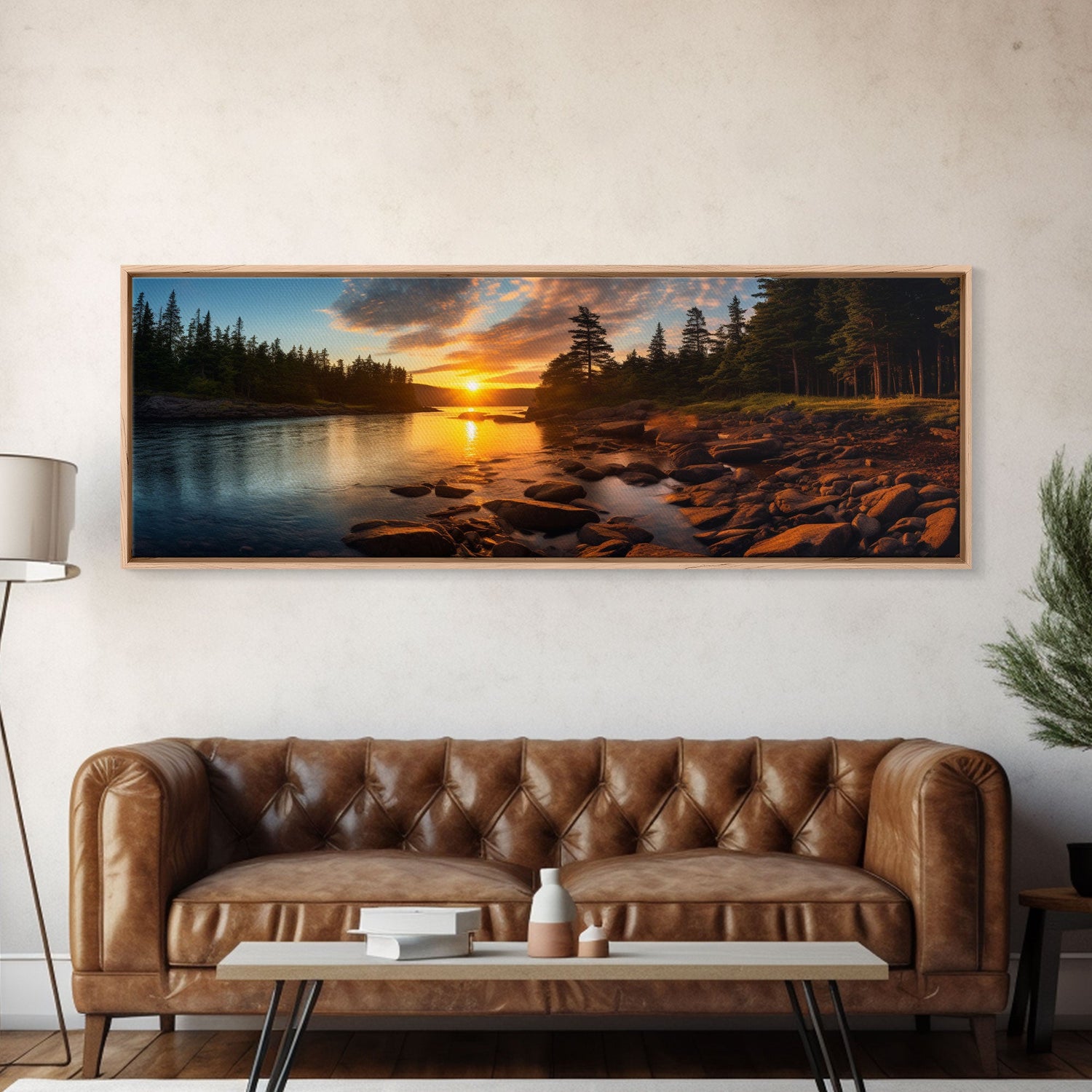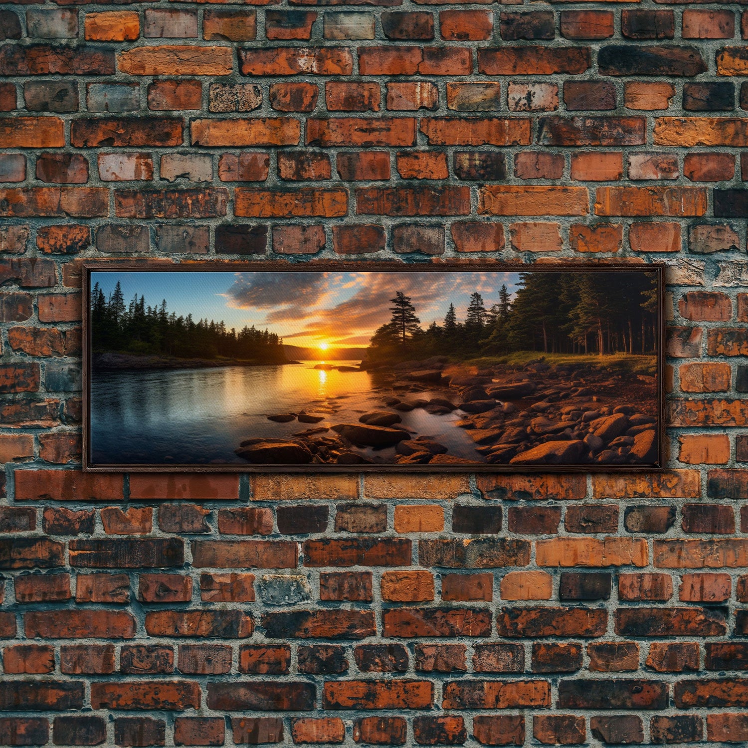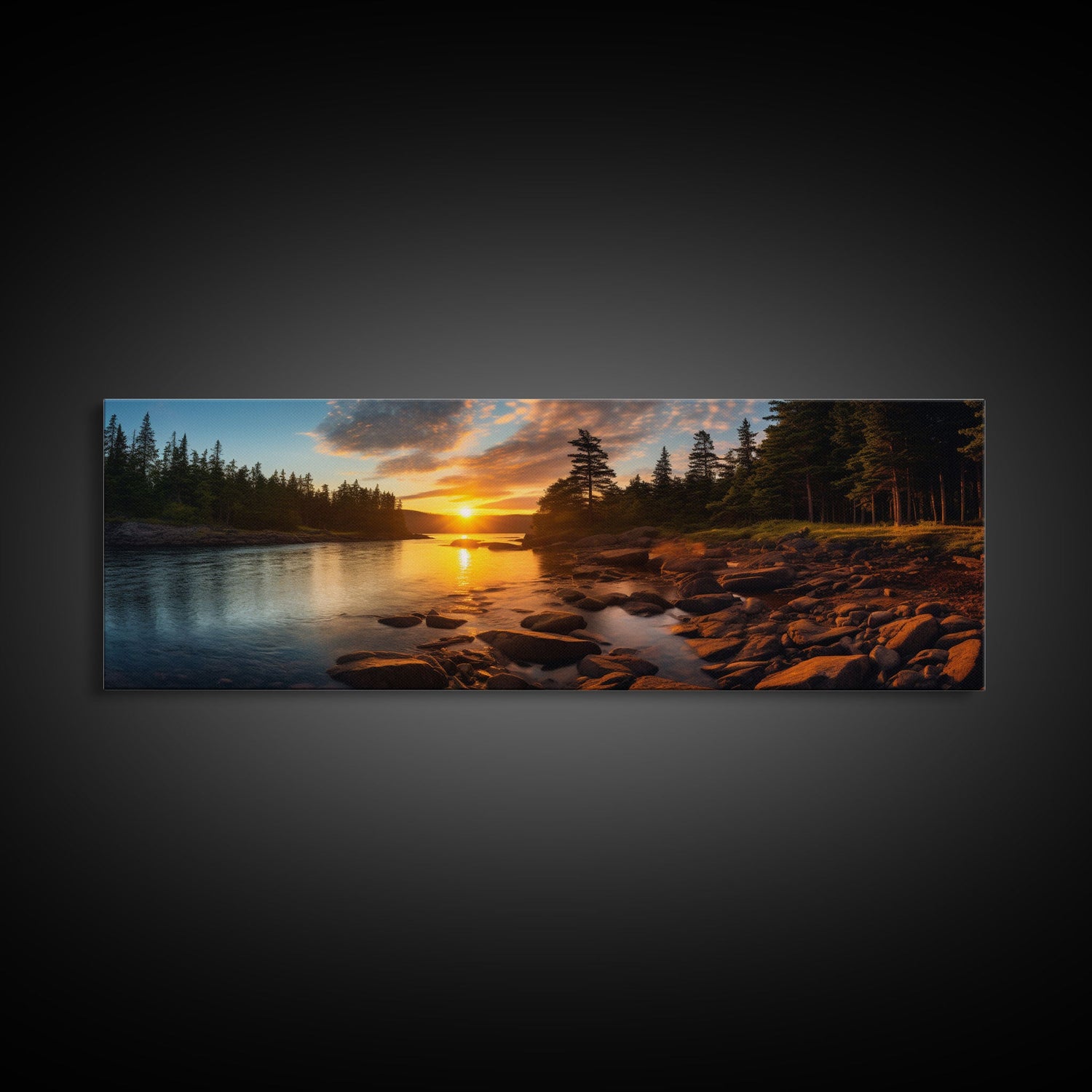 Photographic Panoramic of Acadia National Park, Sunset Photography, National Park Art, Framed Canvas Print, Landscape Photography