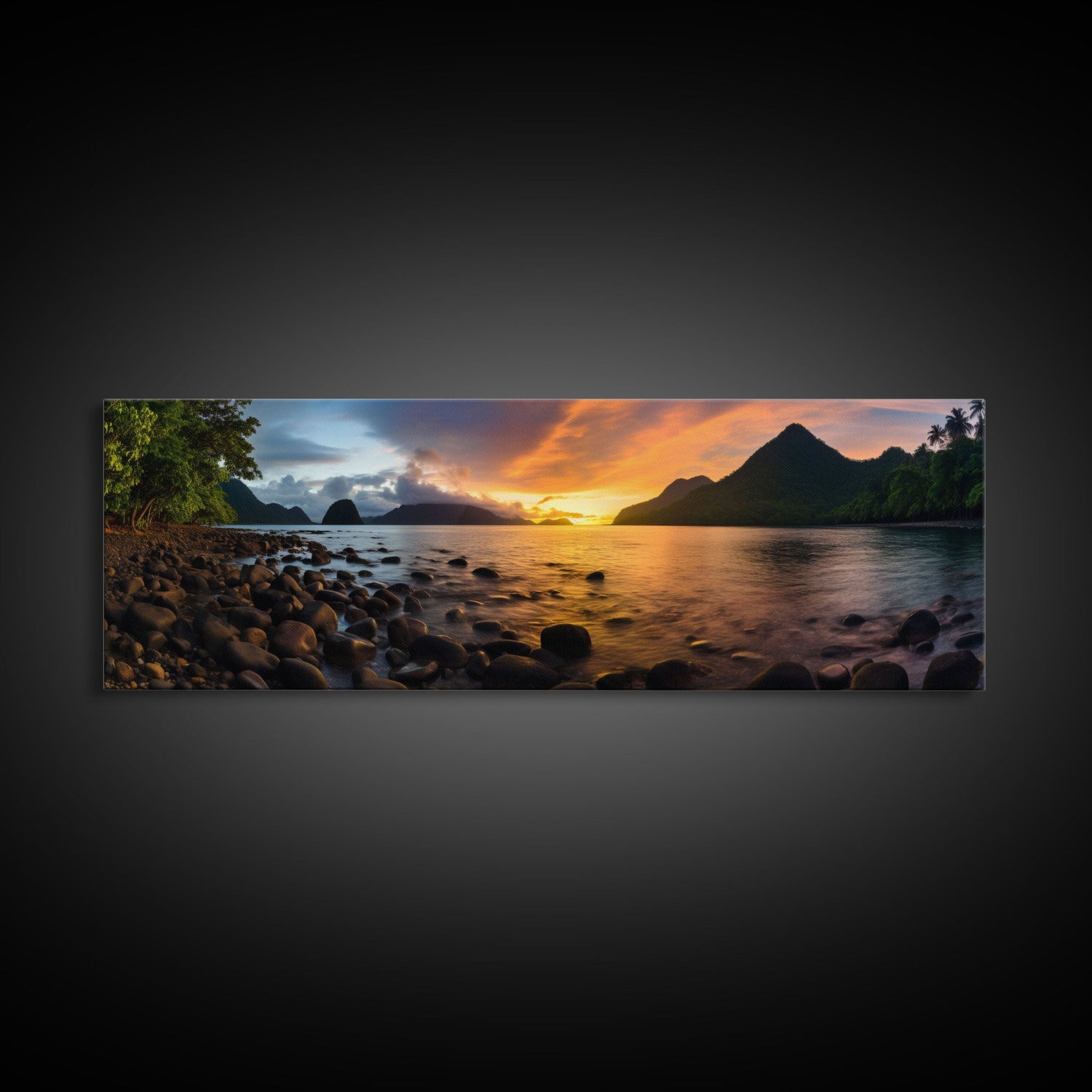 Photographic Panoramic of American Samoa National Park, Sunset Photography, National Park Art, Framed Canvas Print, Landscape Photography