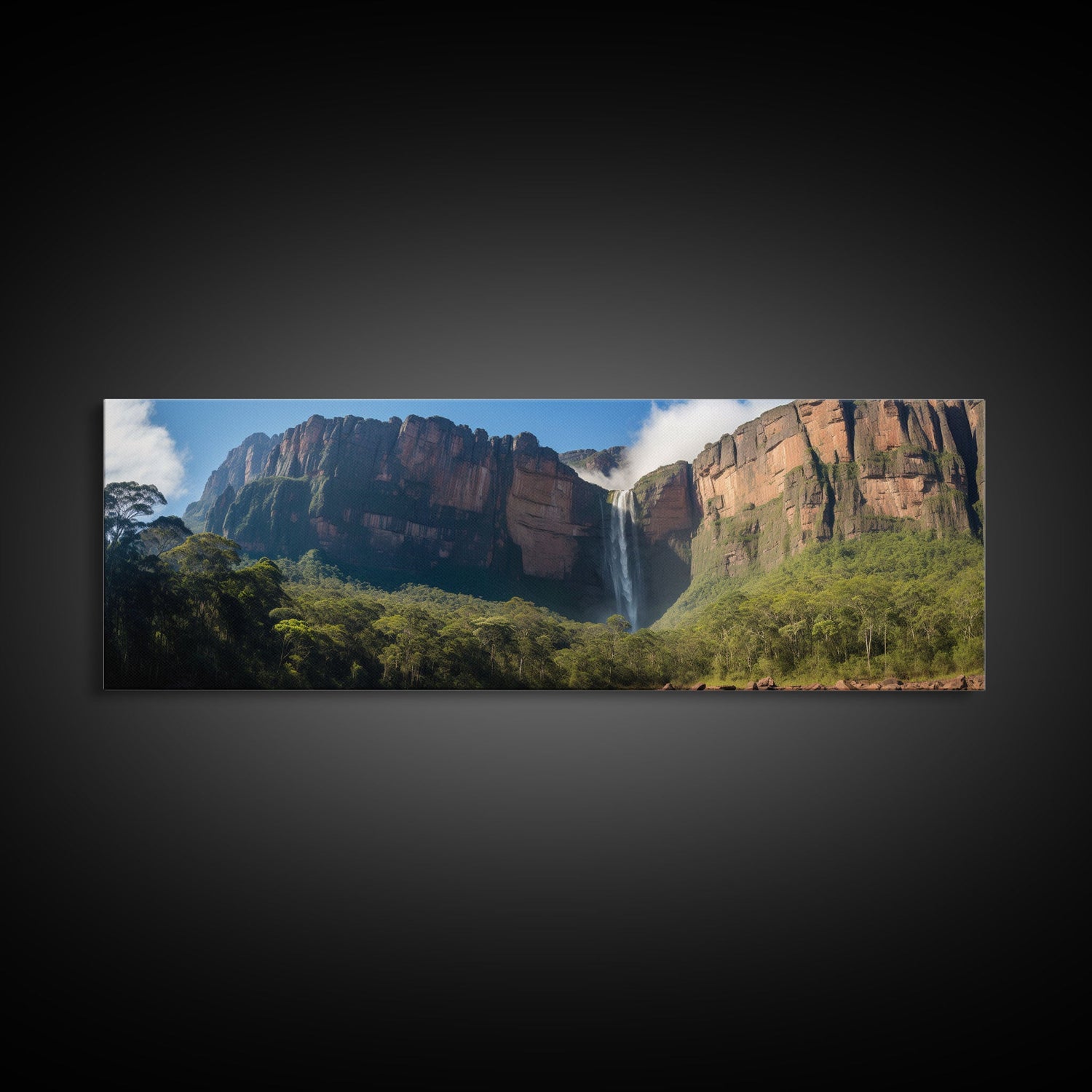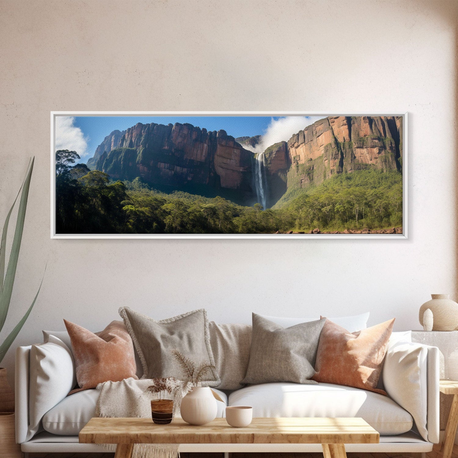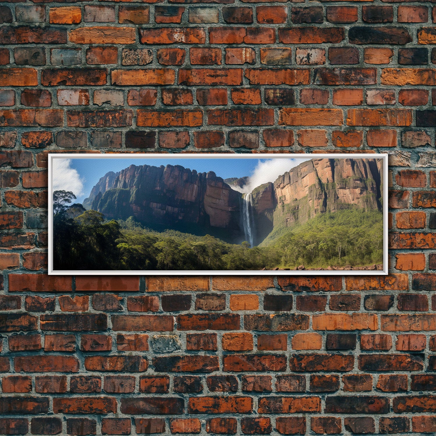 Photographic Panoramic of Angel Falls Venezuela, Sunset Photography, National Park Art, Framed Canvas Print, Landscape Photography