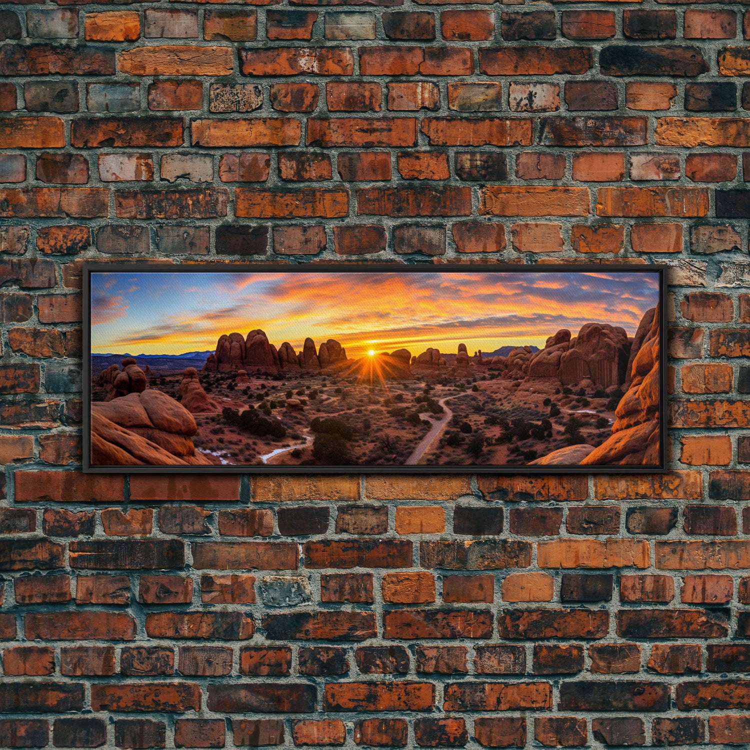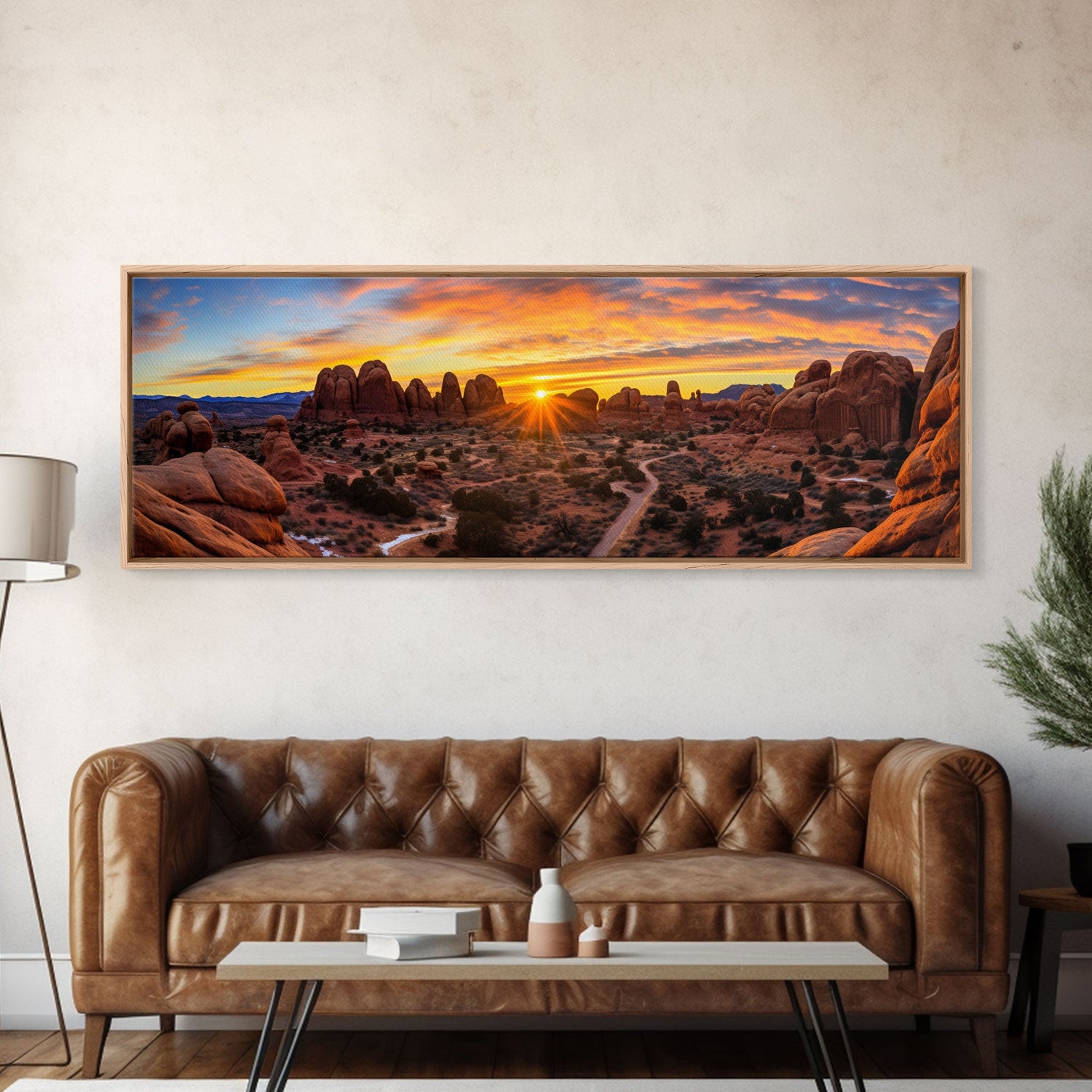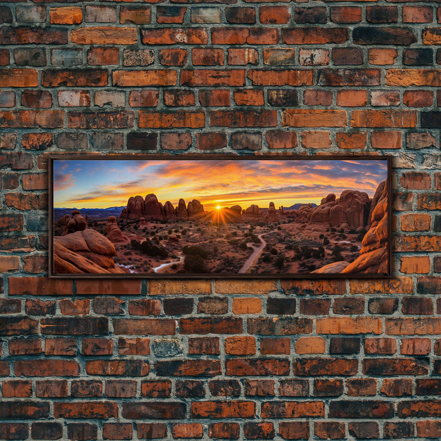 Photographic Panoramic of Arches National Park, Sunset Photography, National Park Art, Framed Canvas Print, Landscape Photography