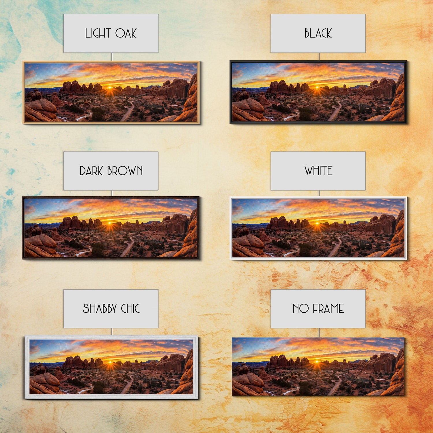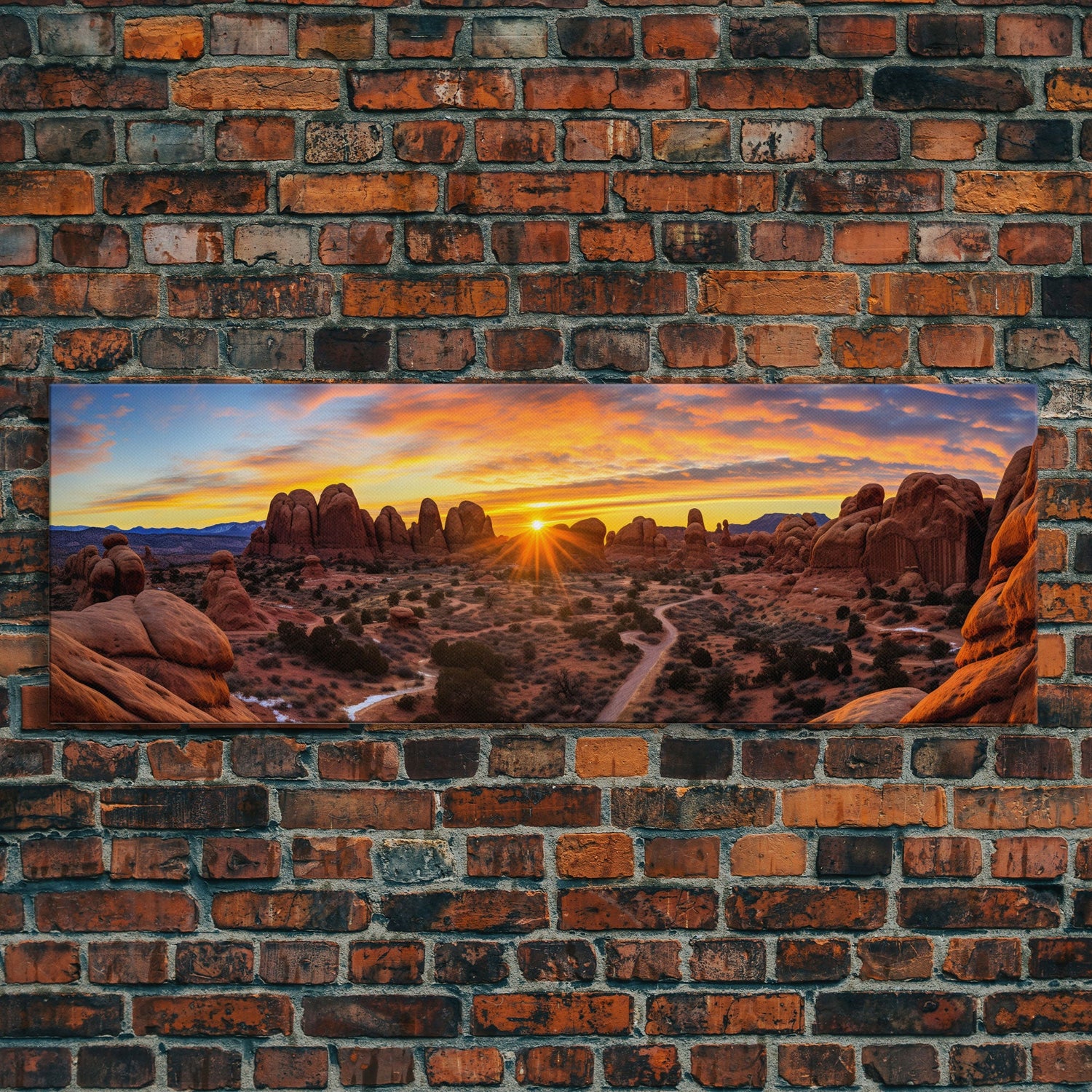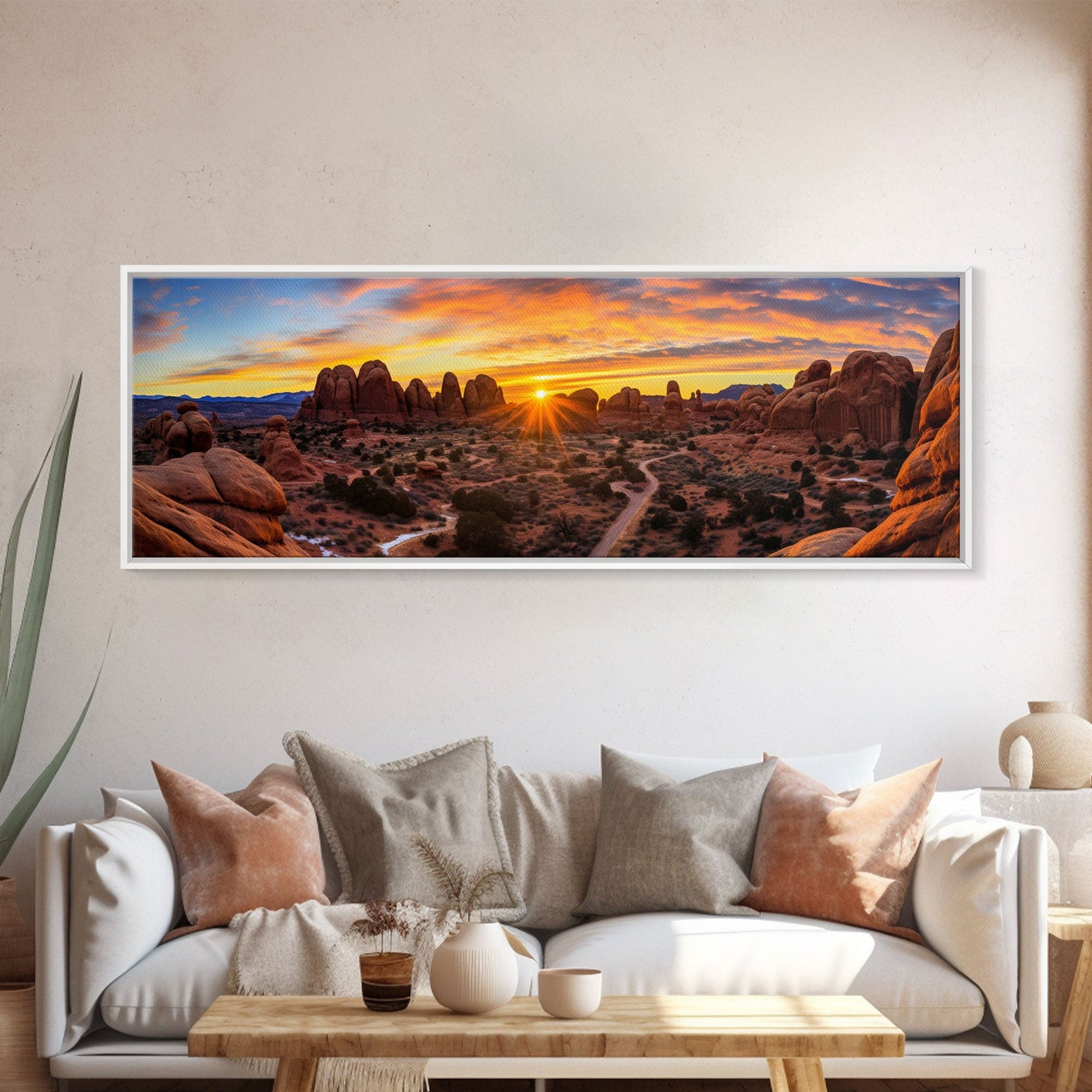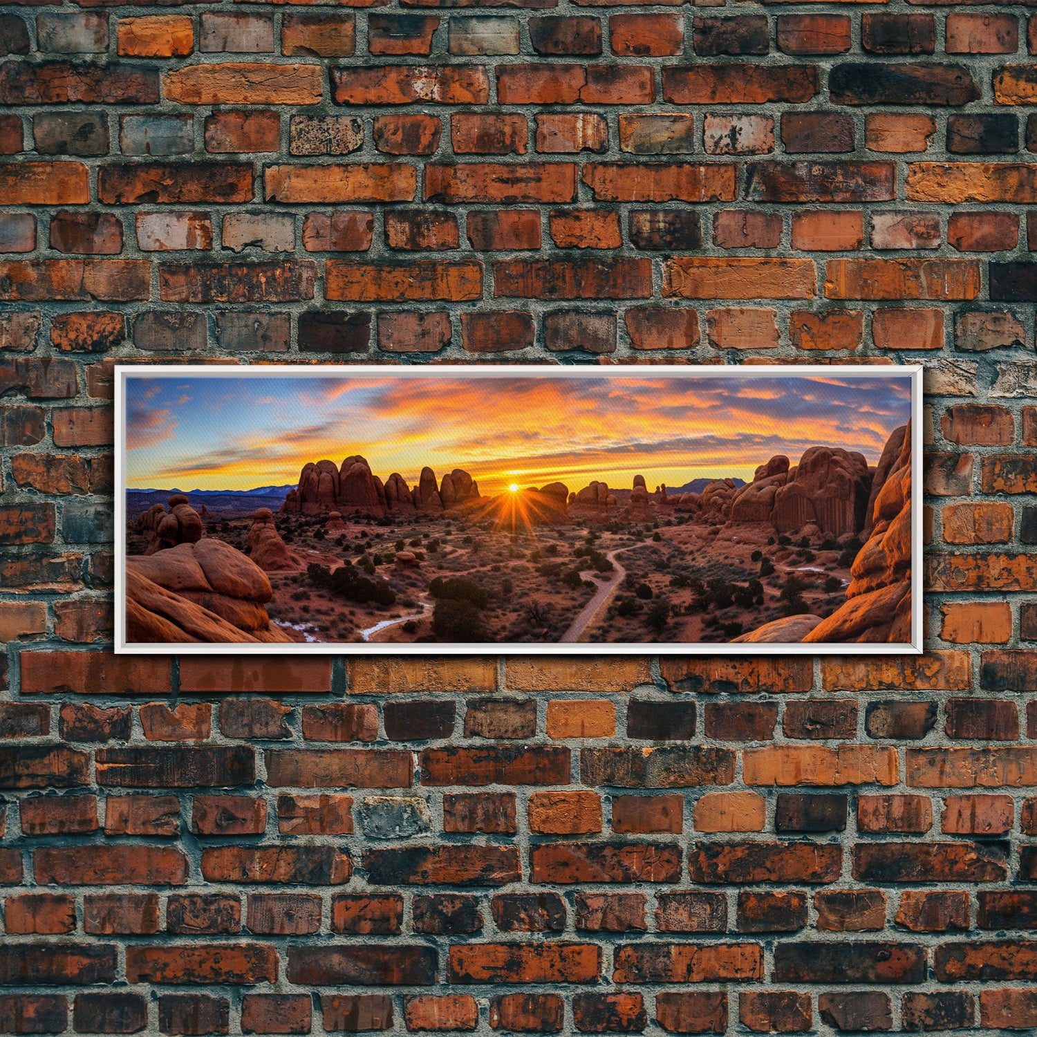 Photographic Panoramic of Arches National Park, Sunset Photography, National Park Art, Framed Canvas Print, Landscape Photography