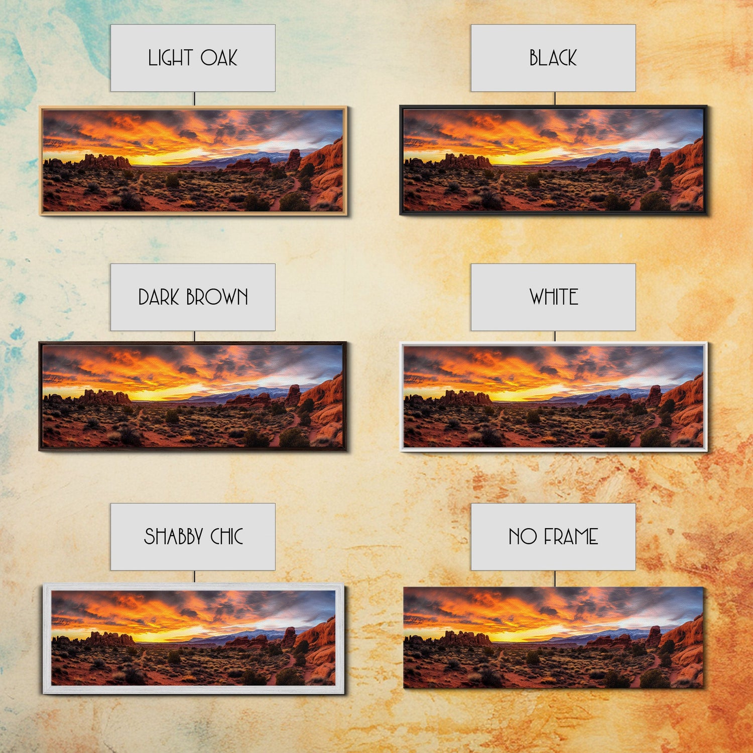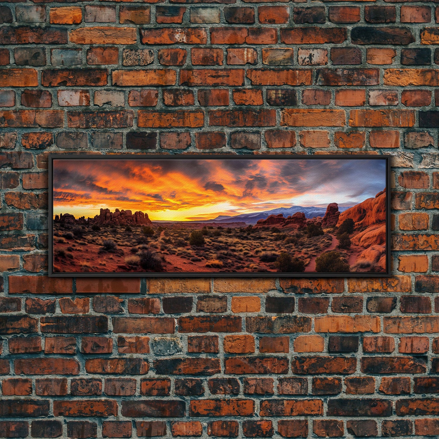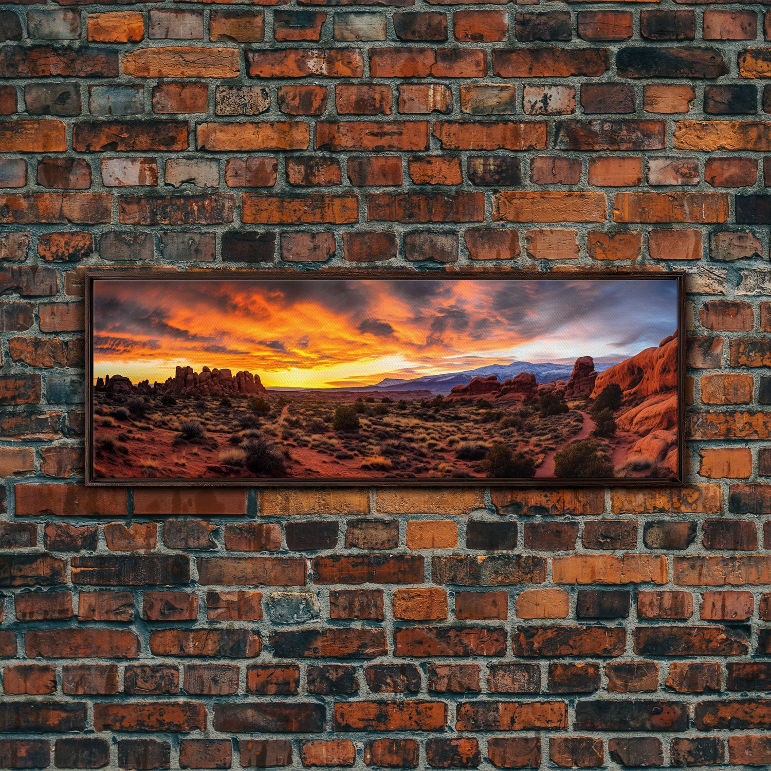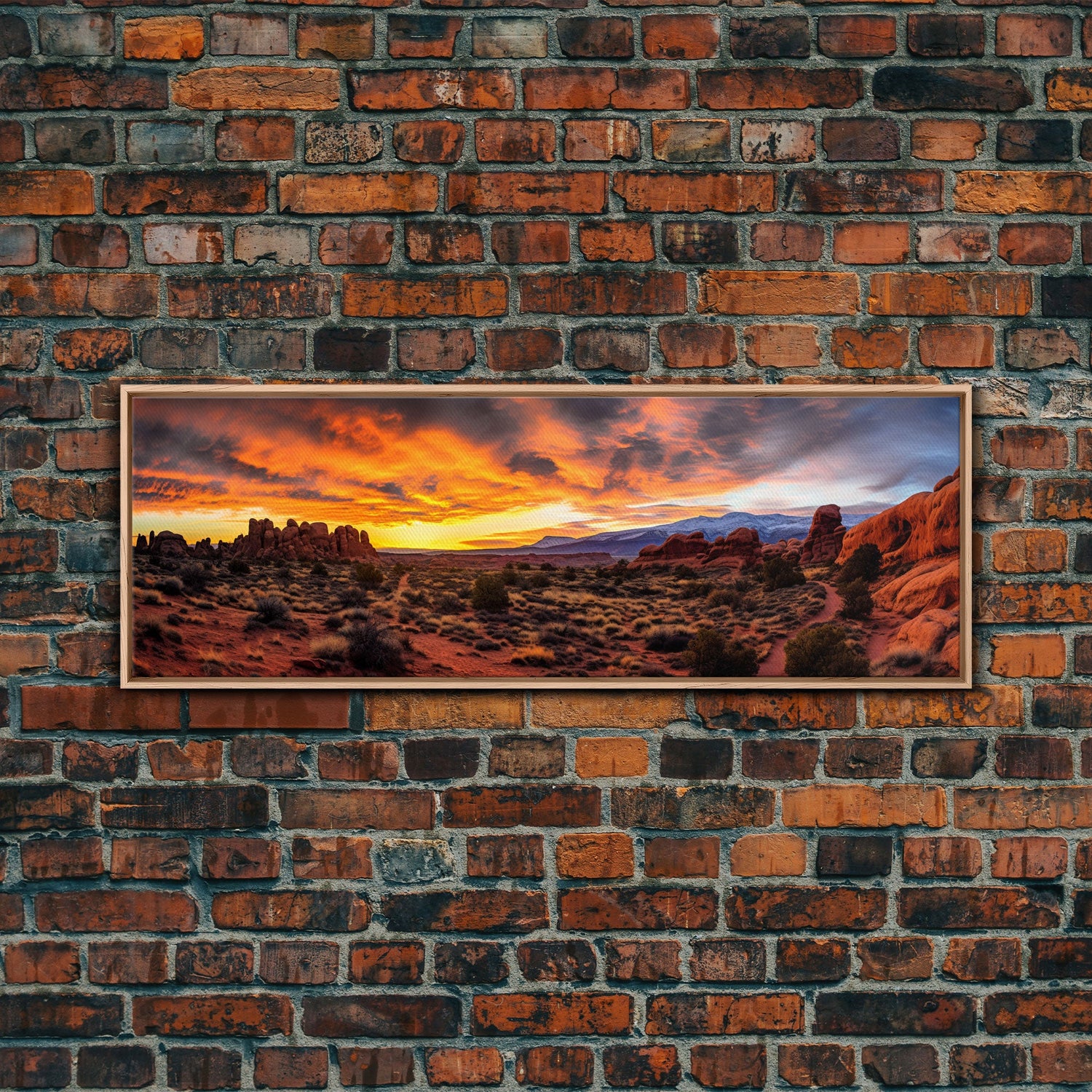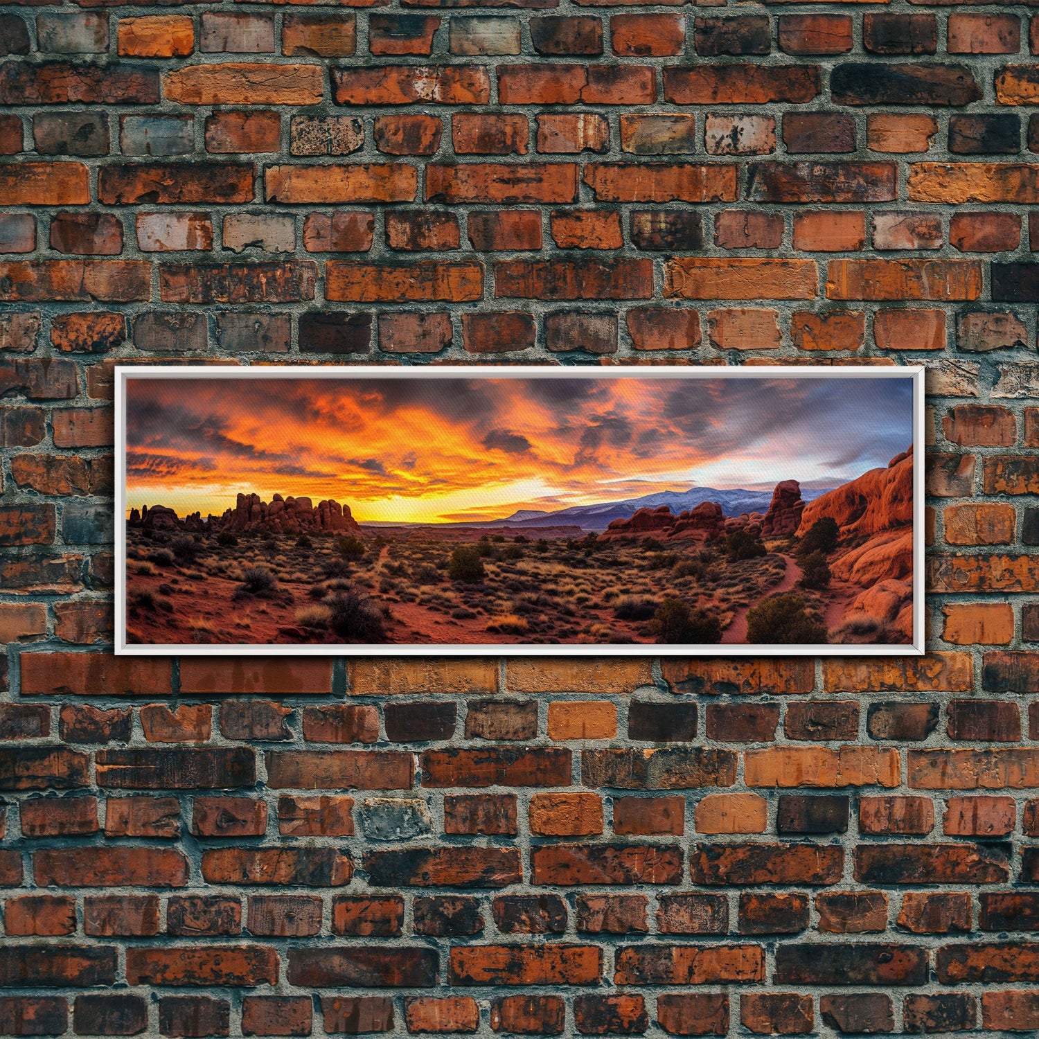 Photographic Panoramic of Arches National Park, Sunset Photography, National Park Art, Framed Canvas Print, Landscape Photography