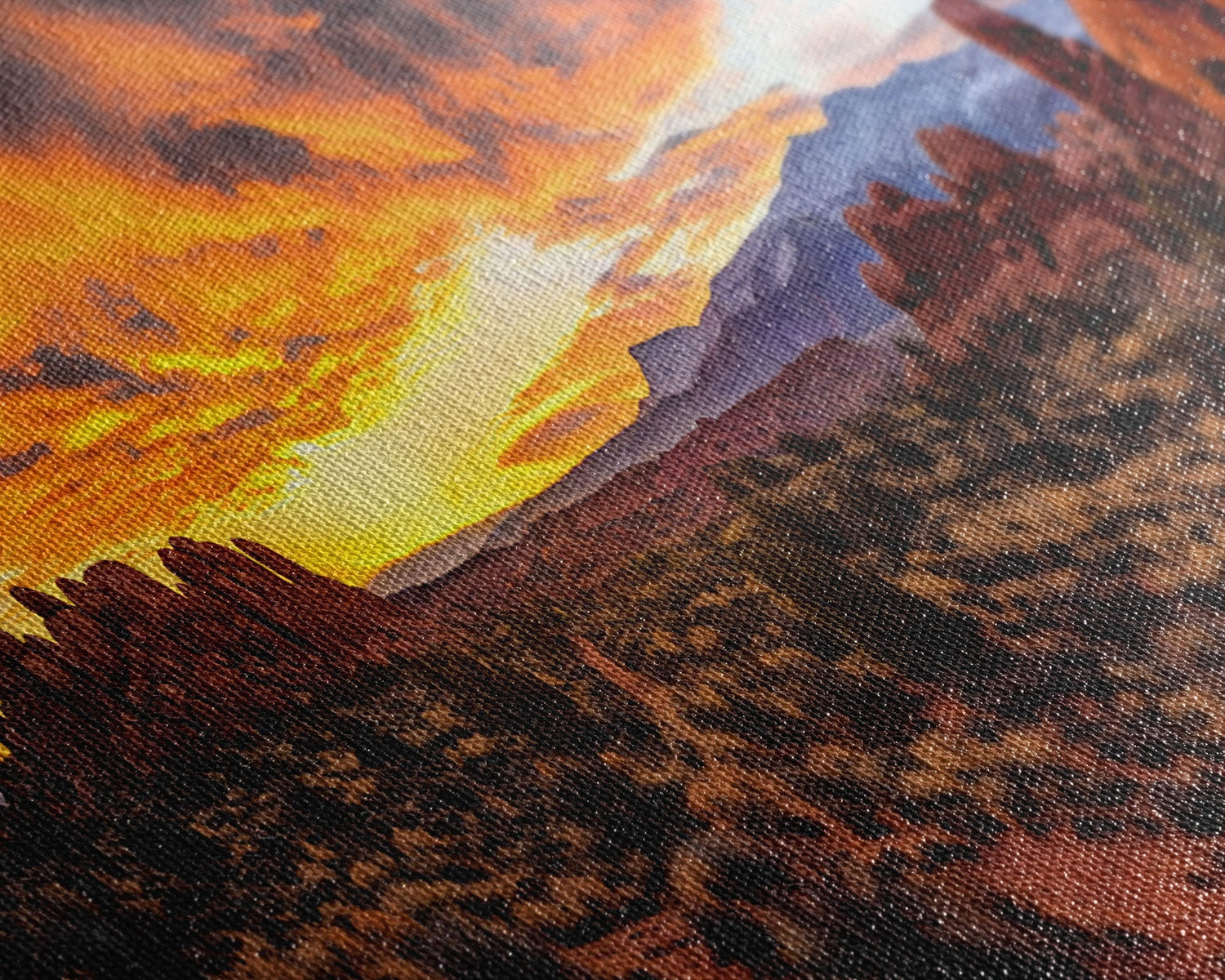 Most of our canvases are made in the USA, with the exception of canvases ordered with the light oak unstained frames, and any large canvases (24x48, 30x60, 16x48 and 20x60) ordered WITH a frame. These are temporarily made in and shipped from Europe, while we try to find a more consistent supplier in the USA.