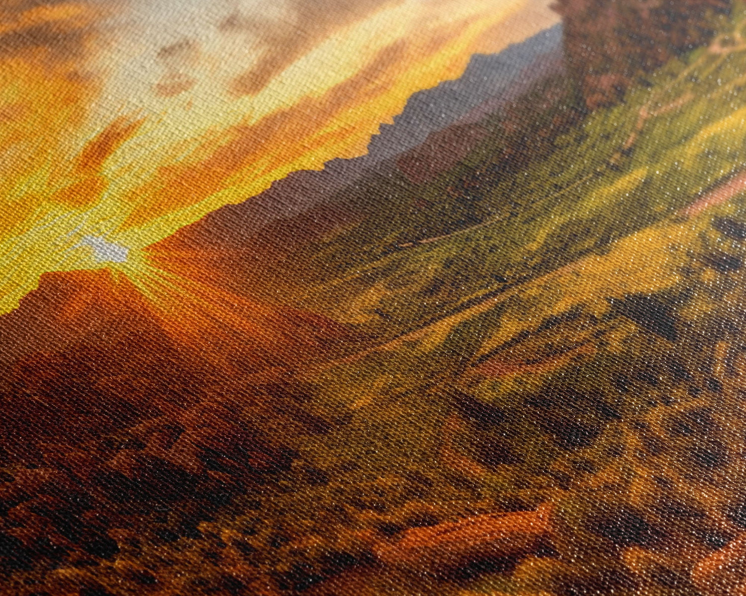 Most of our canvases are made in the USA, with the exception of canvases ordered with the light oak unstained frames, and any large canvases (24x48, 30x60, 16x48 and 20x60) ordered WITH a frame. These are temporarily made in and shipped from Europe, while we try to find a more consistent supplier in the USA.