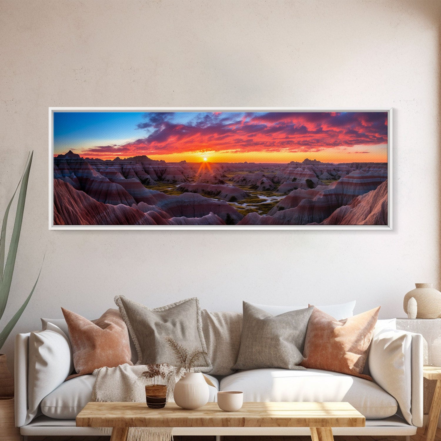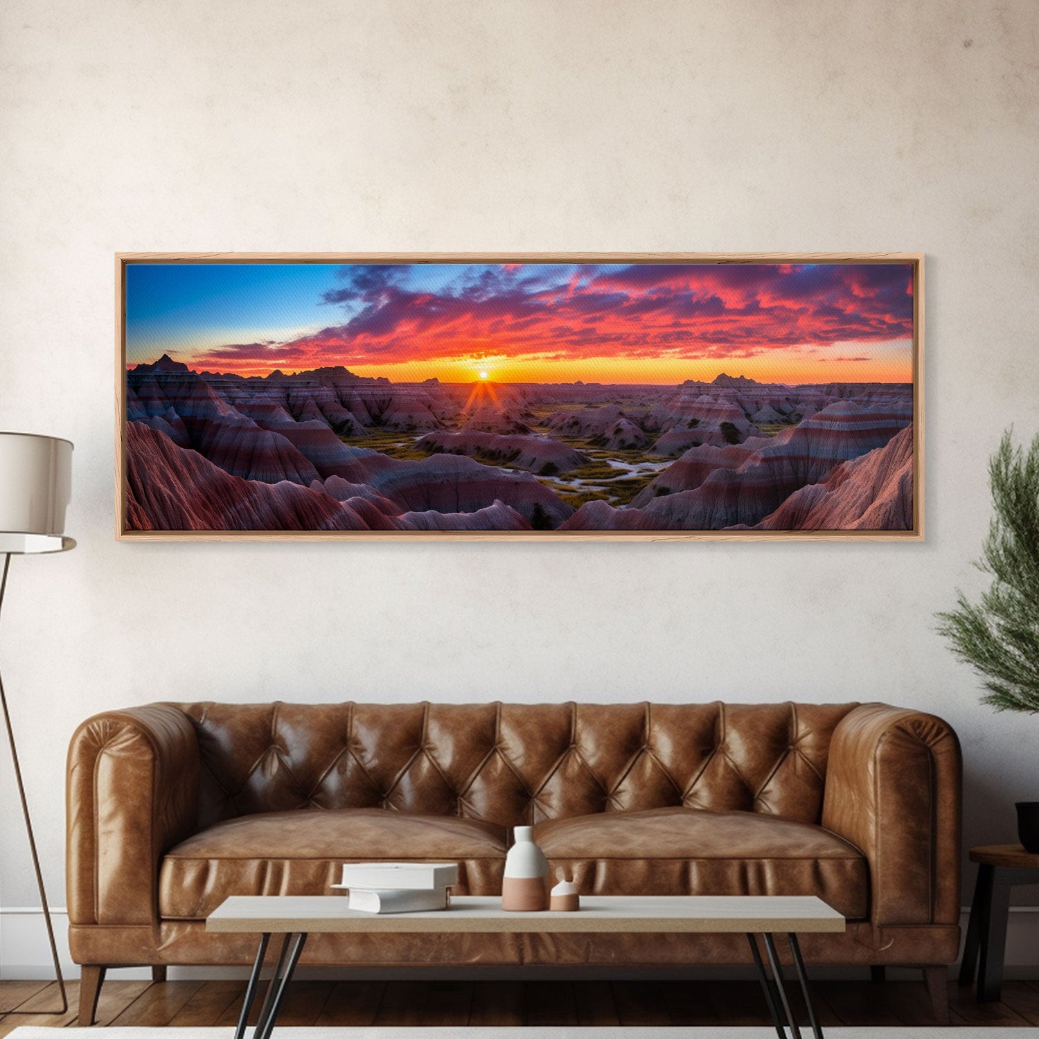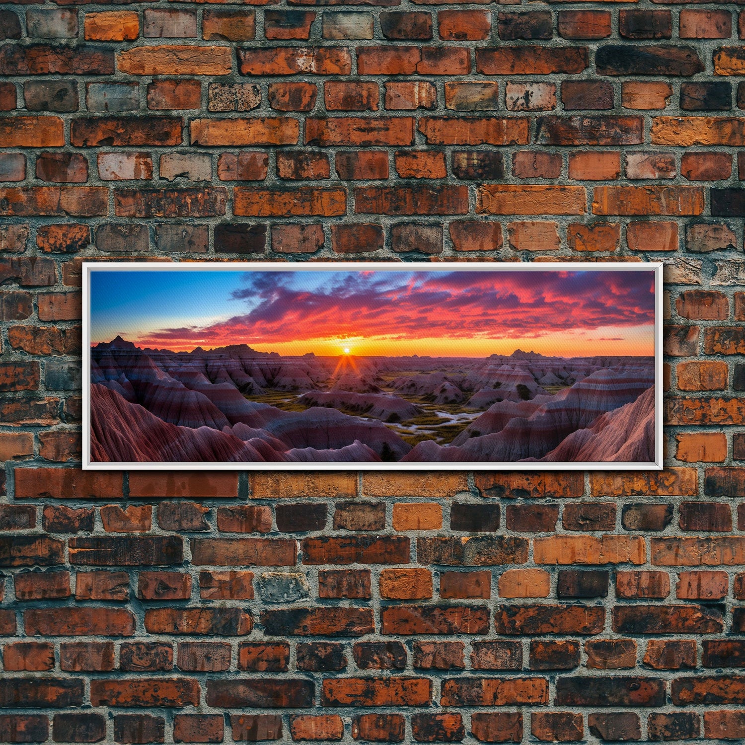 Photographic Panoramic of Badlands National Park, Sunset Photography, National Park Art, Framed Canvas Print, Landscape Photography