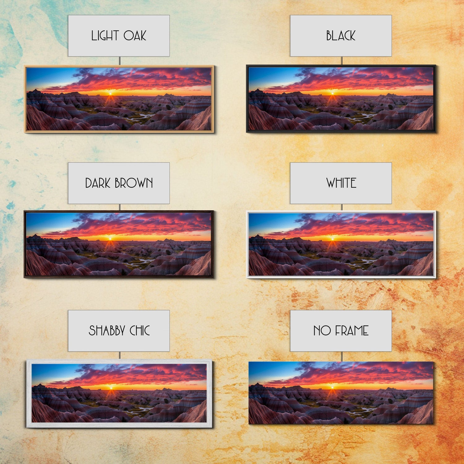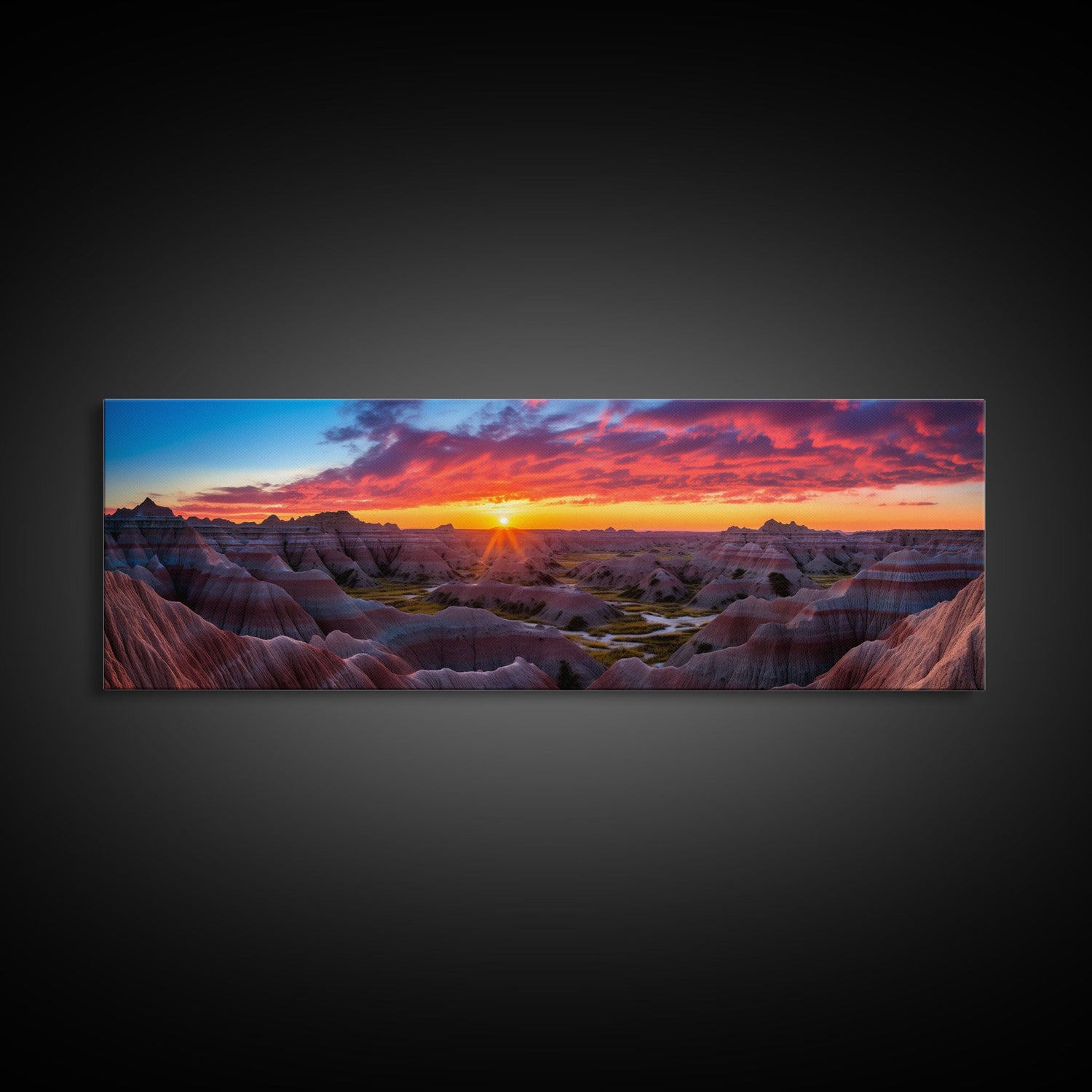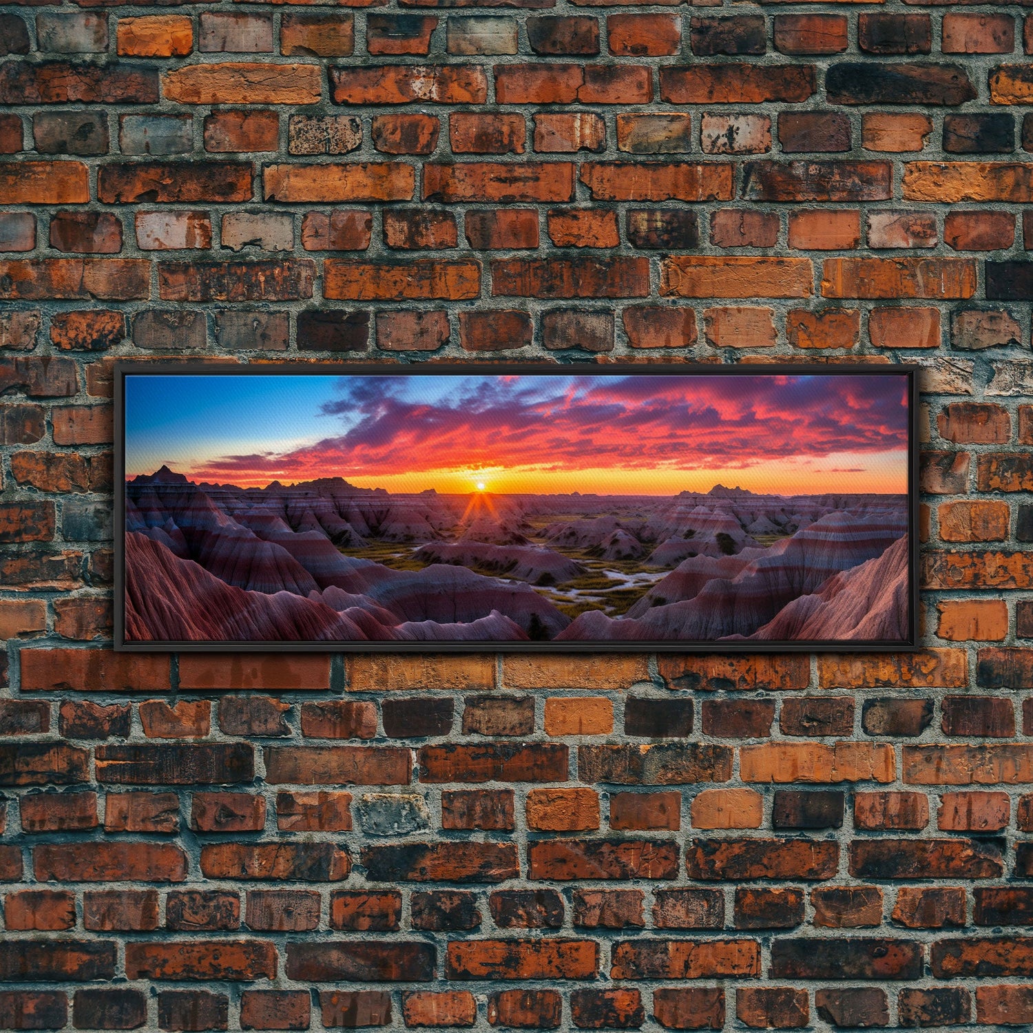 Photographic Panoramic of Badlands National Park, Sunset Photography, National Park Art, Framed Canvas Print, Landscape Photography