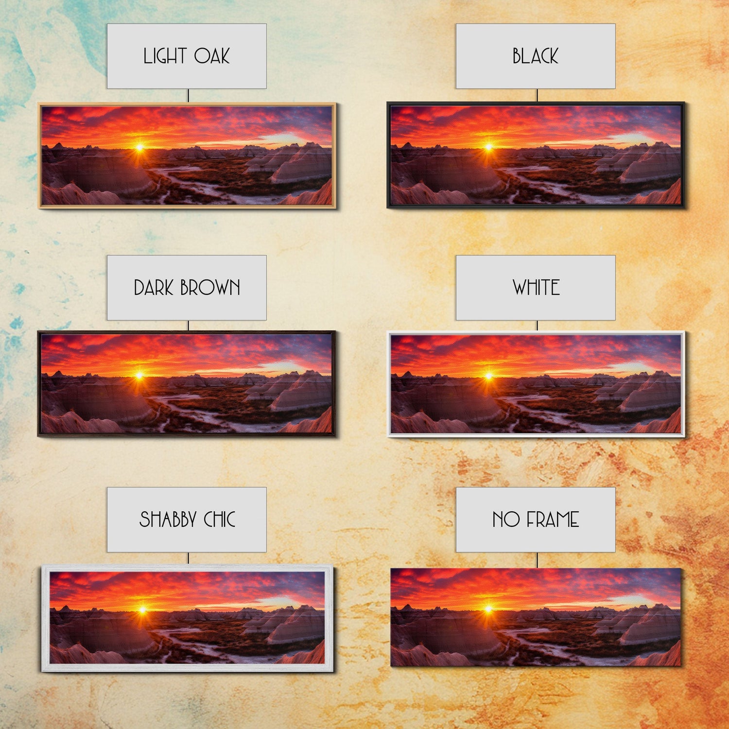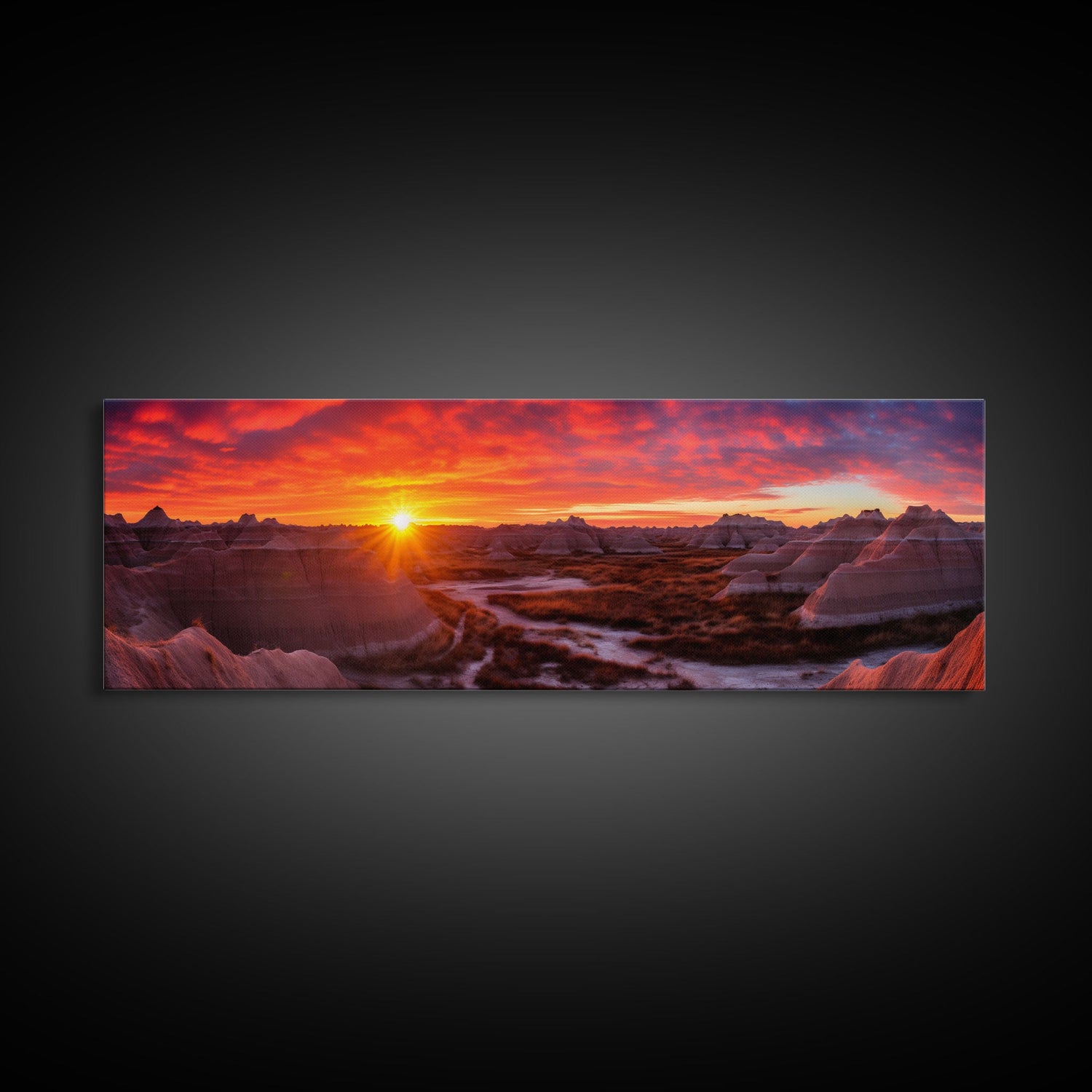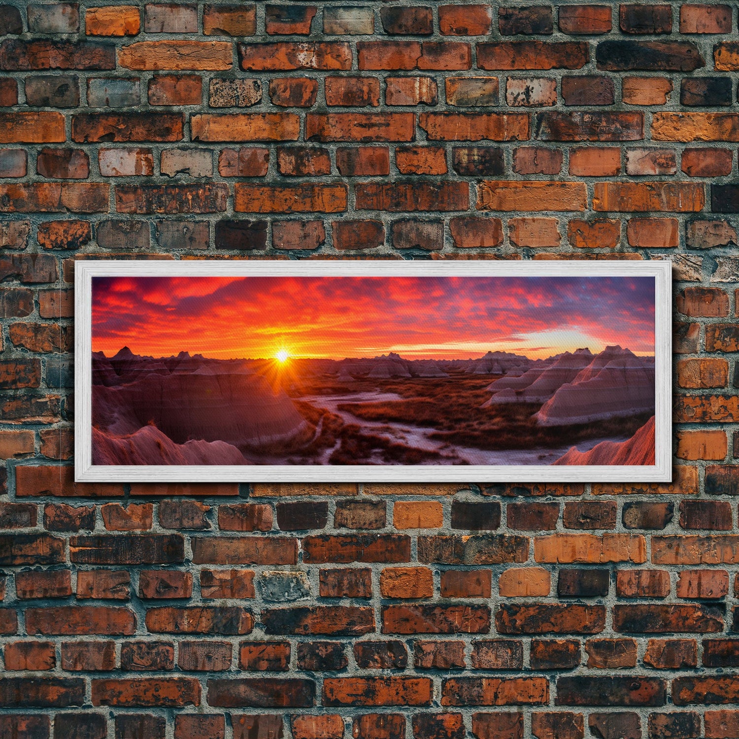 Photographic Panoramic of Badlands National Park, Sunset Photography, National Park Art, Framed Canvas Print, Landscape Photography