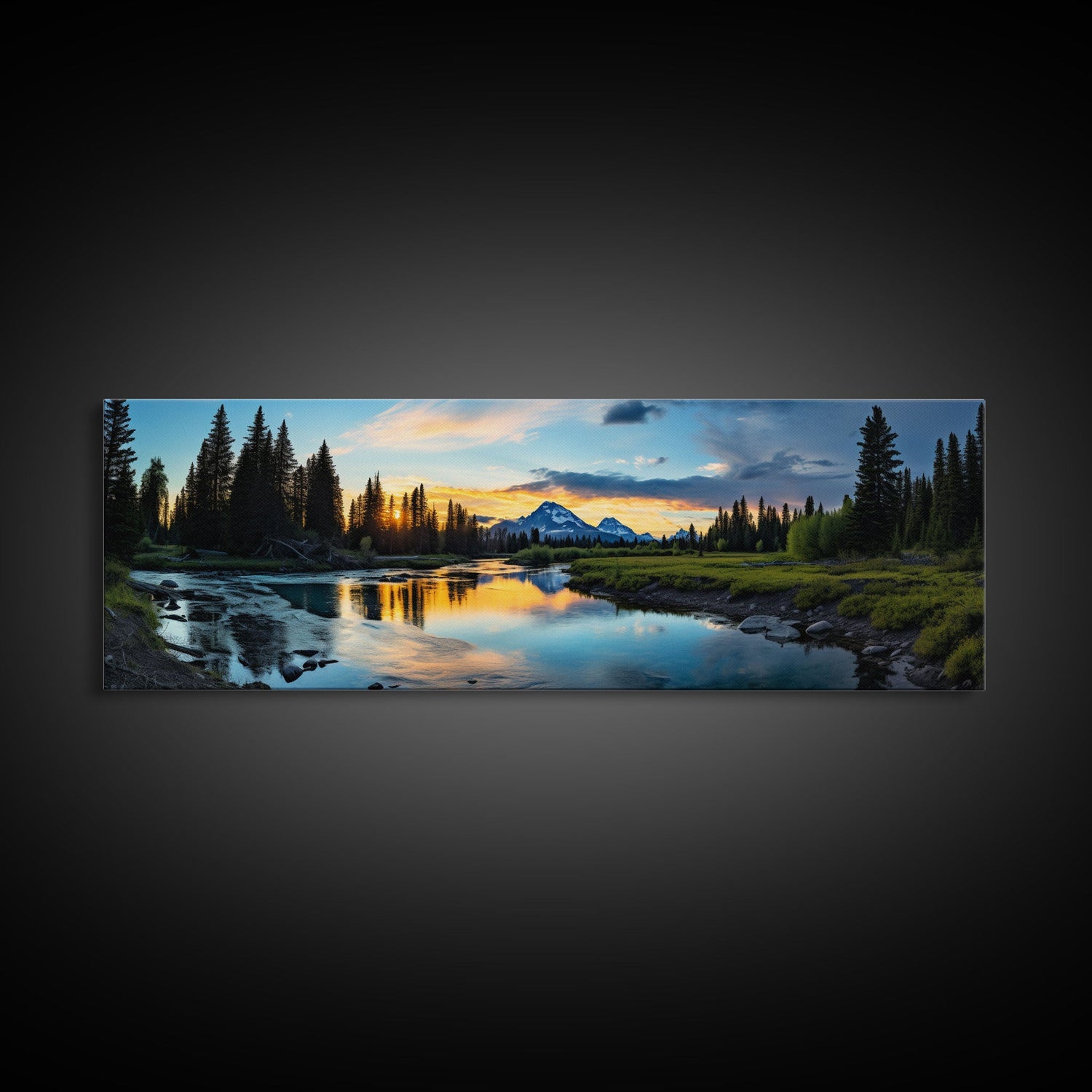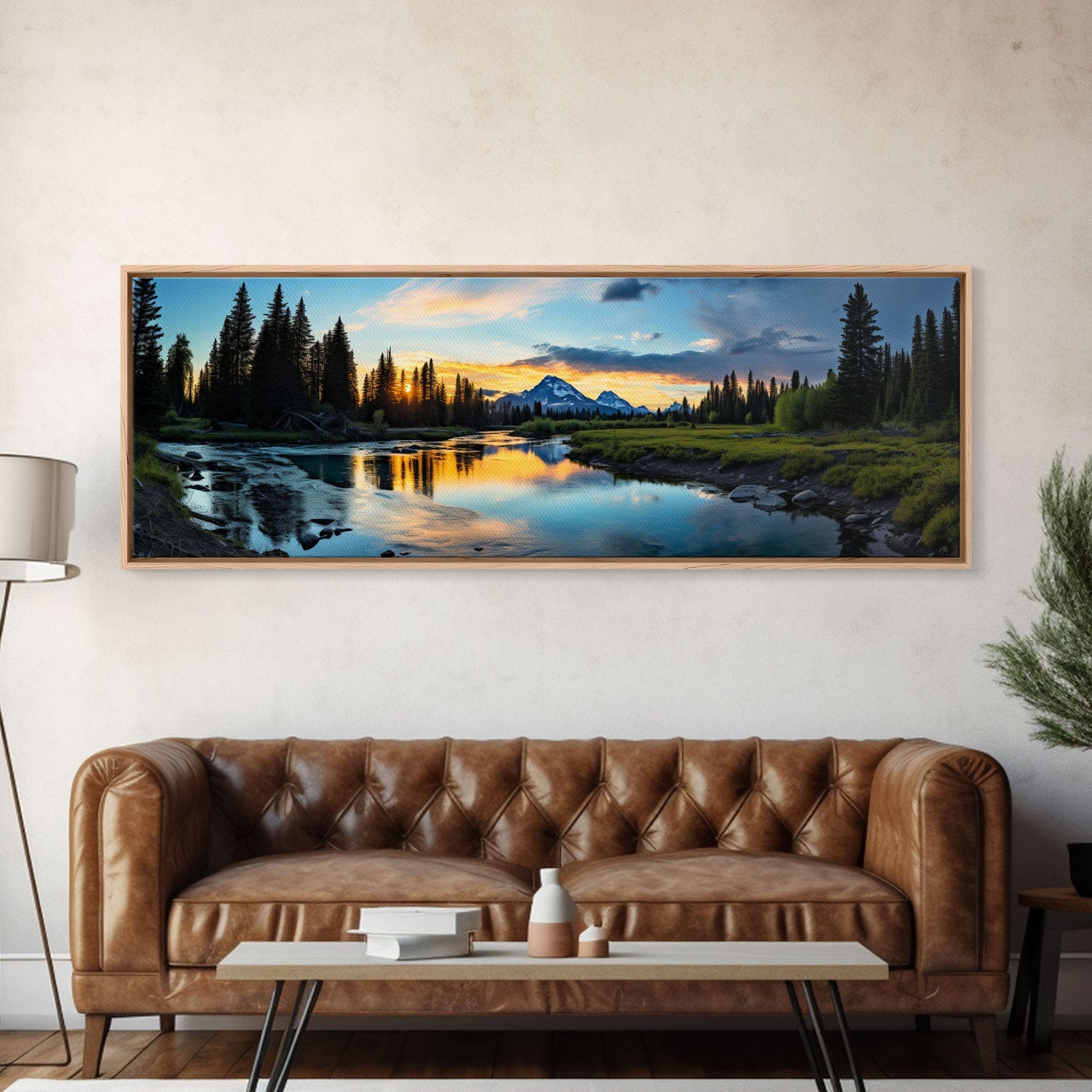 Photographic Panoramic of Banff National Park, Sunset Photography, National Park Art, Framed Canvas Print, Landscape Photography