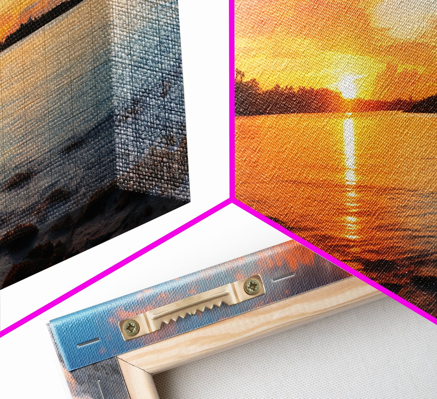 Hello and thank you for taking the time to view our modern high quality giclée artwork! Printed on extremely durable 350 GSM canvas material with ECO friendly archival grade ink, then hand stretched and stapled over premium, FSC certified and shrink resistant frames. Designed and built to last a lifetime.
