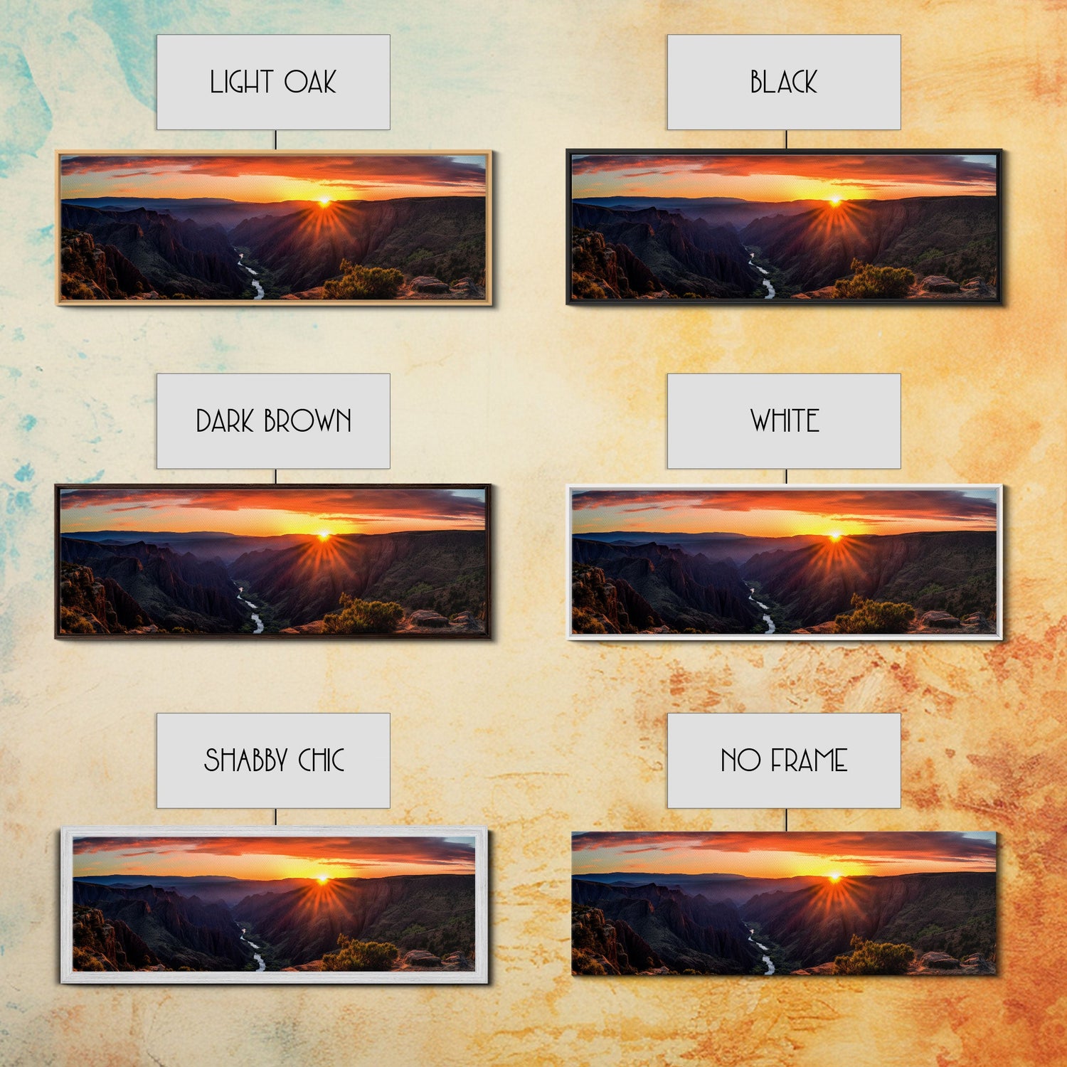 Photographic Panoramic of Black Canyon Of The Gunnison National Park, Sunset Photography, Framed Canvas Print, Landscape Photography