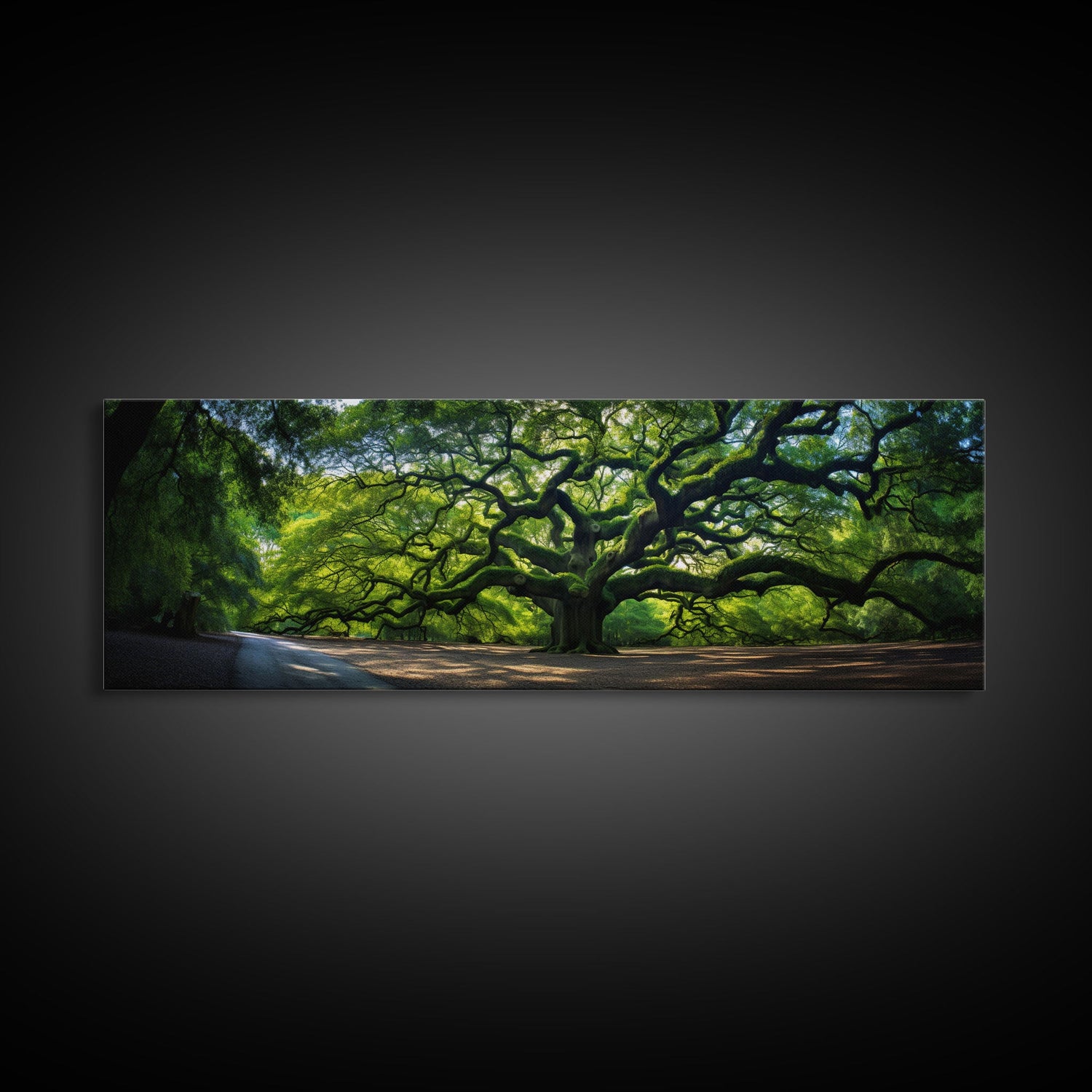 Photographic Panoramic of the Angel Oak in Charleston SC, Sunset Photography, National Park Art, Framed Canvas Print, Landscape Photography