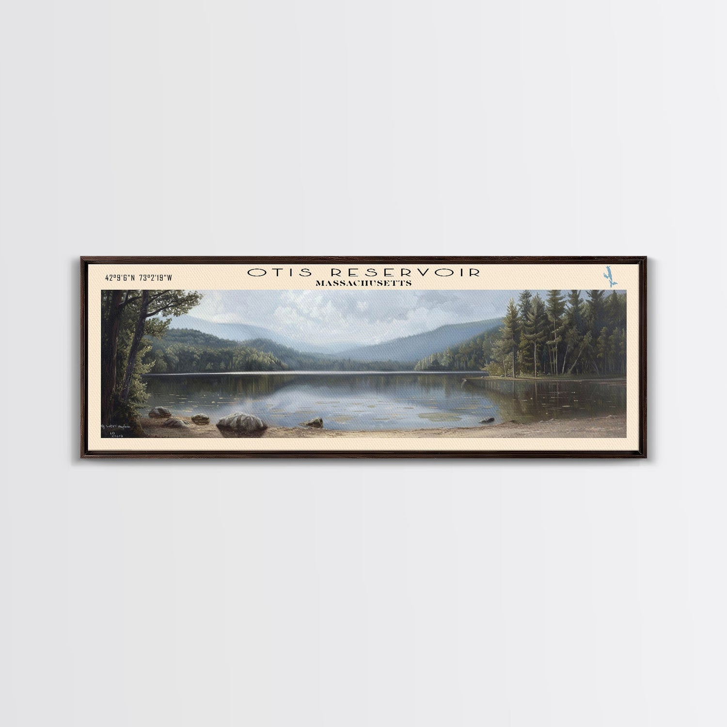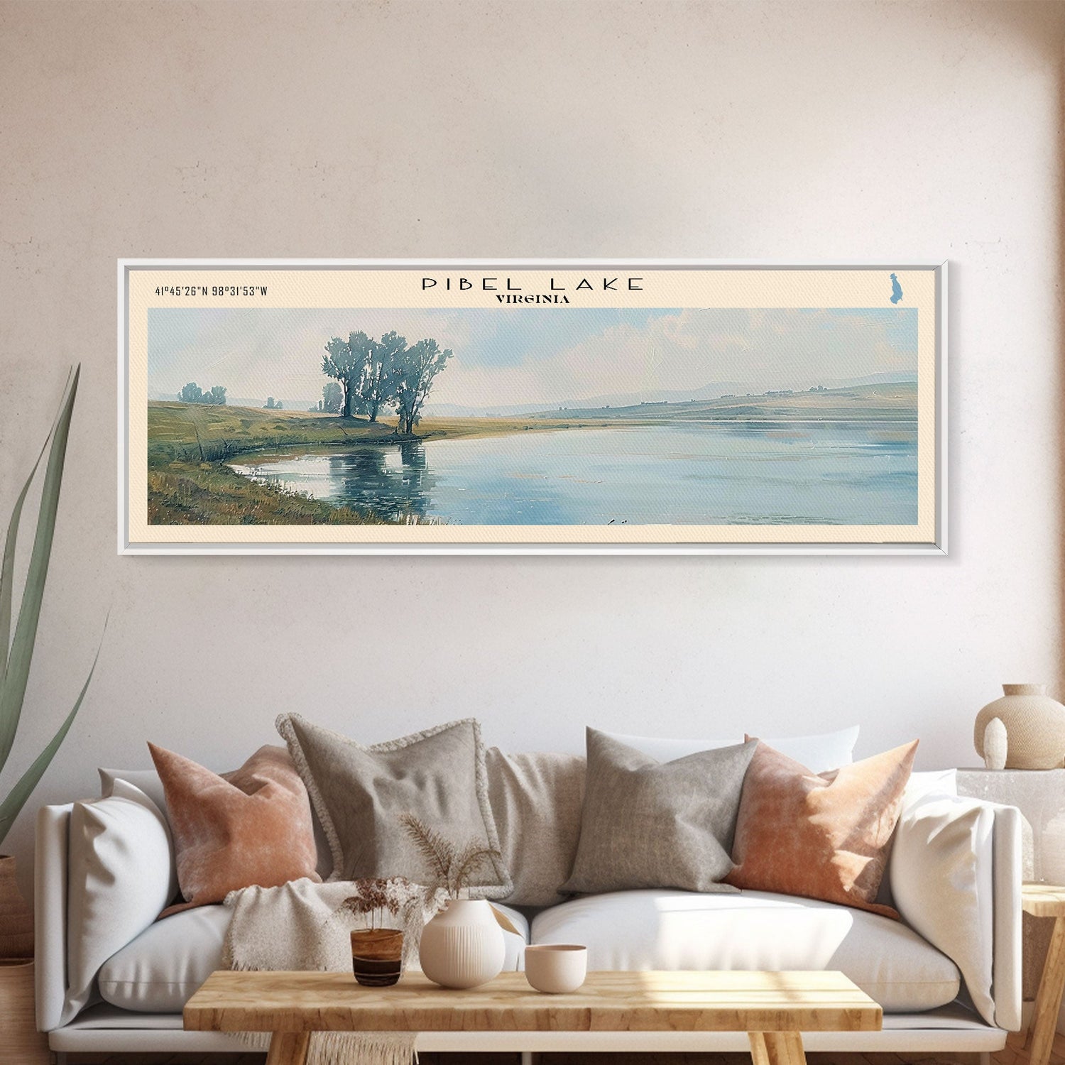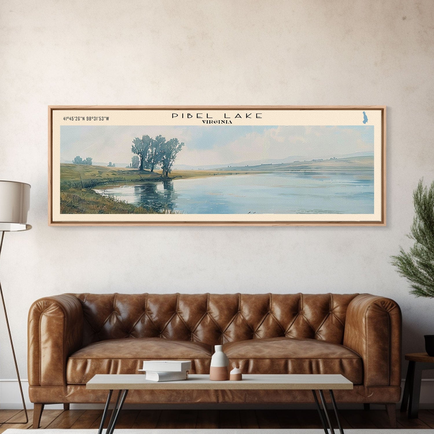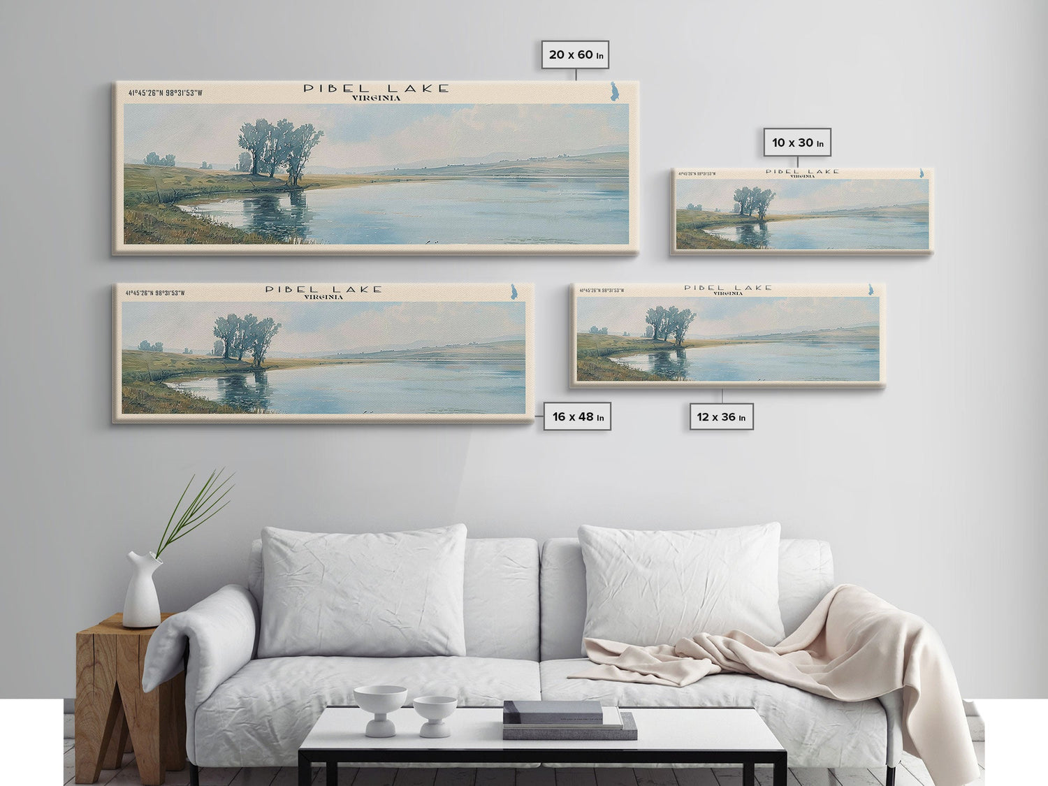 Pibel Lake Nebraska Framed Canvas Print, Lake House Decor, Panoramic Wall Art, Travel Poster, Beautiful Landscape Painting, Modern Art