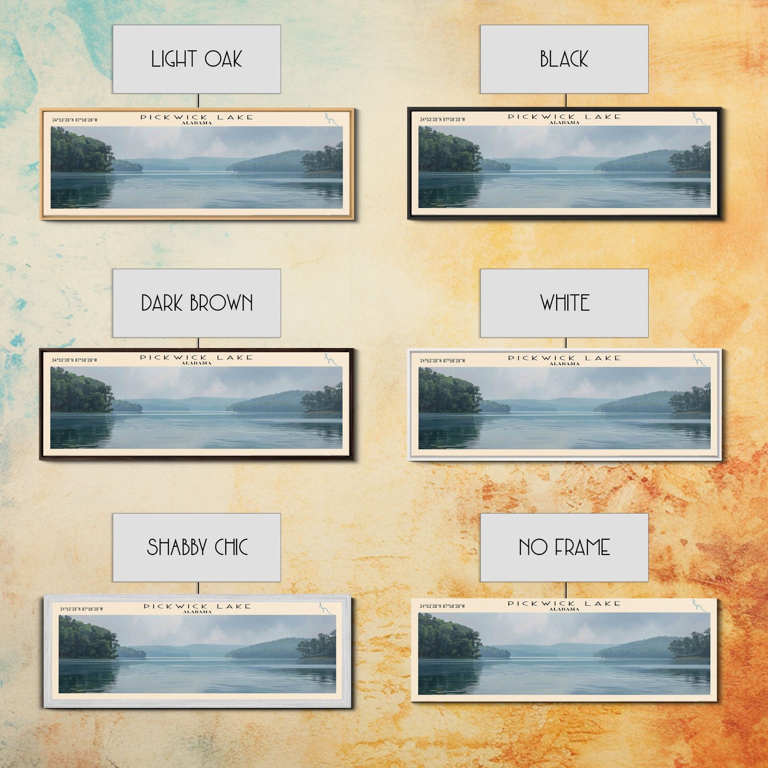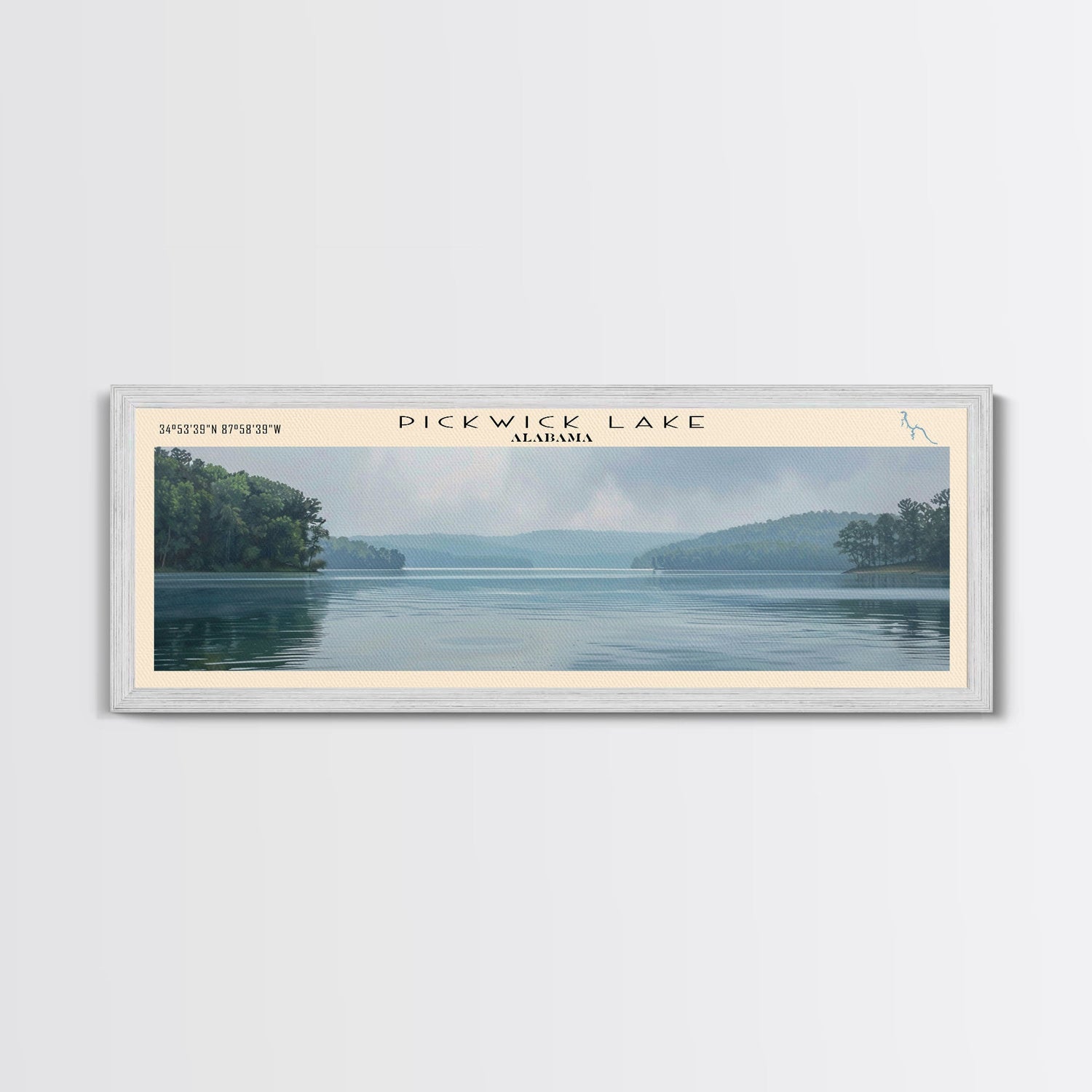 Pickwick Lake Alabama Framed Canvas Print, Lake House Decor, Panoramic Travel Poster, Scenic Wall Art, Contemporary Art