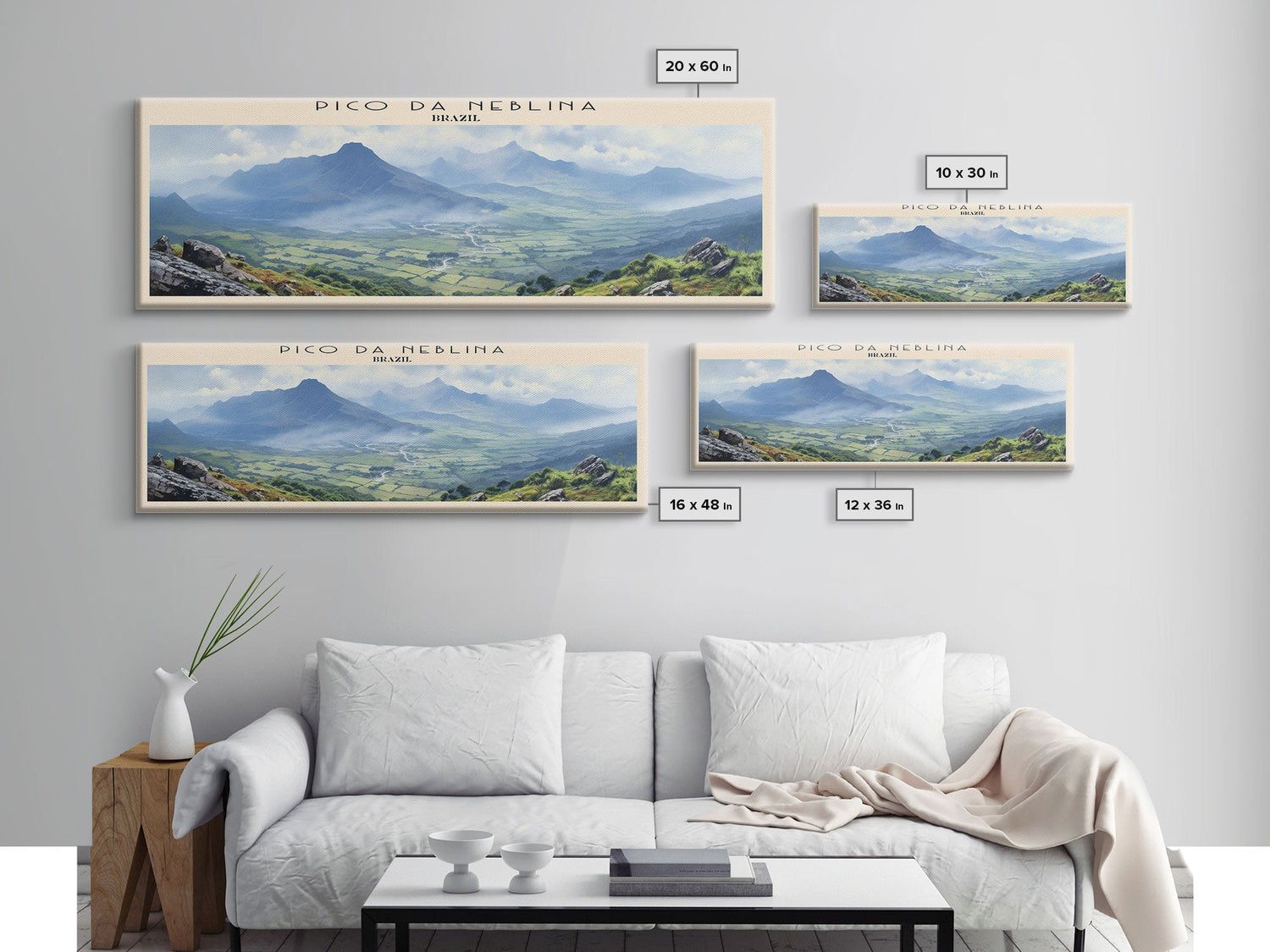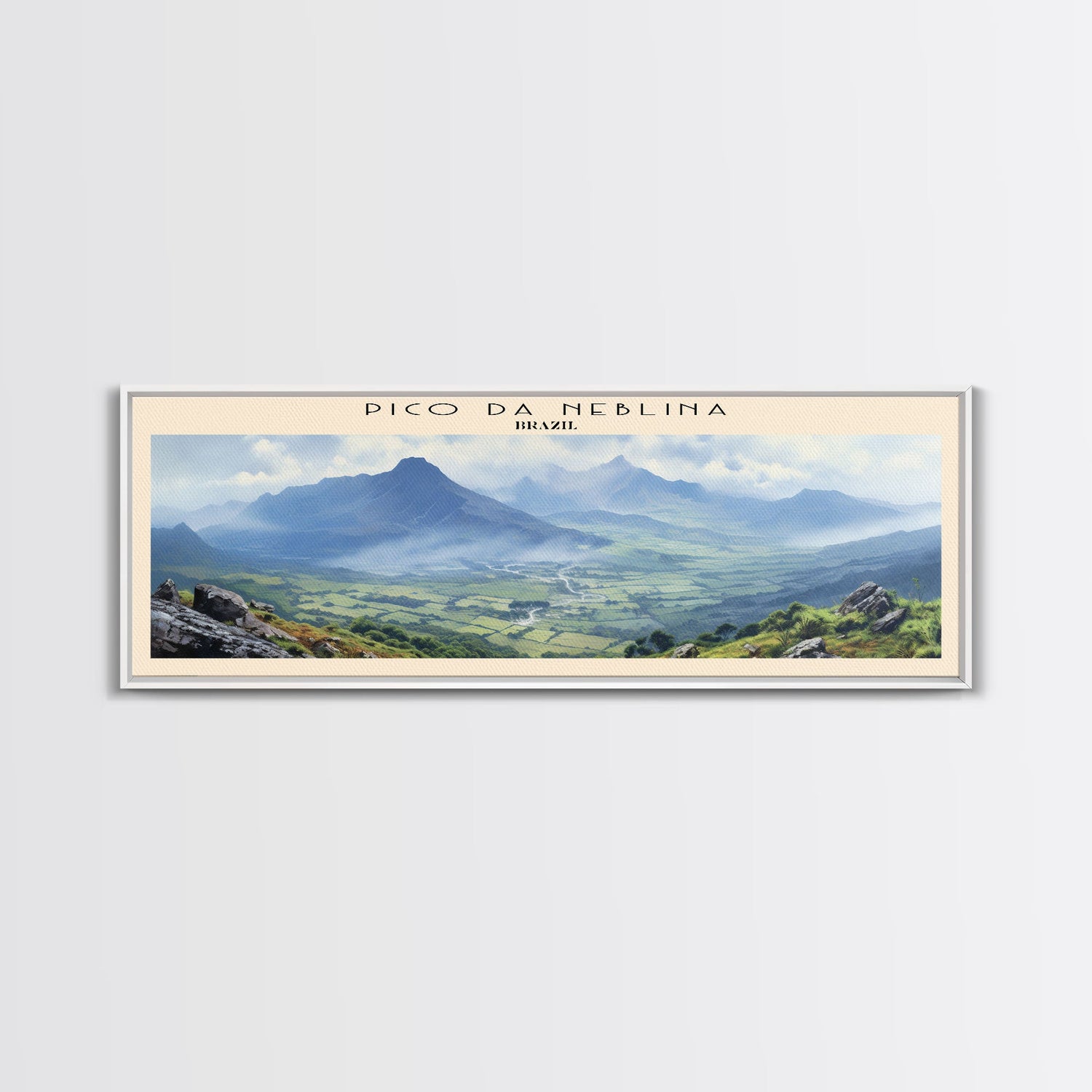 Pico da Neblina COUNTRY | Framed Travel Poster Canvas Print | Trendy Wall Art | Watercolor Painting | Living Room Art | Unique Art - 10x30 Inches / No Frame - Stretched Canvas Only is backordered and will ship as soon as it is back in stock.