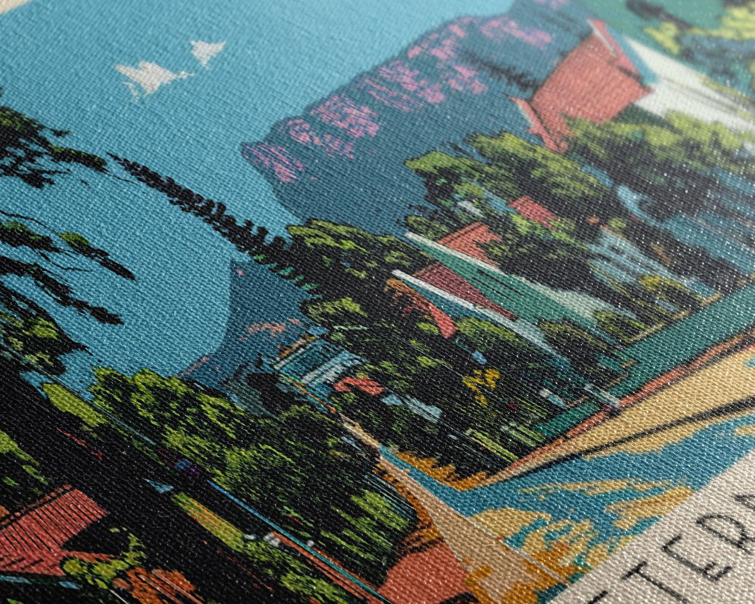 Most of our canvases are made in the USA, with the exception of canvases ordered with the light oak unstained frames, and any large canvases (24x48, 30x60, 16x48 and 20x60) ordered WITH a frame. These are temporarily made in and shipped from Europe, while we try to find a more consistent supplier in the USA.