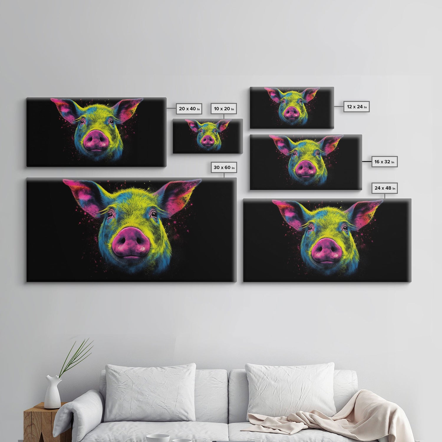 Pig Wall Art, Animal Wall Art, Nature Art, Farmhouse Art, Minimalist Art, Panoramic Wall Decor, Canvas Print, Wall Art, Framed Canvas Art