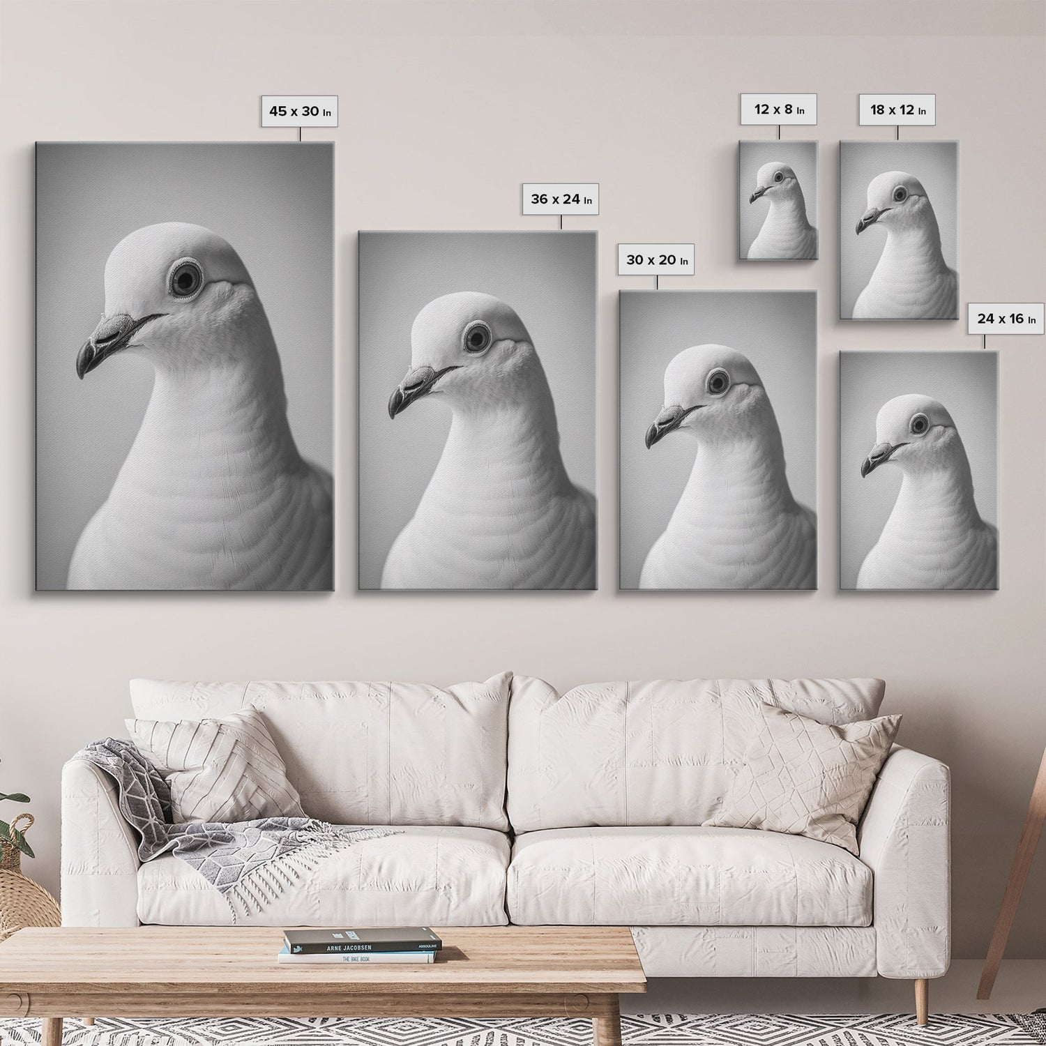 Pigeon Wall Art, Animal Wall Decor, Bird Wall Art, Black And White Art, Minimalist Print, Wall Decor, Canvas Print, Wall Art, Framed Canvas