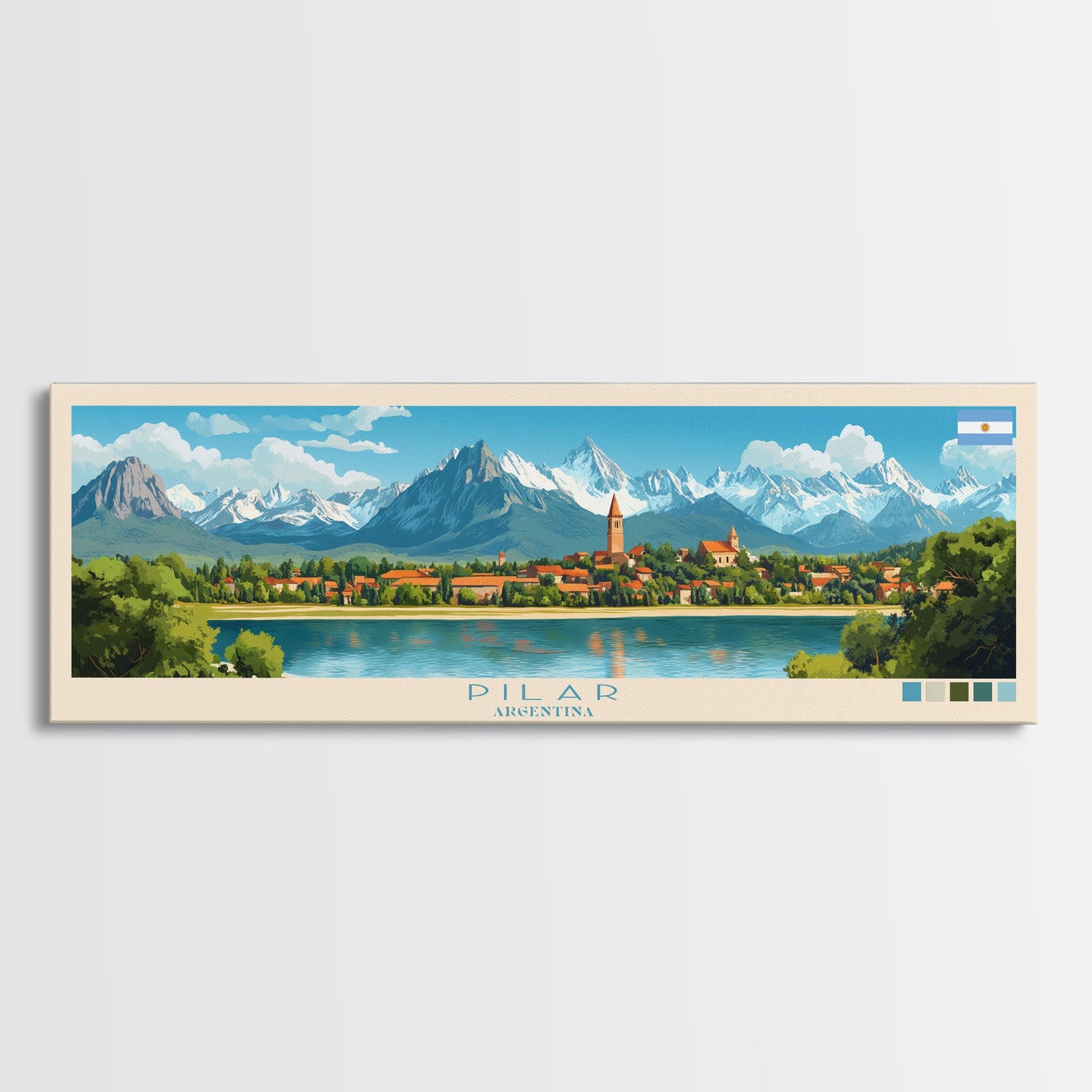 Pilar, Argentina Travel Poster Panoramic Canvas Print, Pilar, Argentina Painting, Argentina Art, Pilar Travel Art, Guest Room Painting
