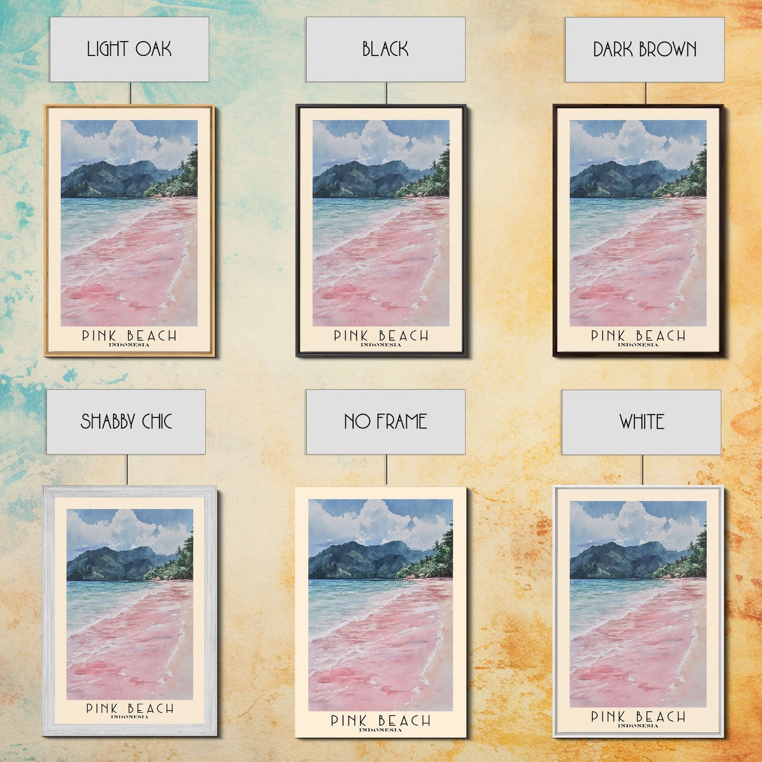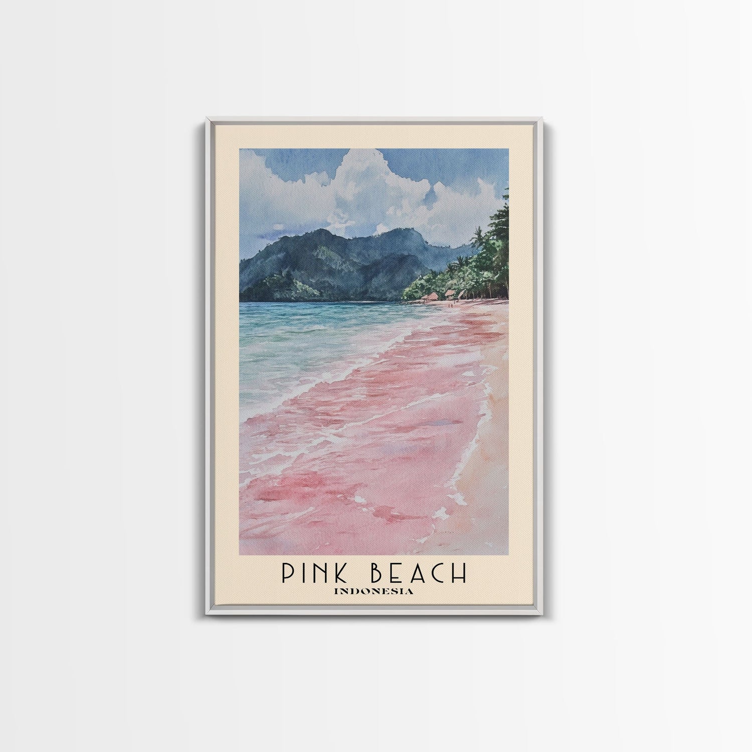 Pink Beach, Indonesia Watercolor Beach Print, Vacation Gift, Indonesia Wall Art, Beach Painting, Beach Decor, Beach Painting - 8x12 Inches / No Frame - Stretched Canvas Only is backordered and will ship as soon as it is back in stock.